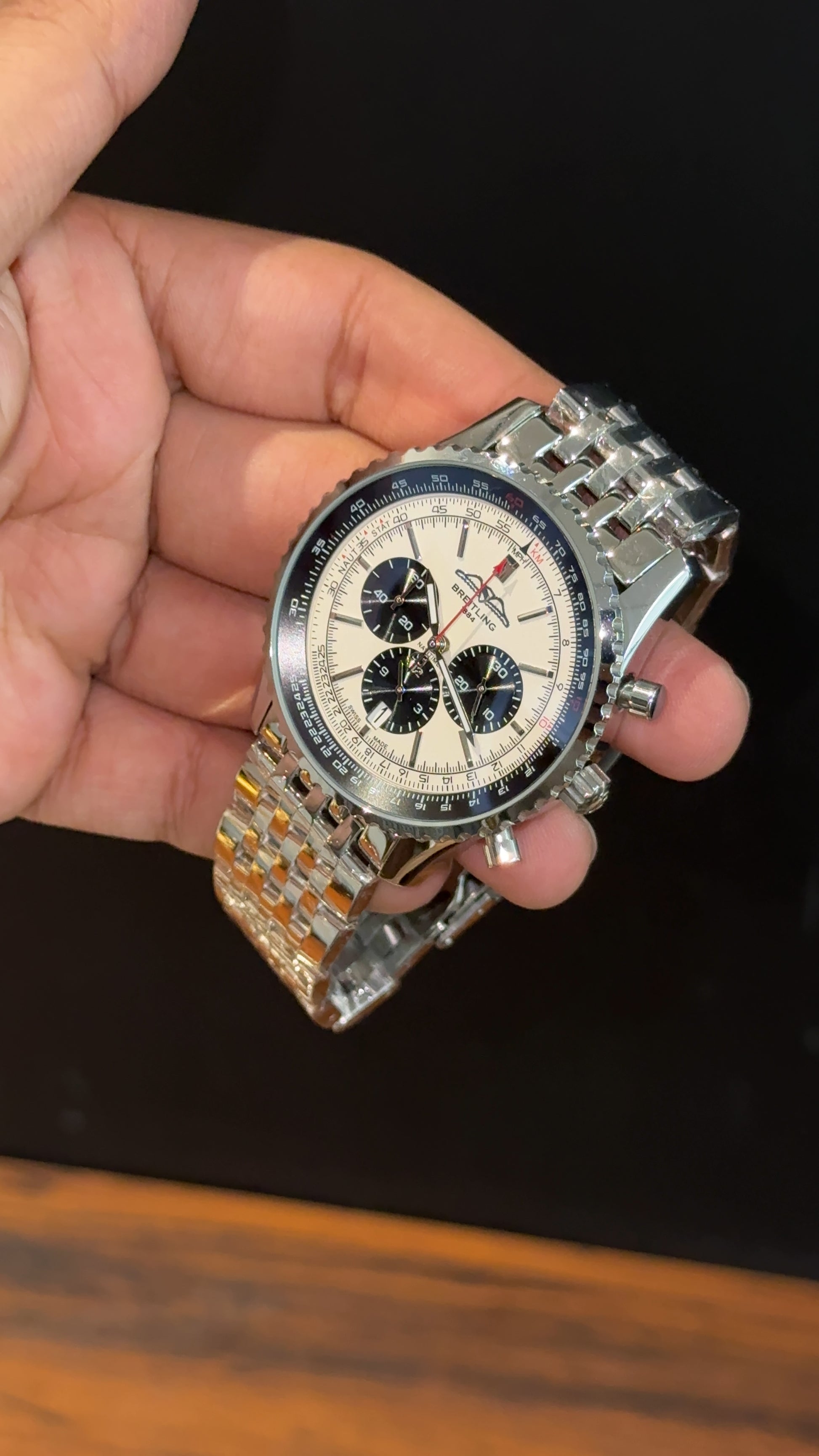 Brietling | Silver Jubilee Chain | Black Chrono | White Dial
