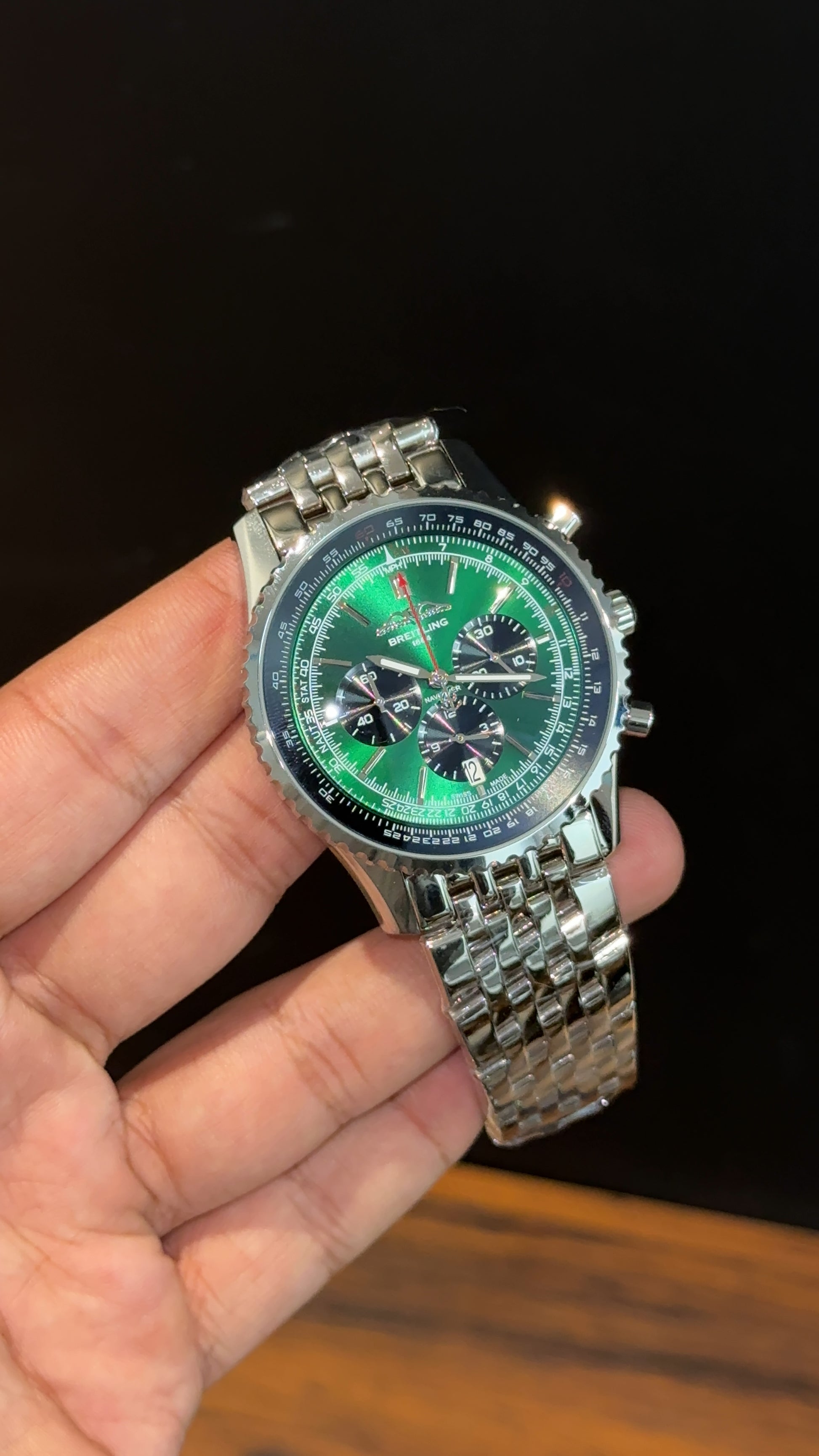 Brietling | Silver Jubilee Chain | Black Chrono | Green Dial