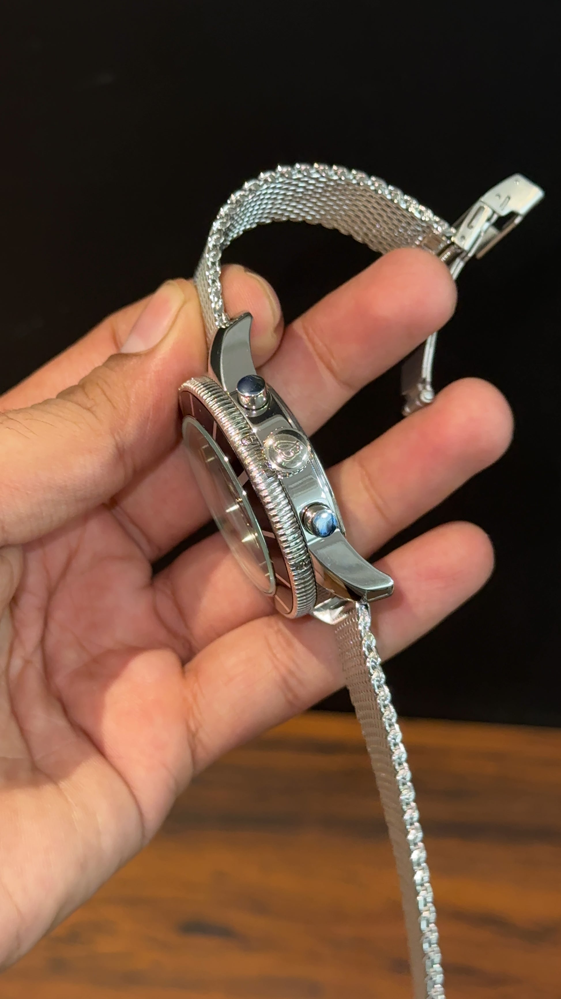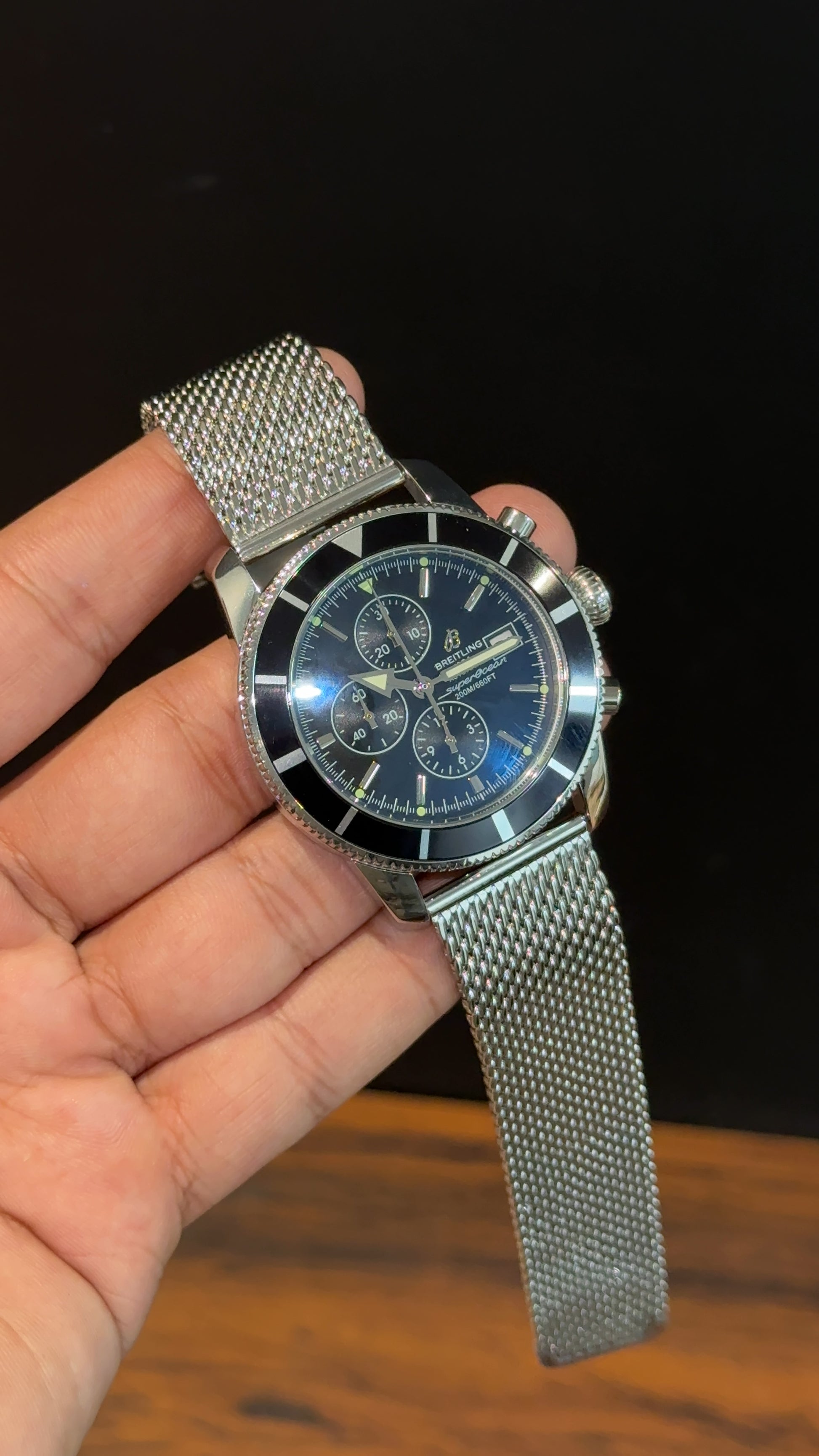 Brietling | Silver Magnetic Chain | Chrono | Silver Digits Black Dial