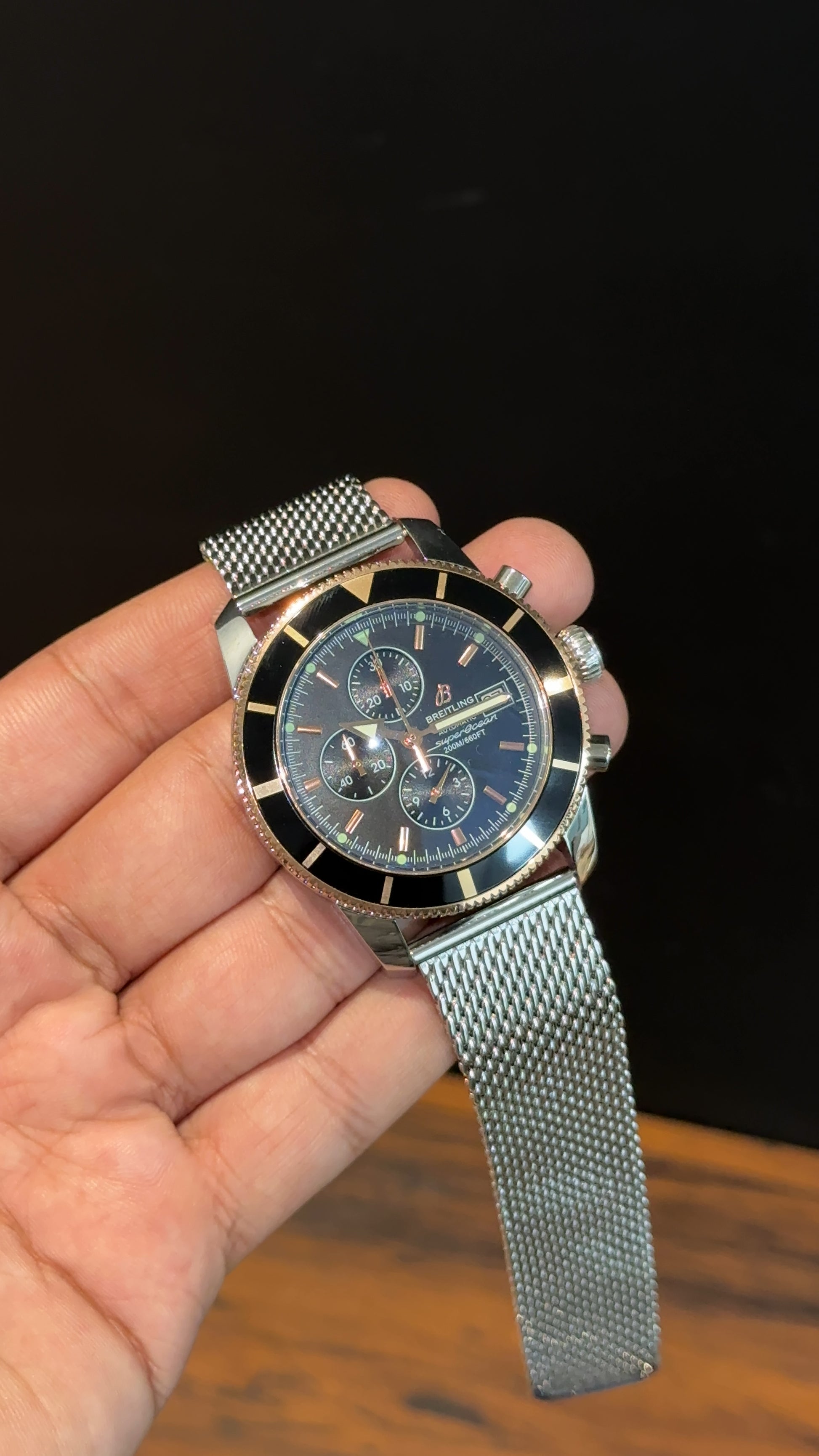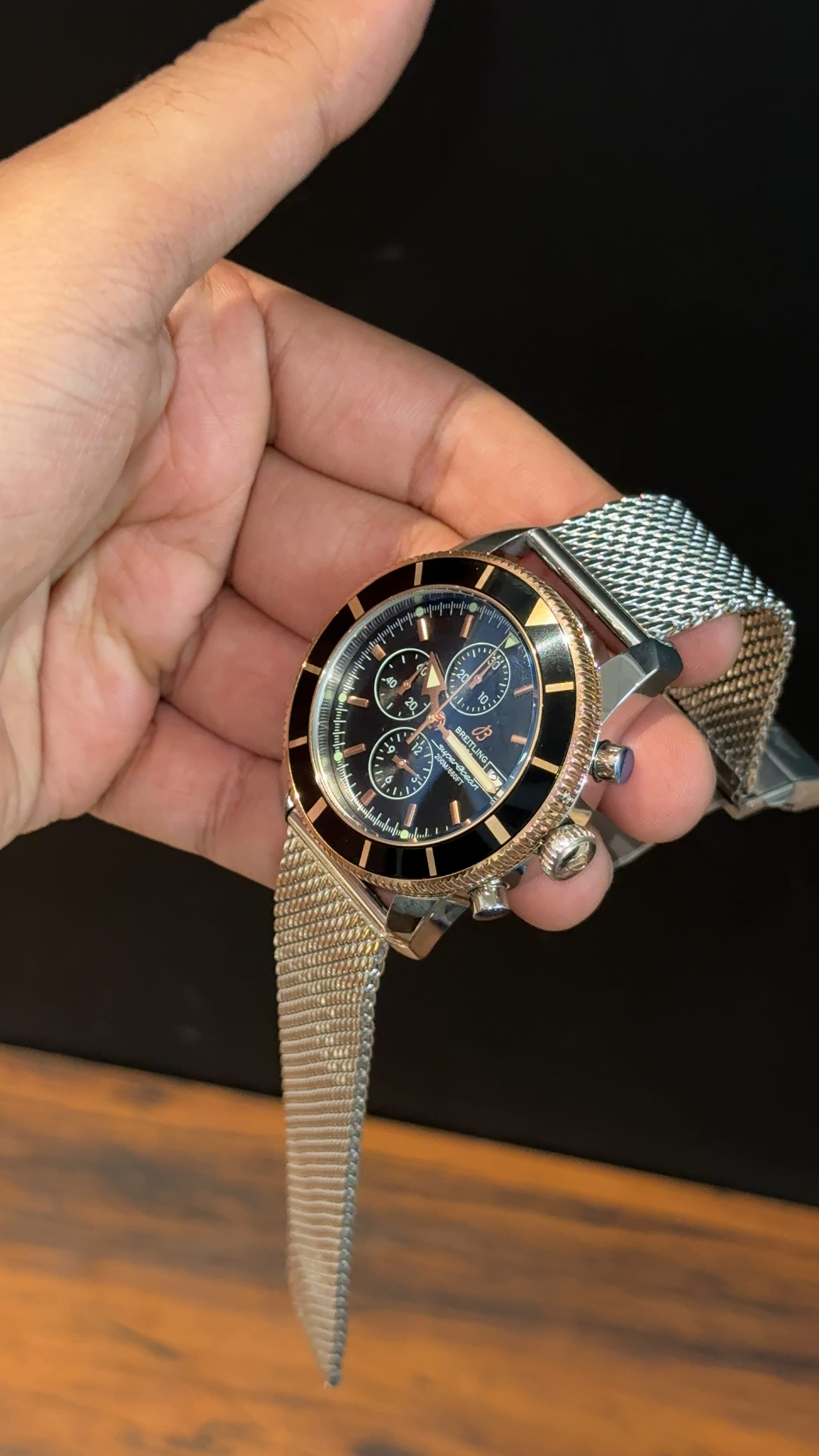 Brietling | Silver Magnetic Chain |Chrono | Orange digits Black Dial