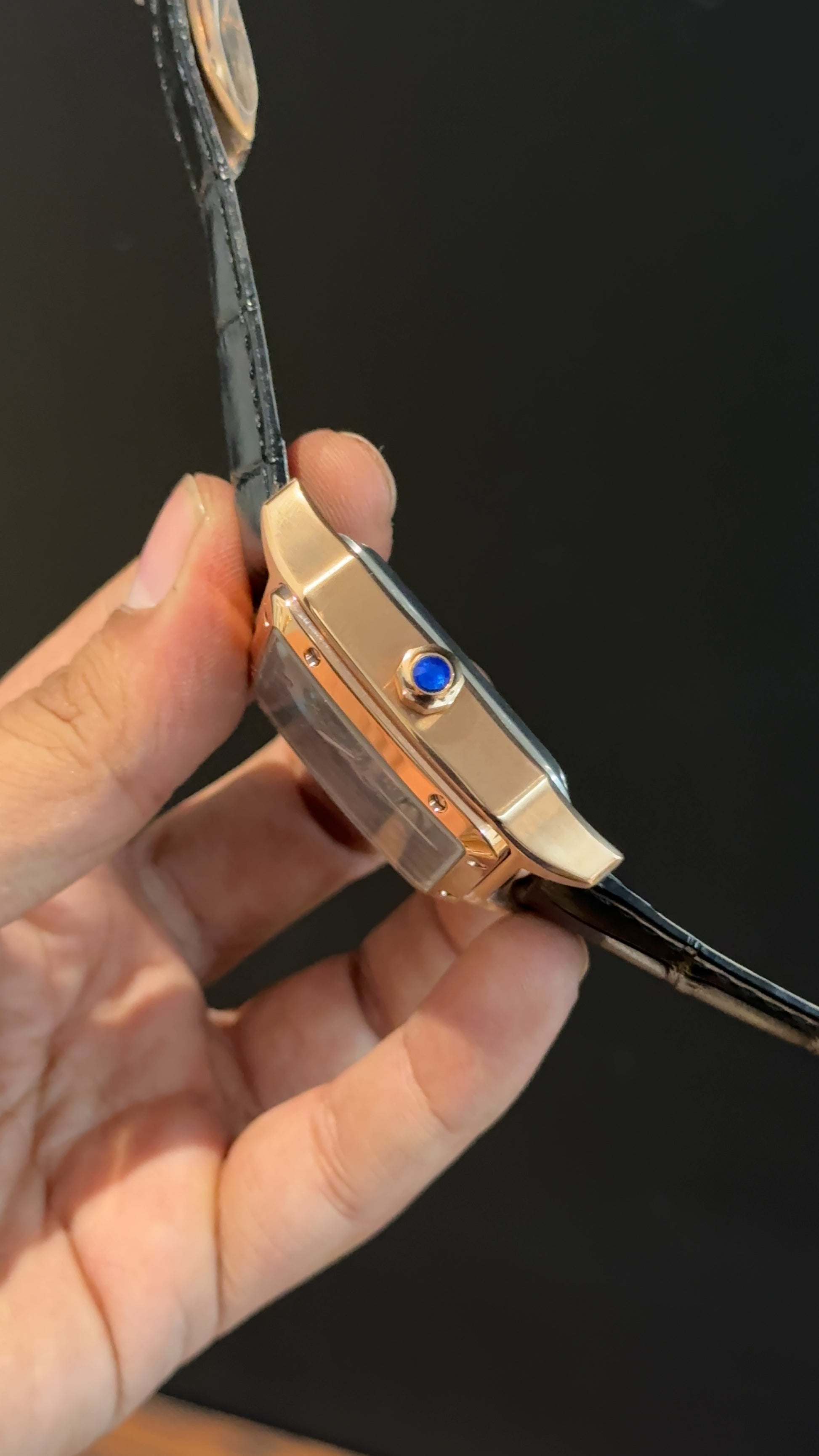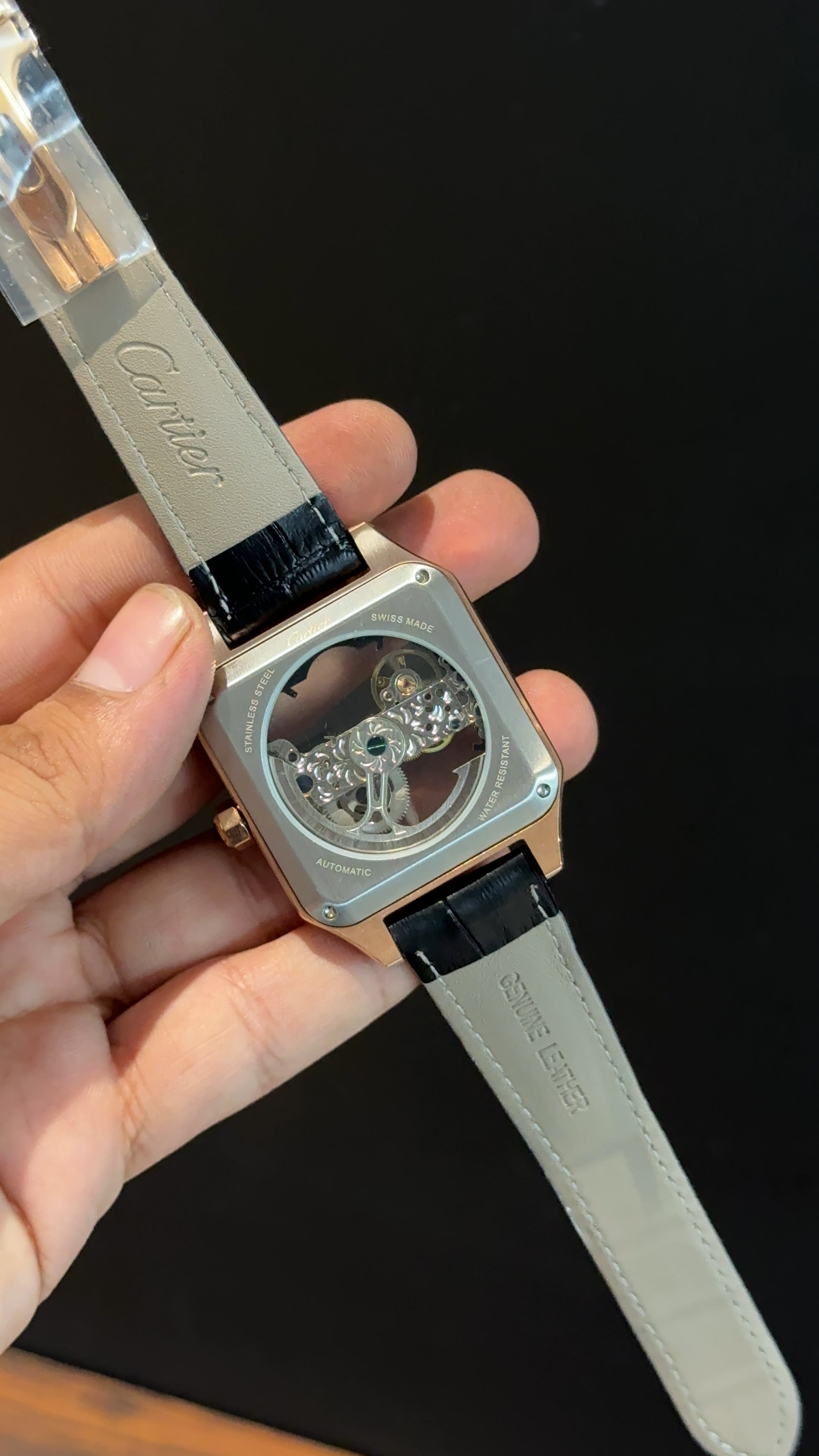 Cartier | Rose | Skeleton Machine | Square Shape Case | Black Leather Strap | Grey Dial
