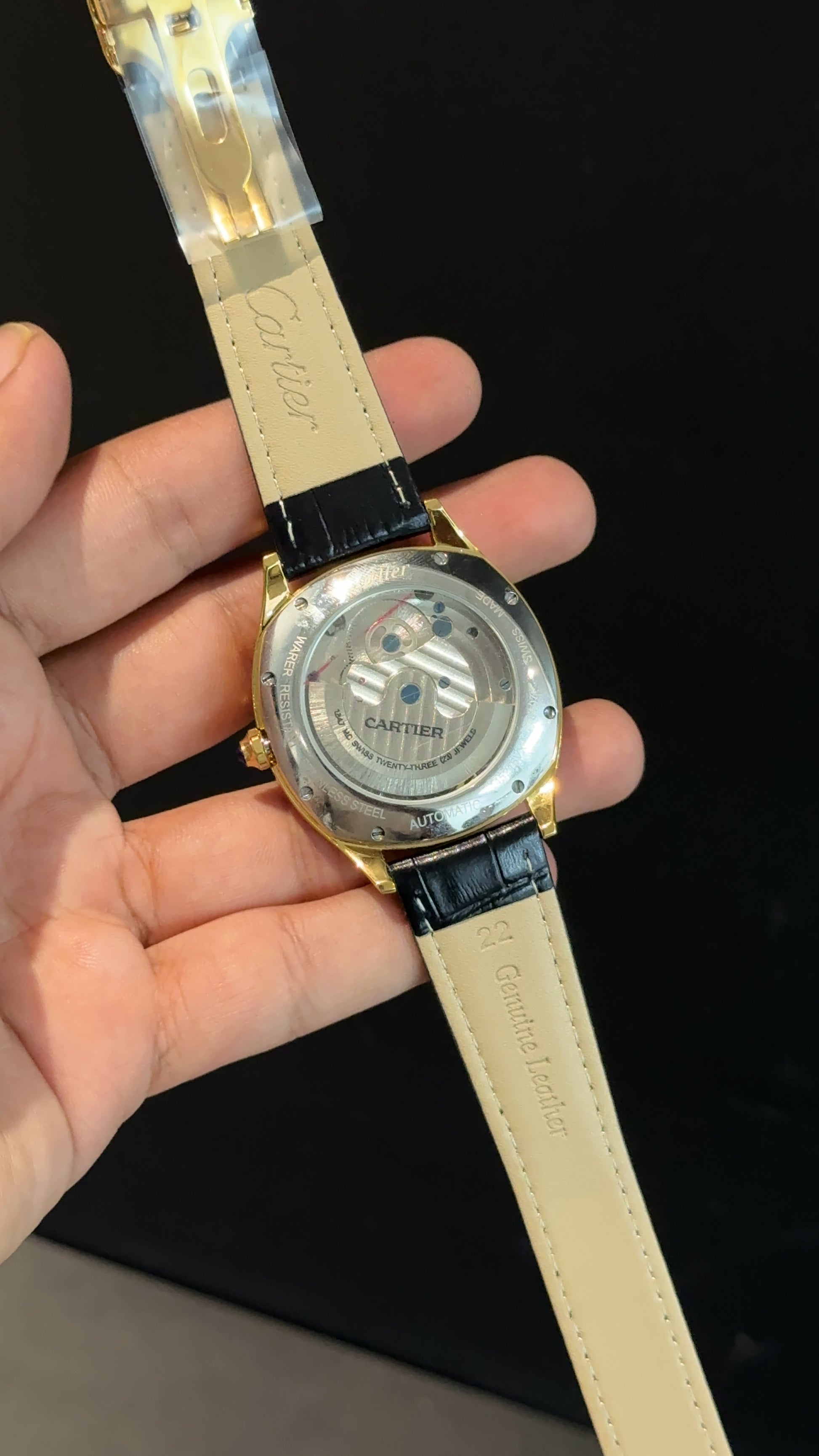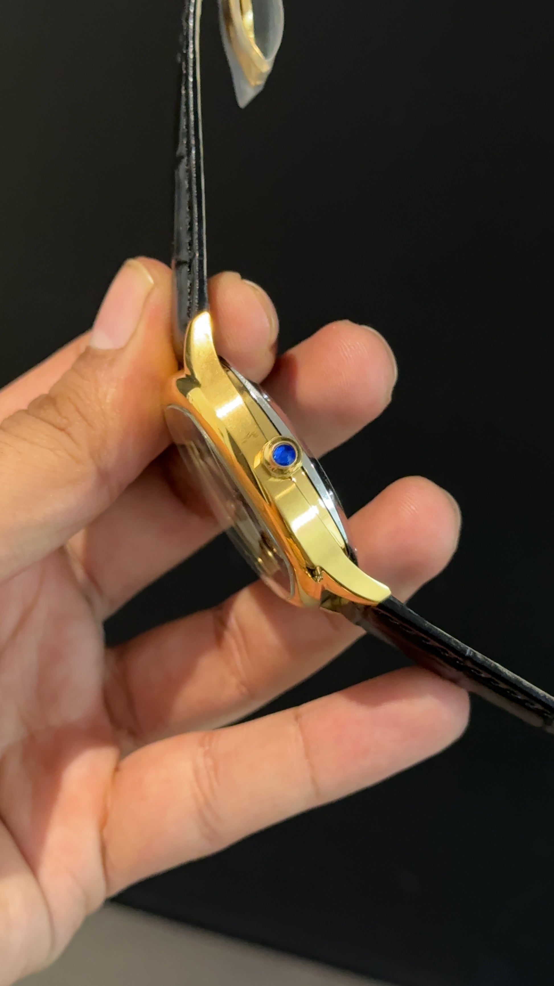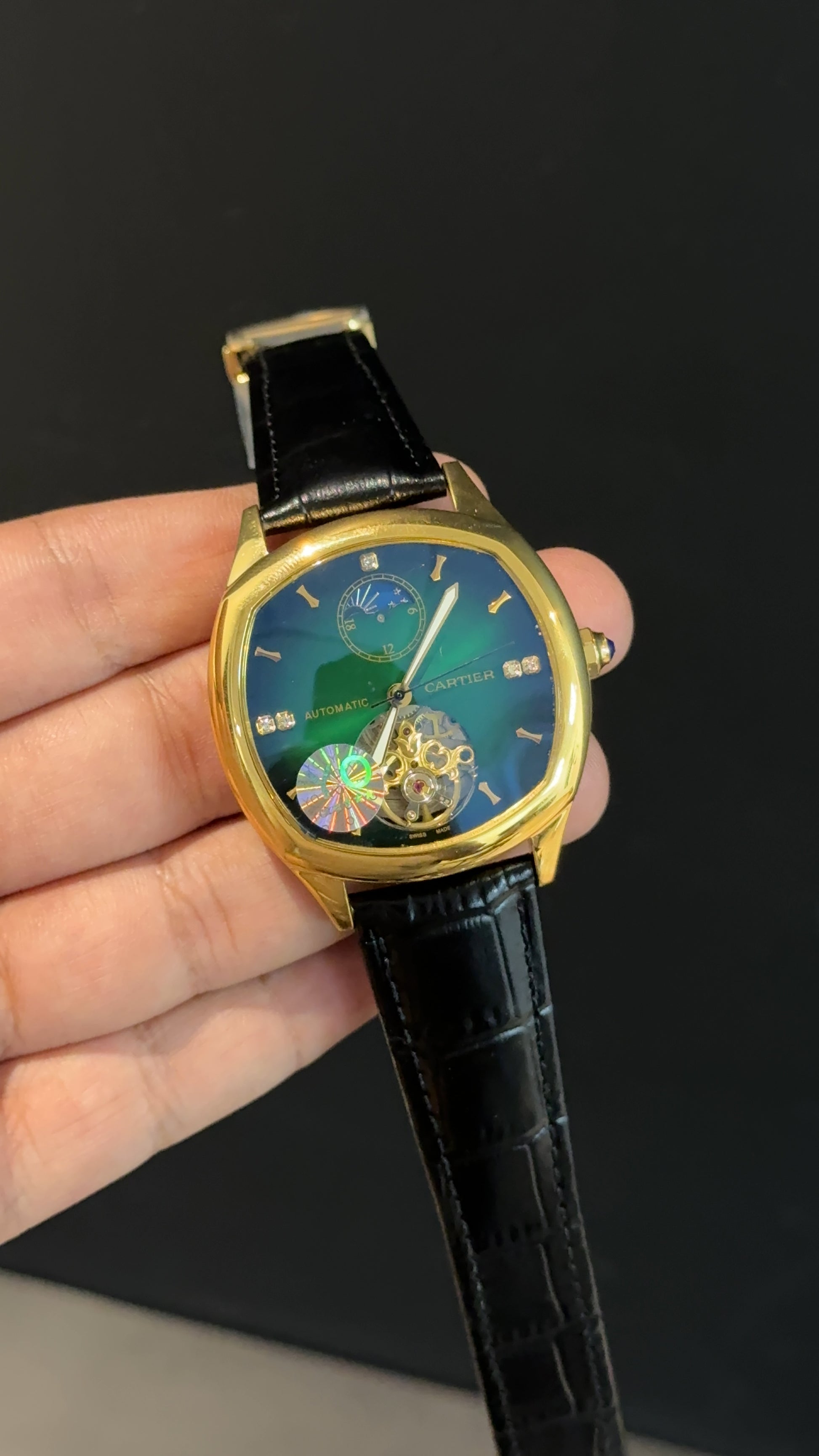 Cartier | Gold Square Bezel | Pendulum | Moonphase | Black Strap | Shady Green Blue Dial