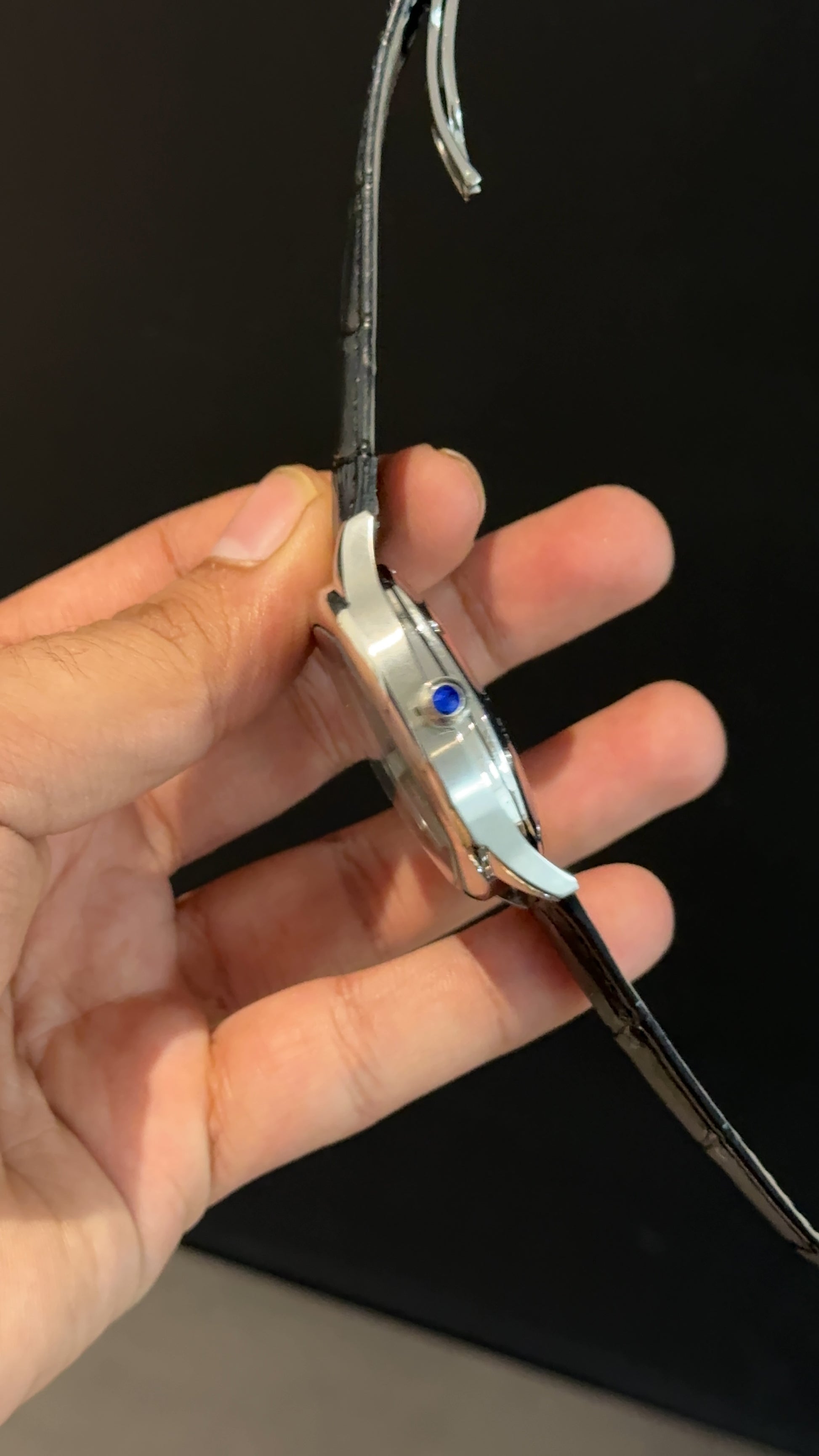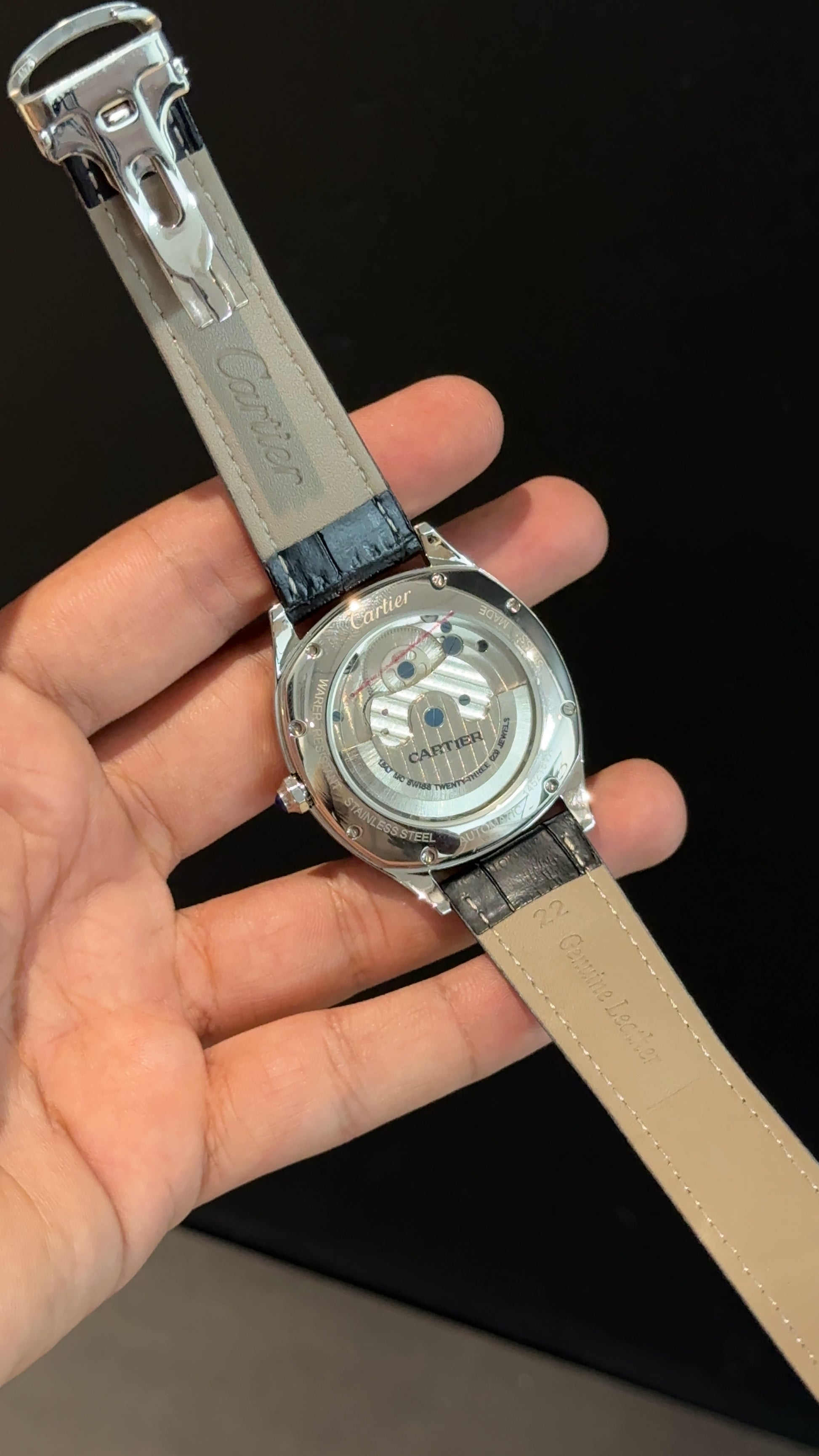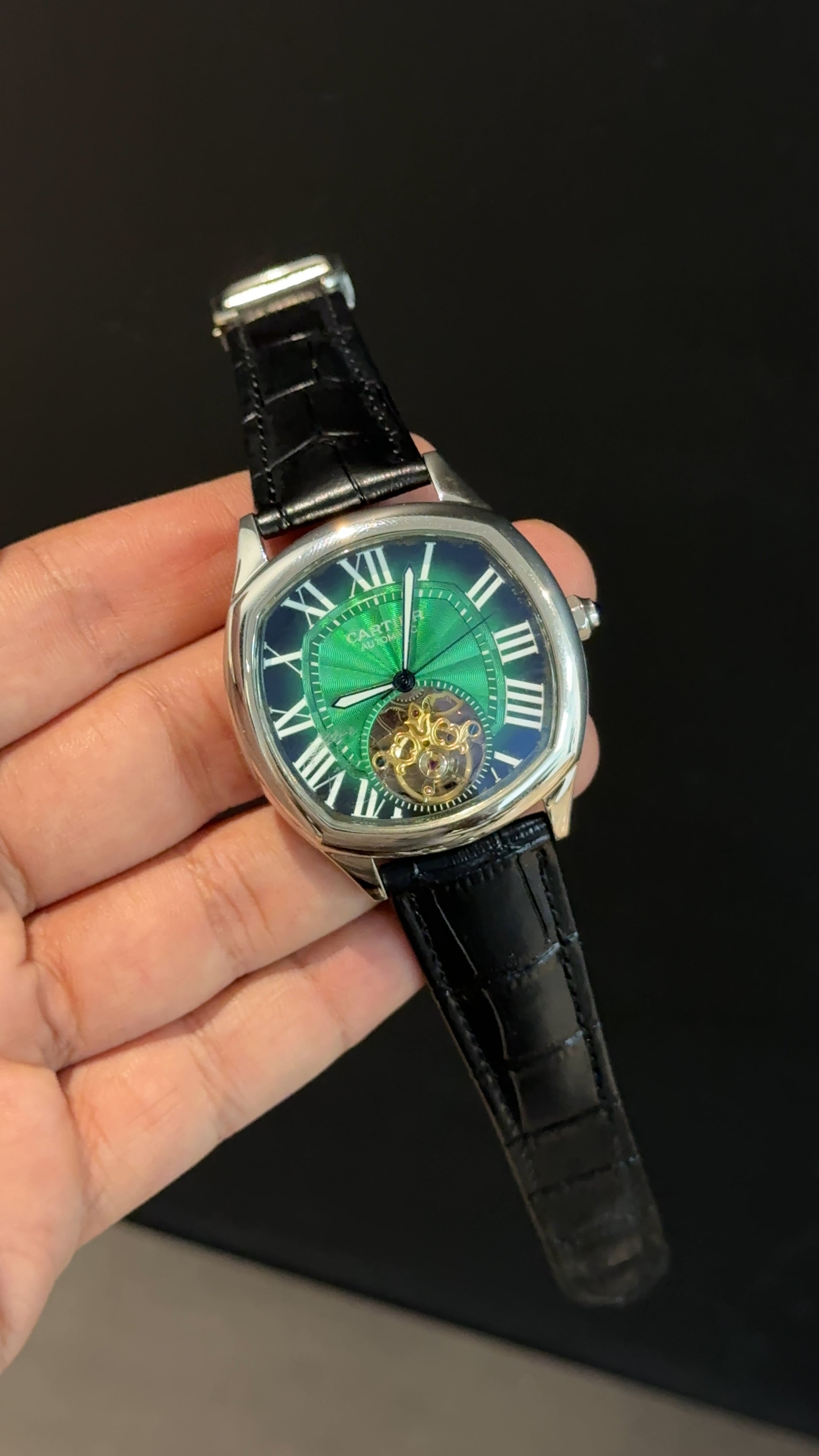 Cartier | Silver Square Bezel | Pendulum | Black Strap | Greenish Index Dial