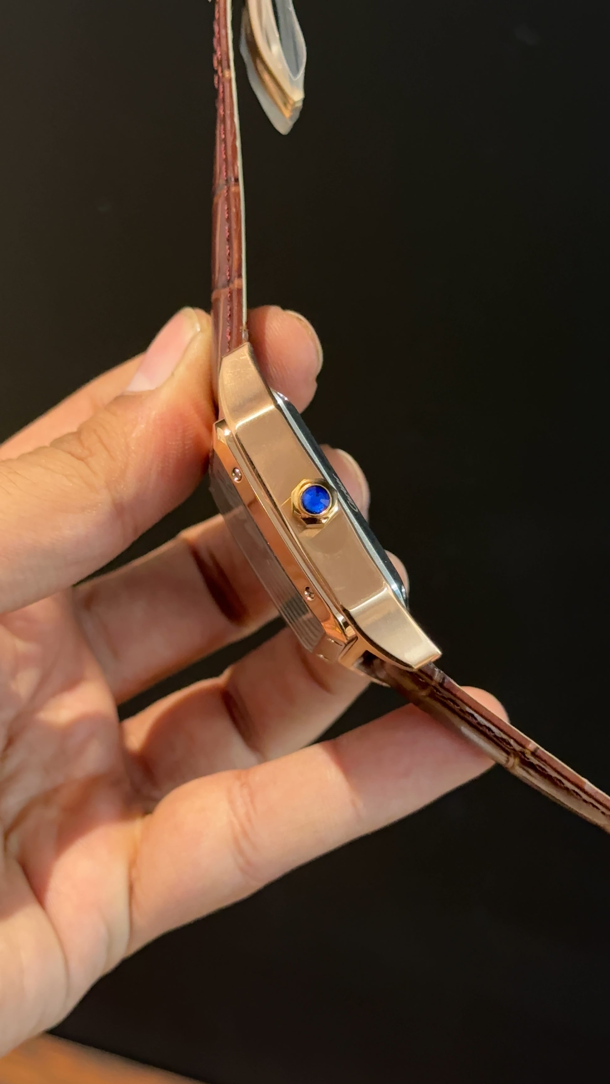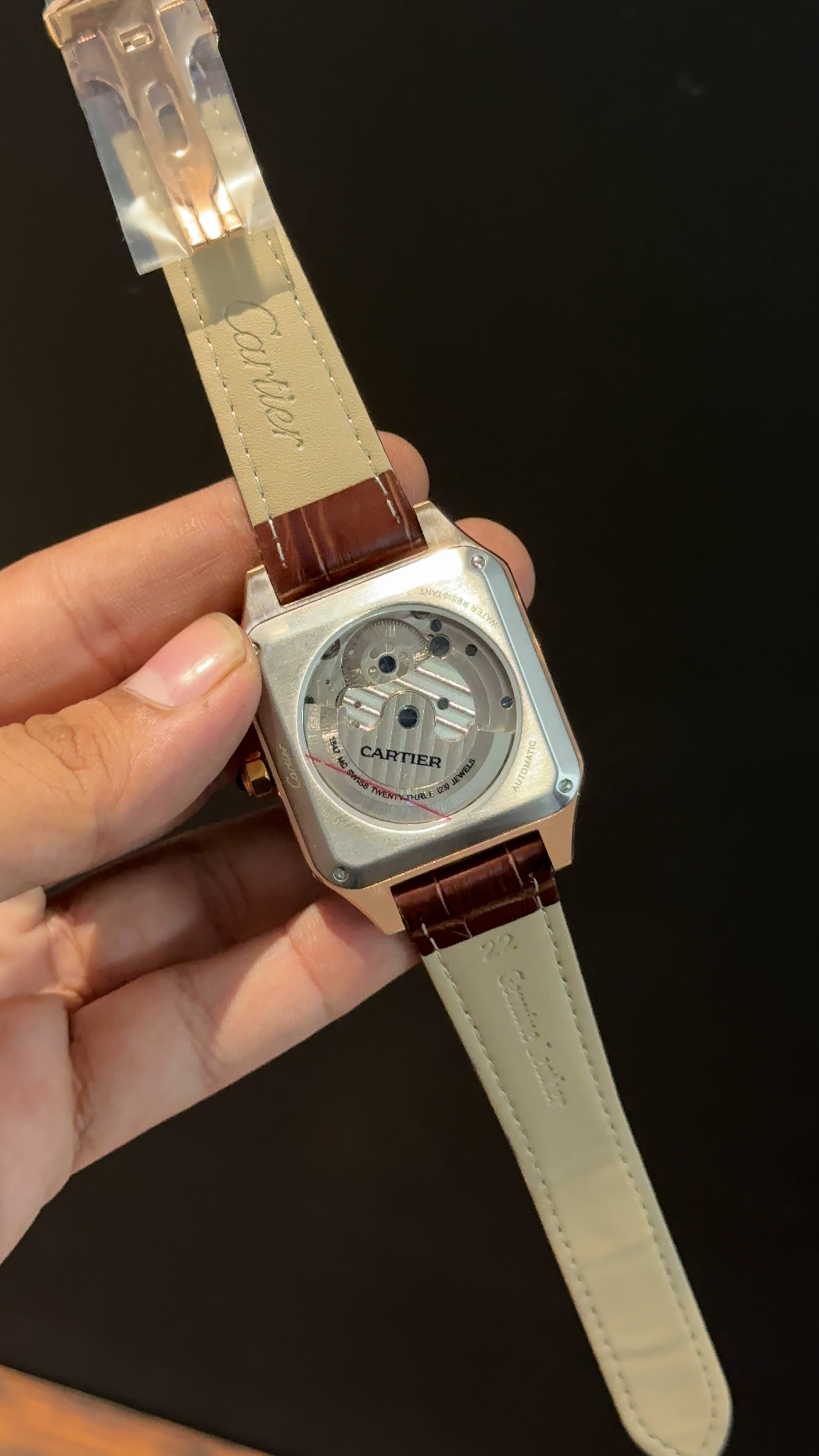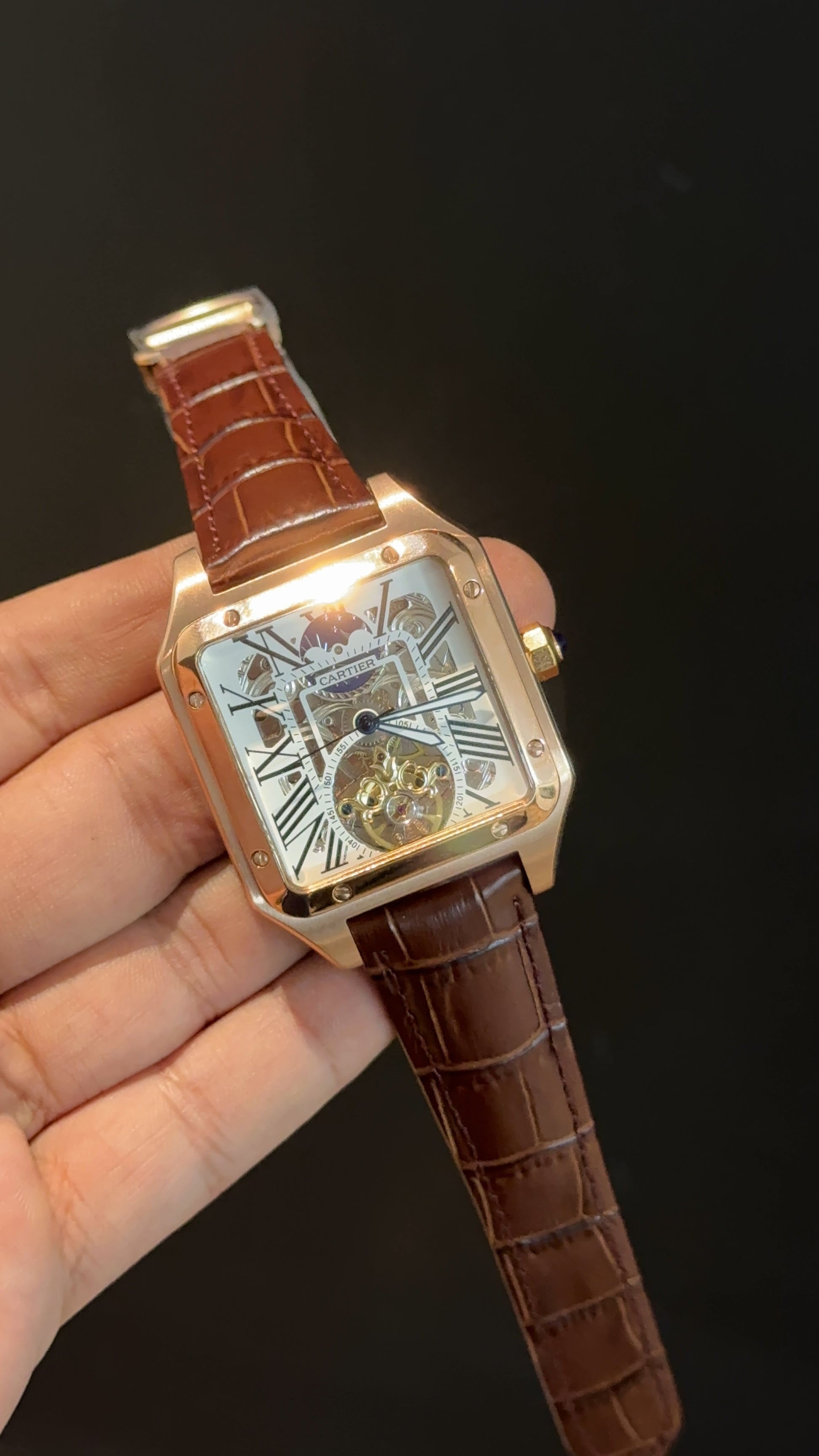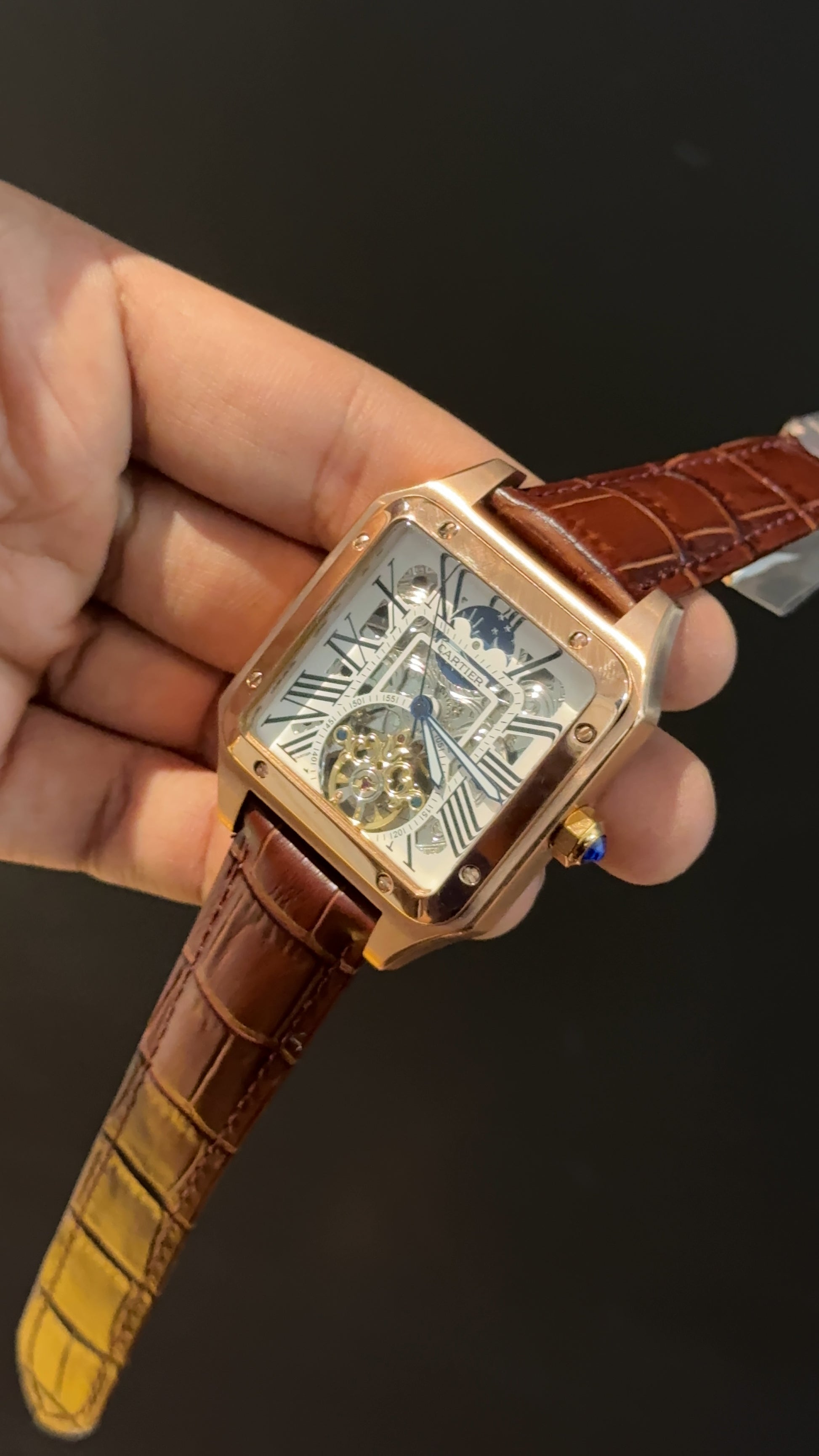 Cartier | Rose | Skeleton | MoonPhase | Square Shape Case | Brown Leather Strap | White Index Dial
