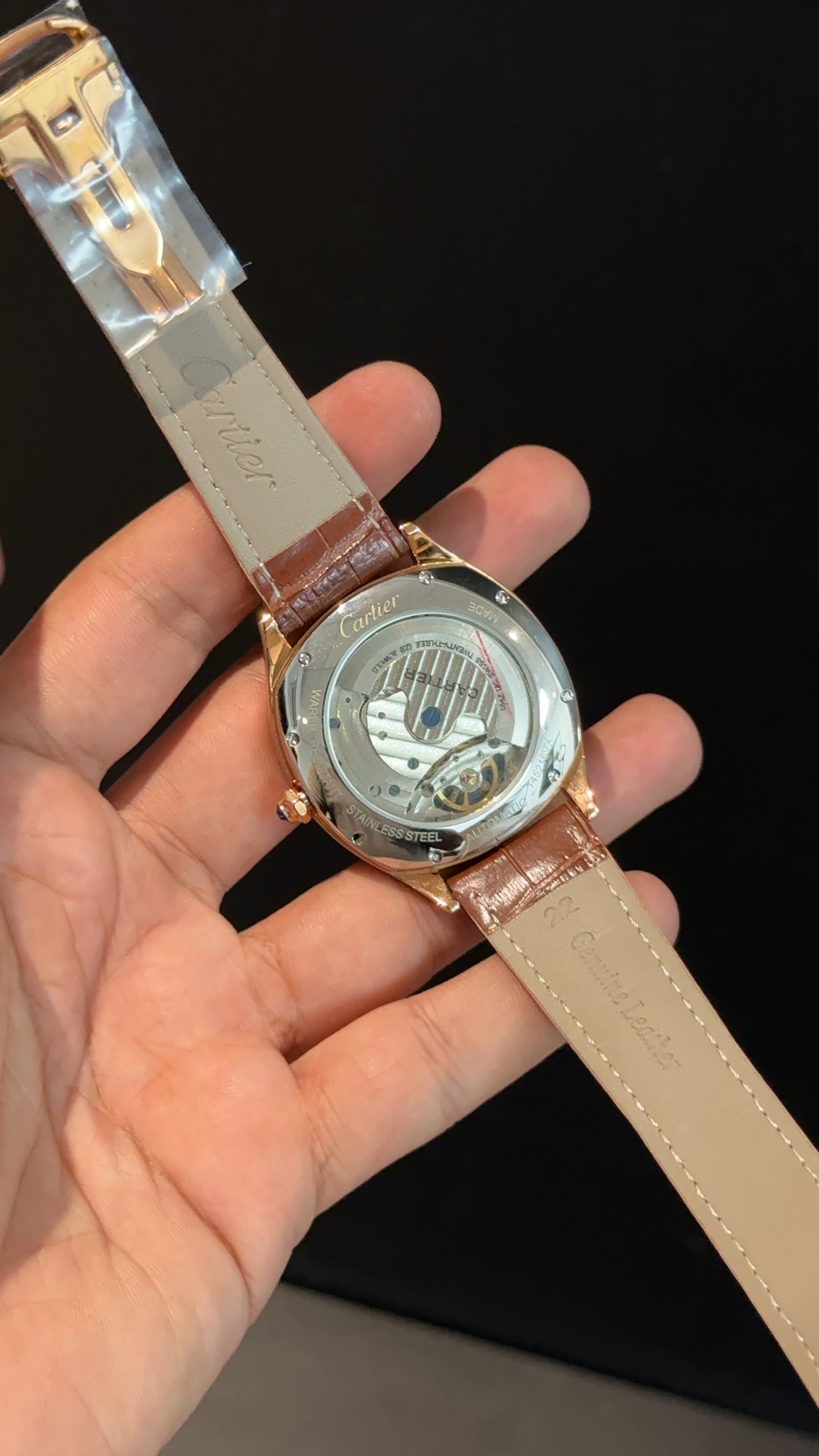 Cartier | Rose Square Bezel | Pendulum | Brown Strap | White Index Dial