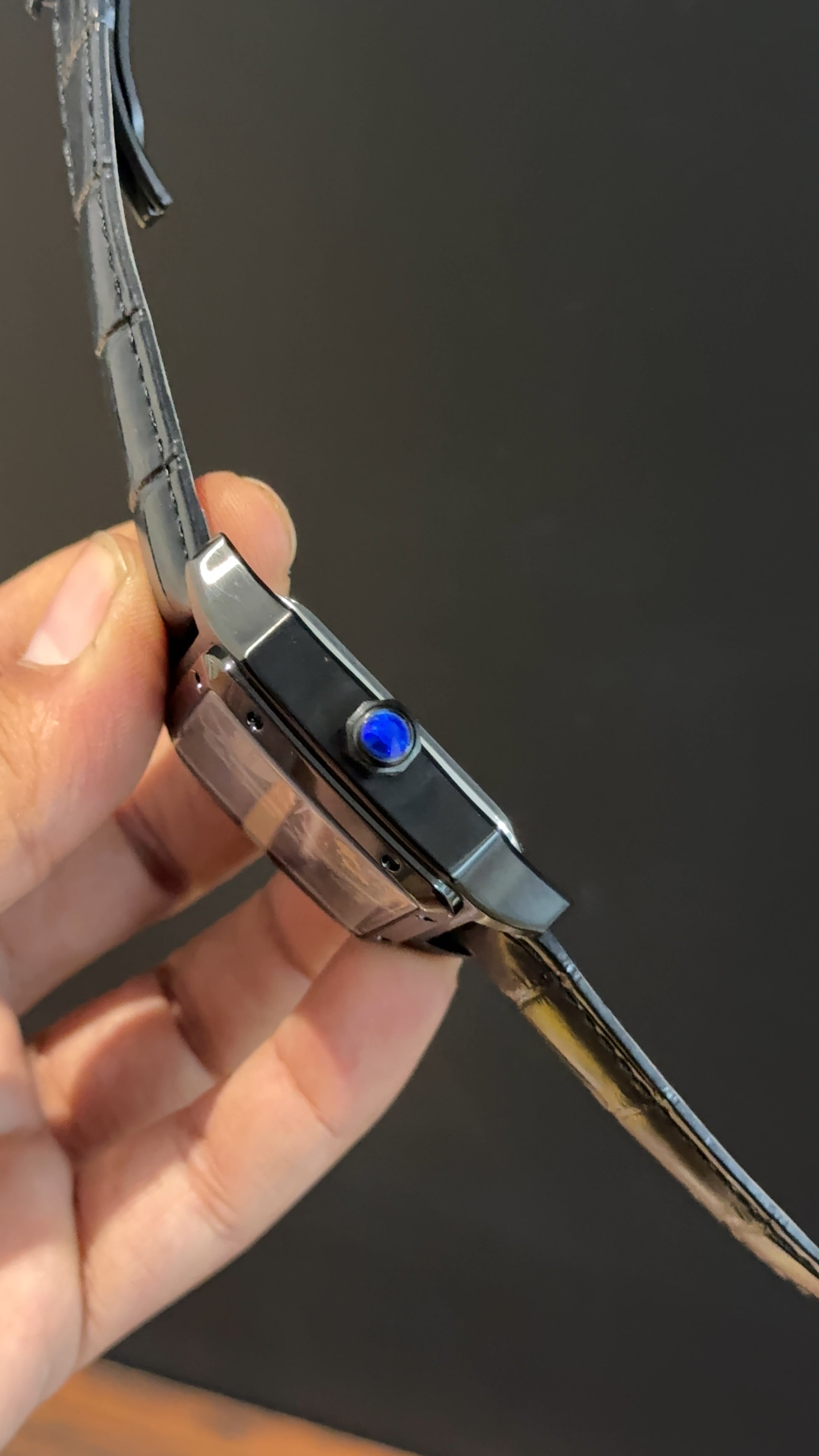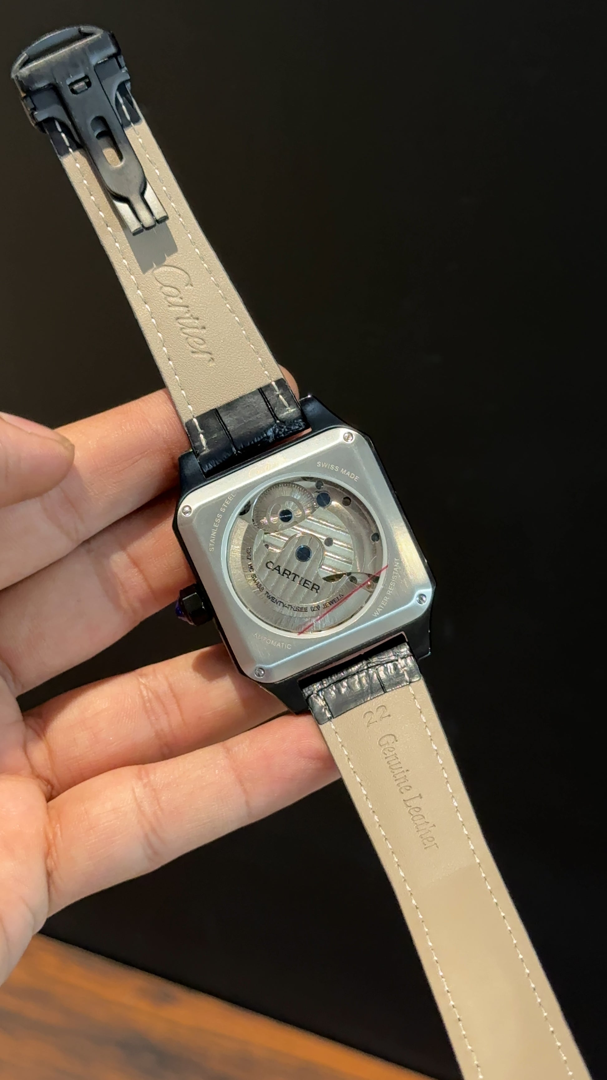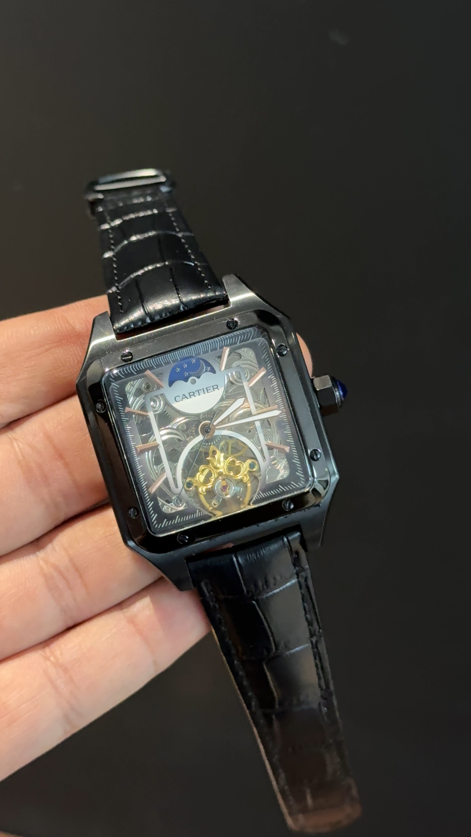 Cartier | Black | Skeleton | Square Shape Case | Moonphase | Black Leather Strap | Grey Dial