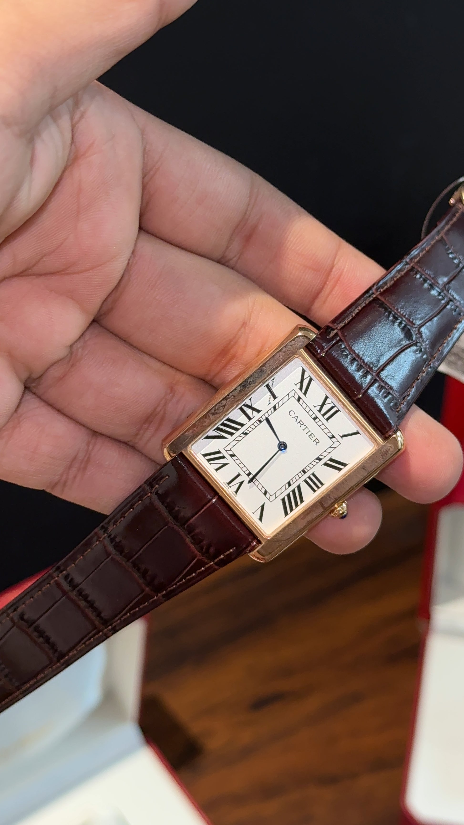 Cartier Tank | Rose | Dark Brown Leather Strap | White Dial