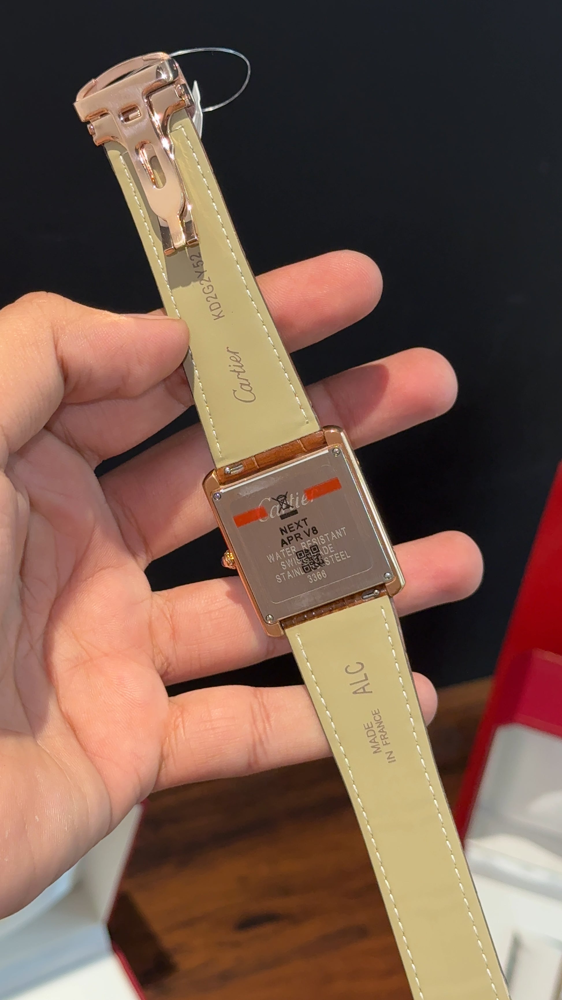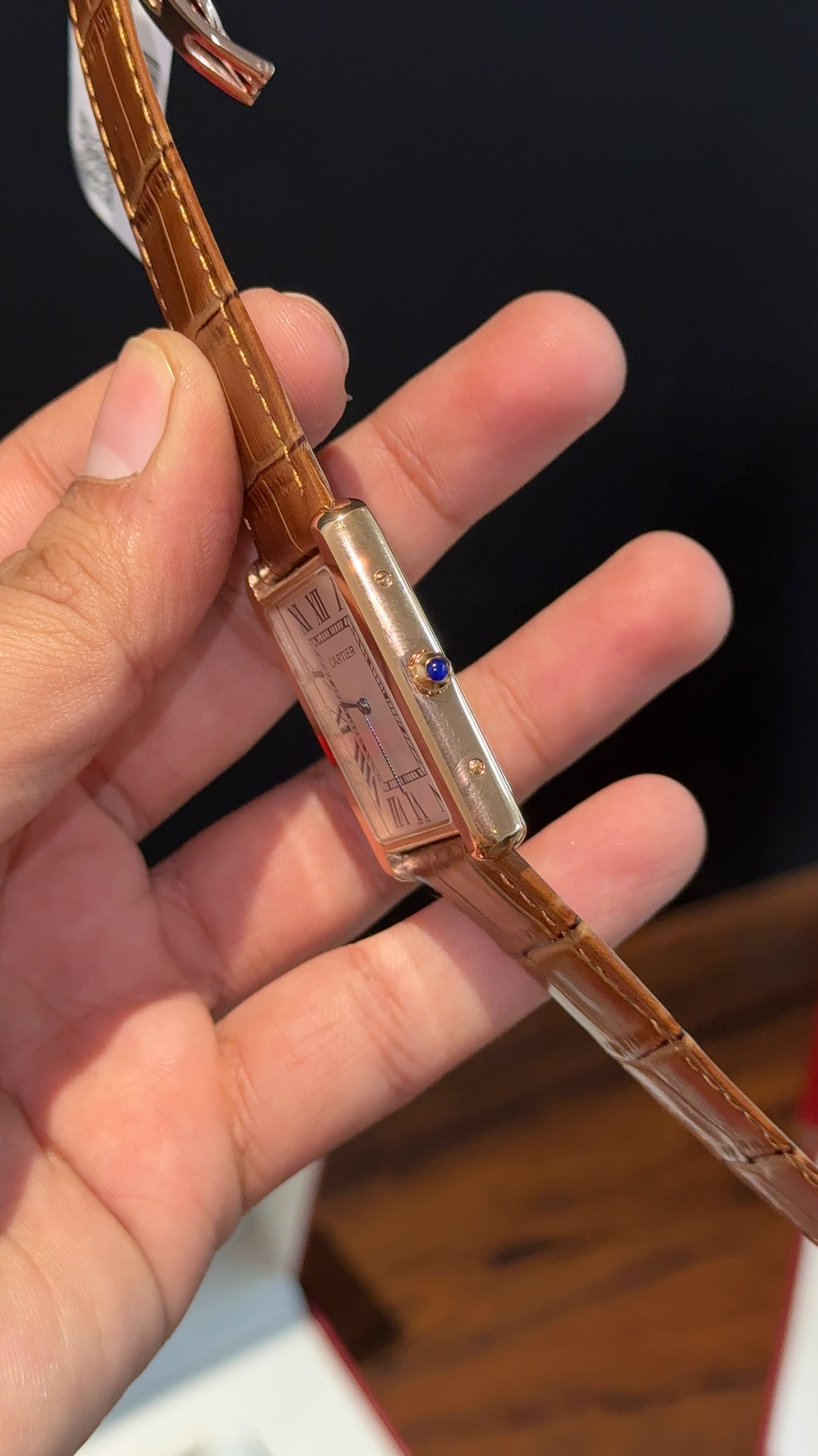Cartier Tank | Rose | Camel Brown Leather Strap | White Dial