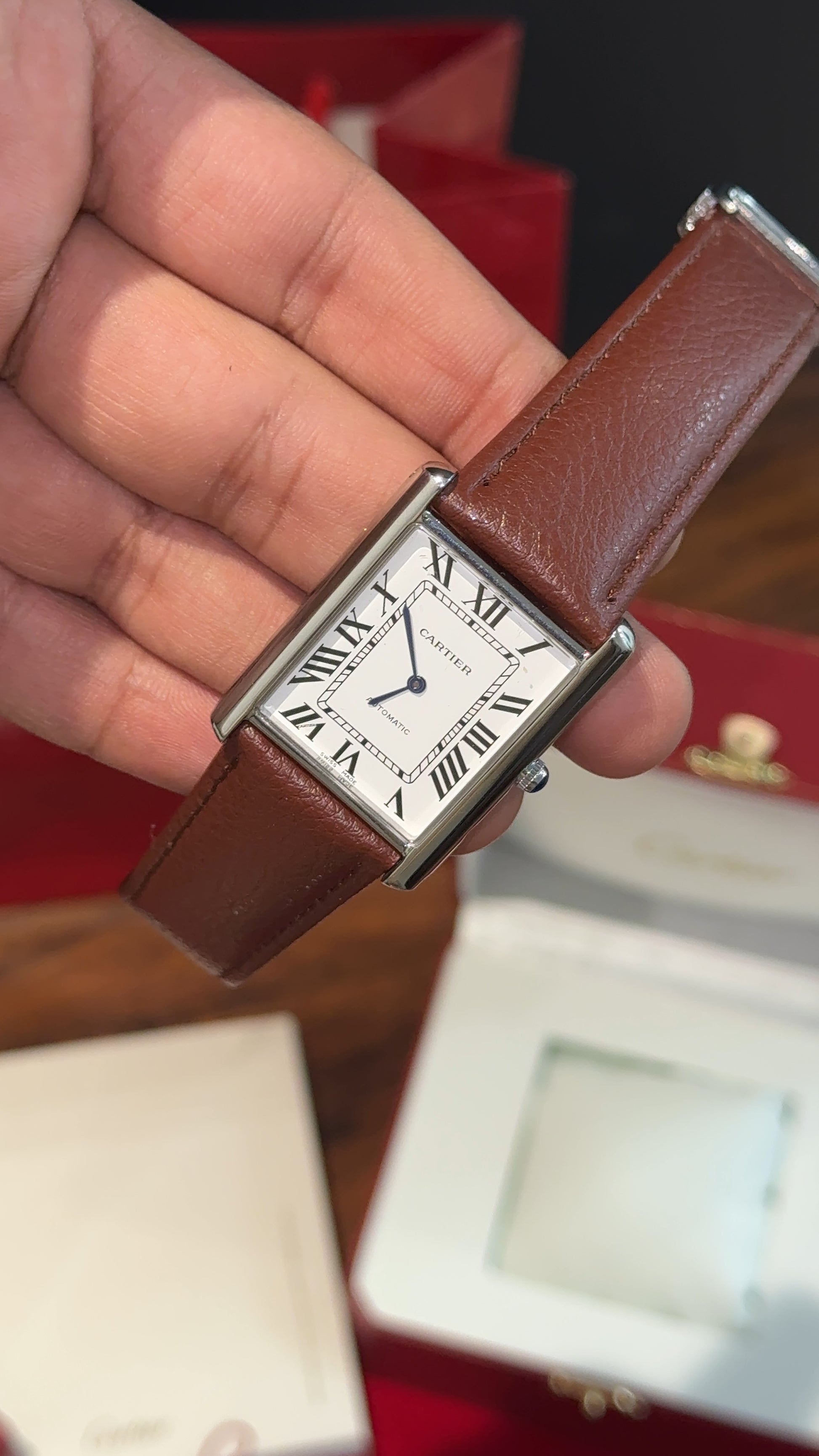 Cartier tank | Silver Case | Brown Strap | White Dial