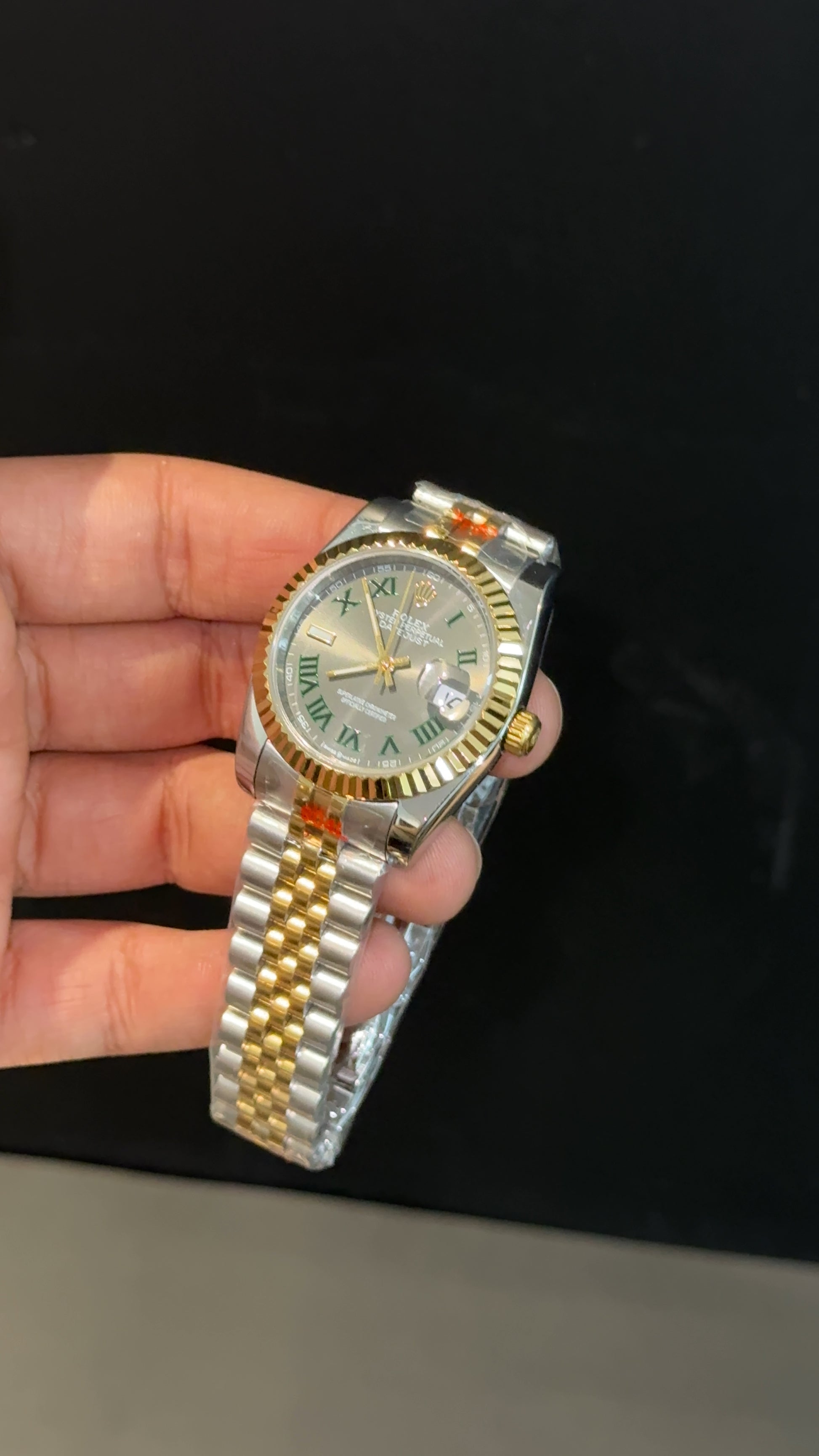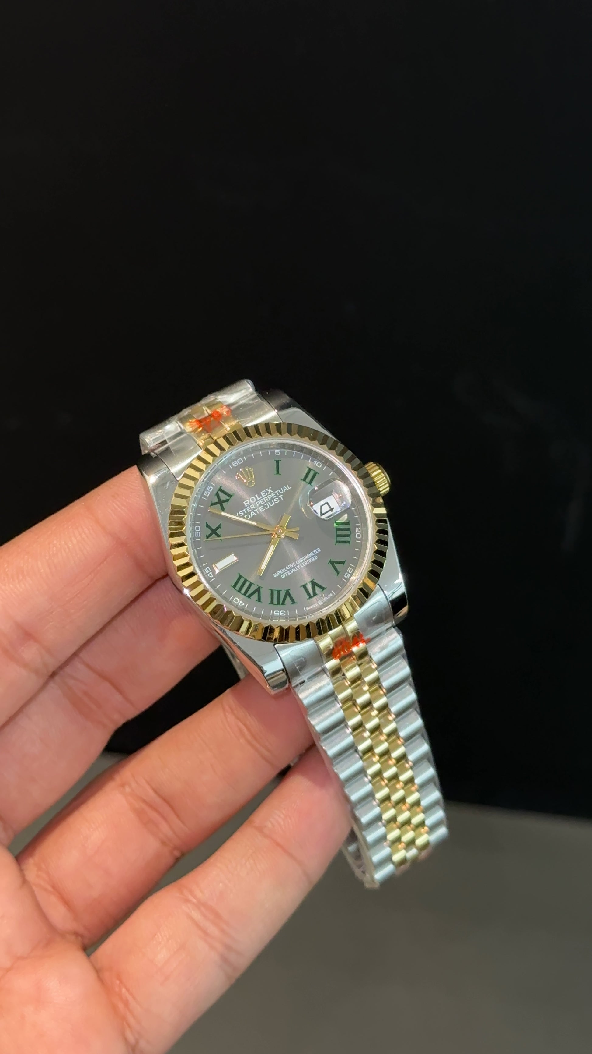DateJust | 36mm | Gold Two Tone | Green Roman Grey Dial