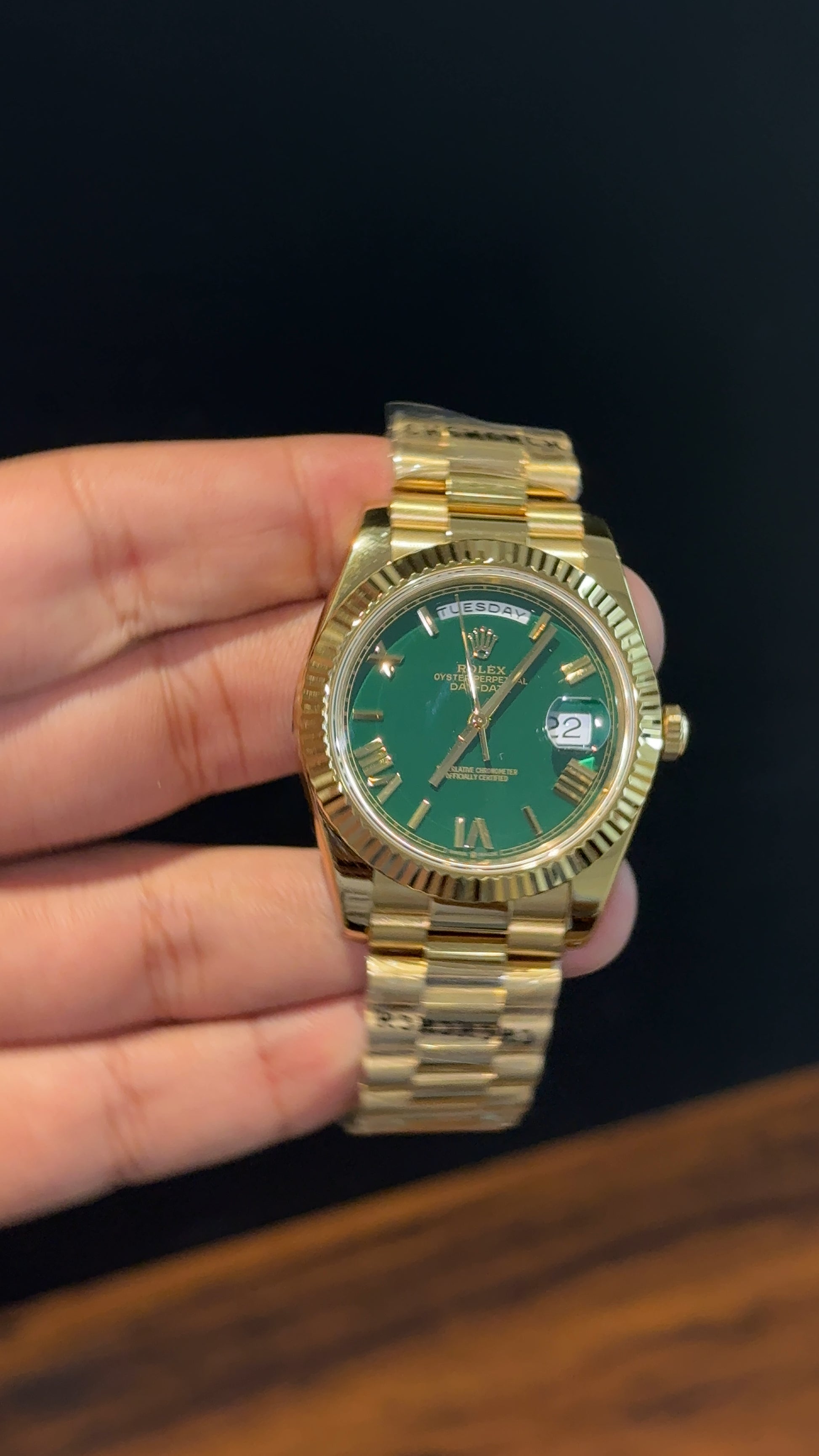 Premium DayDate |Gold Chain | Dark Green Dial