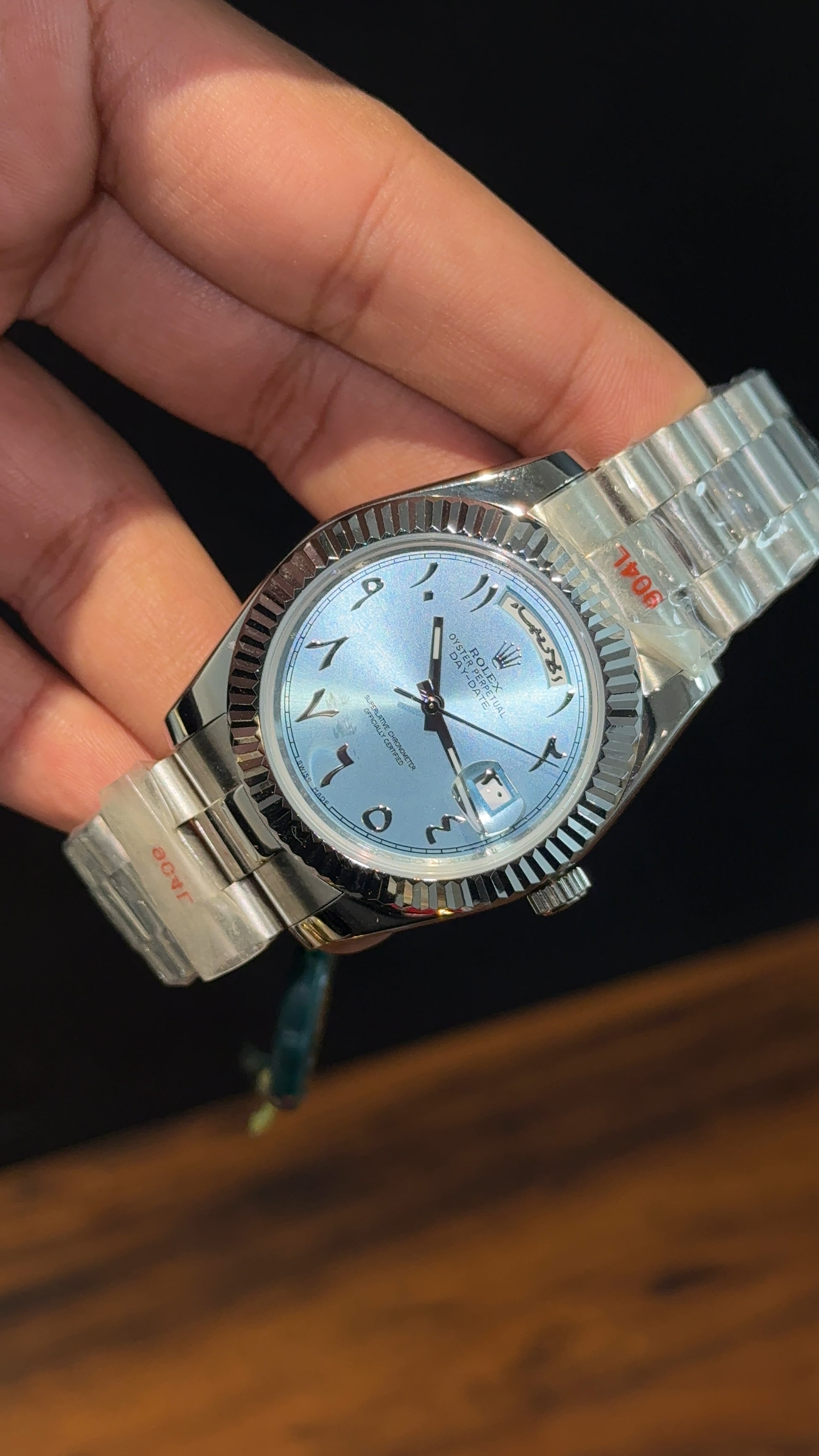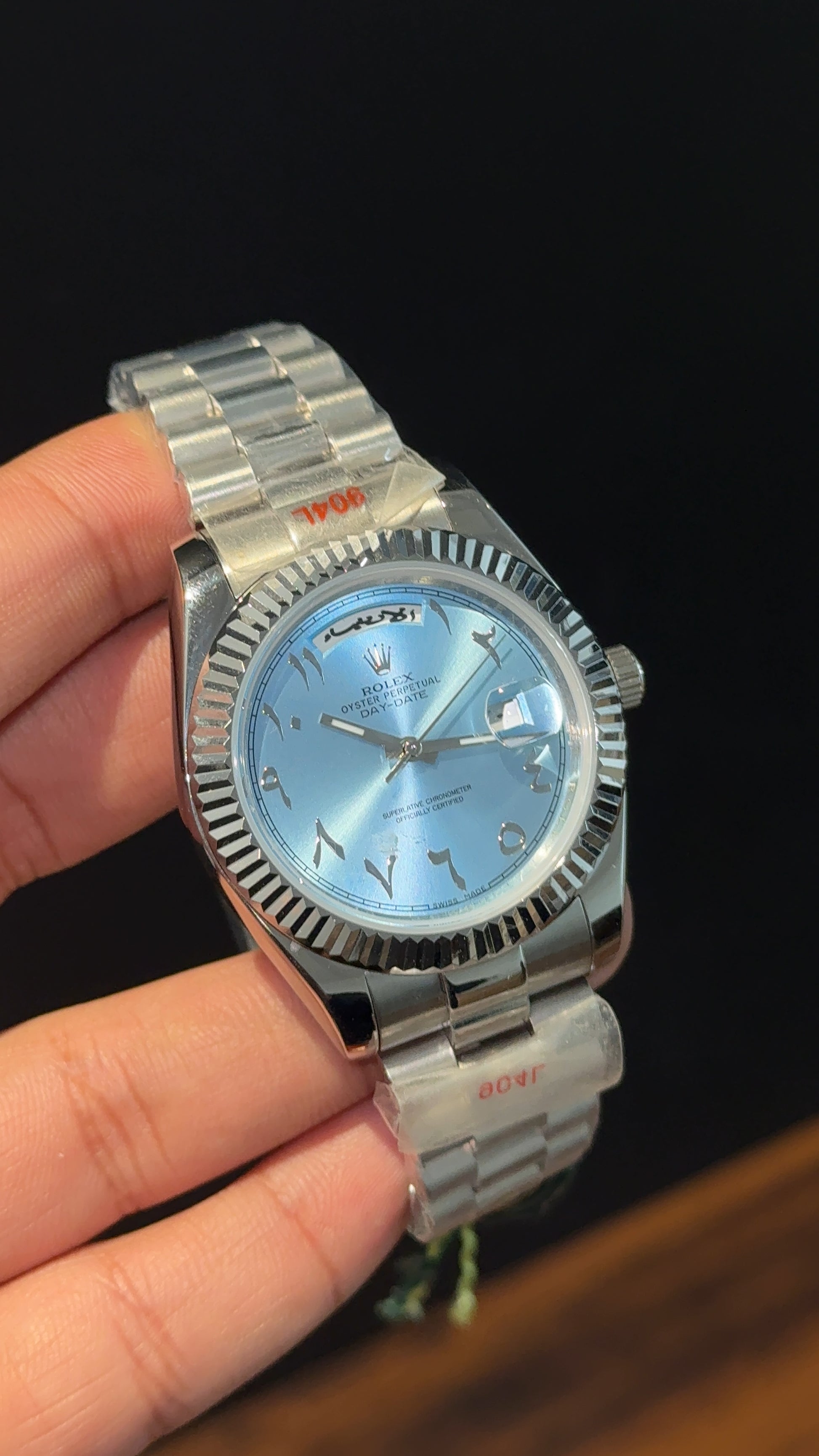 DayDate | Silver Chain | Arabic Digit | Sky Blue Dial