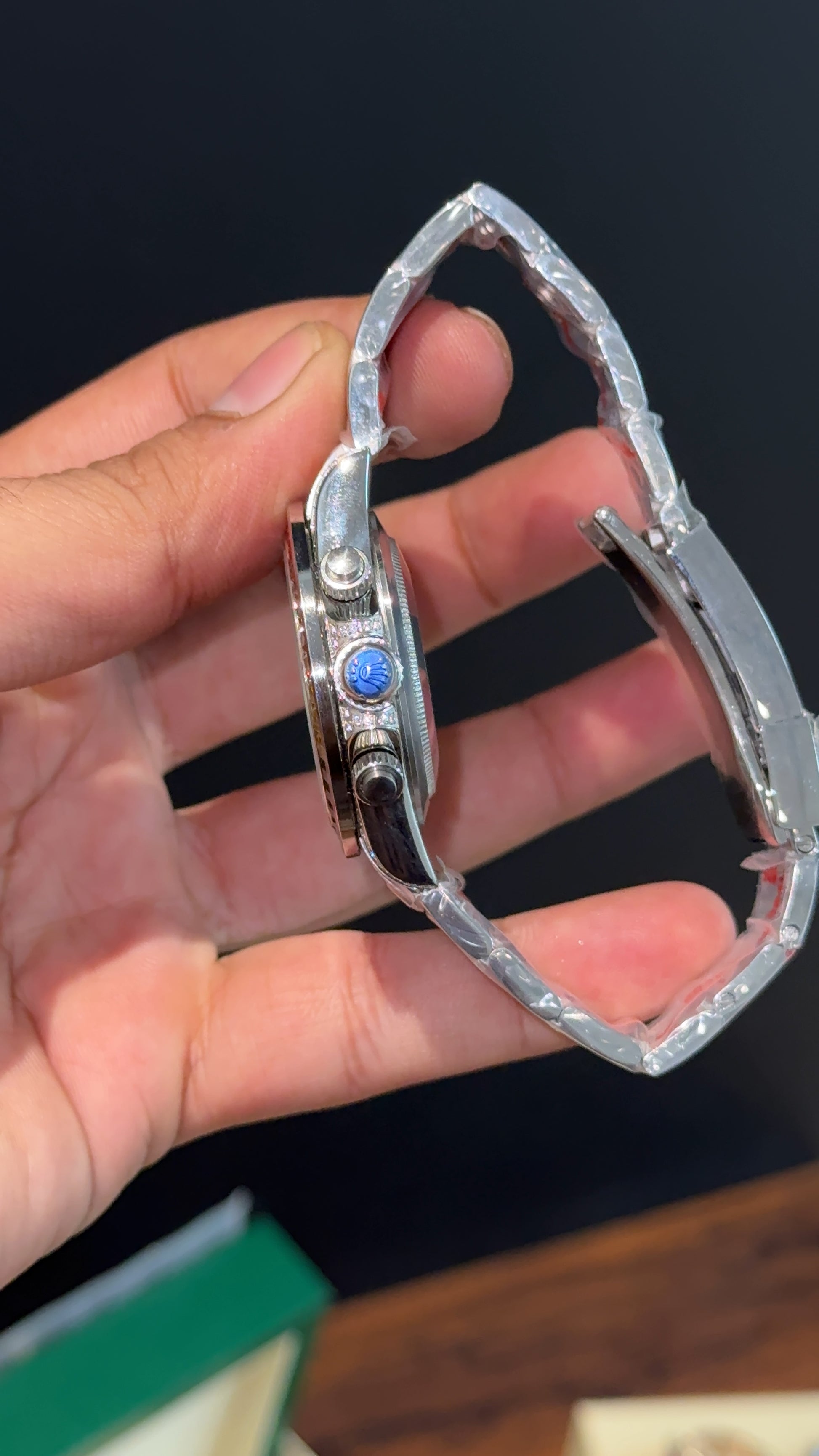 Daytona | Rainbow Diamond Case | Silver Chain | Diamond Digit | Chrono | Black Dial