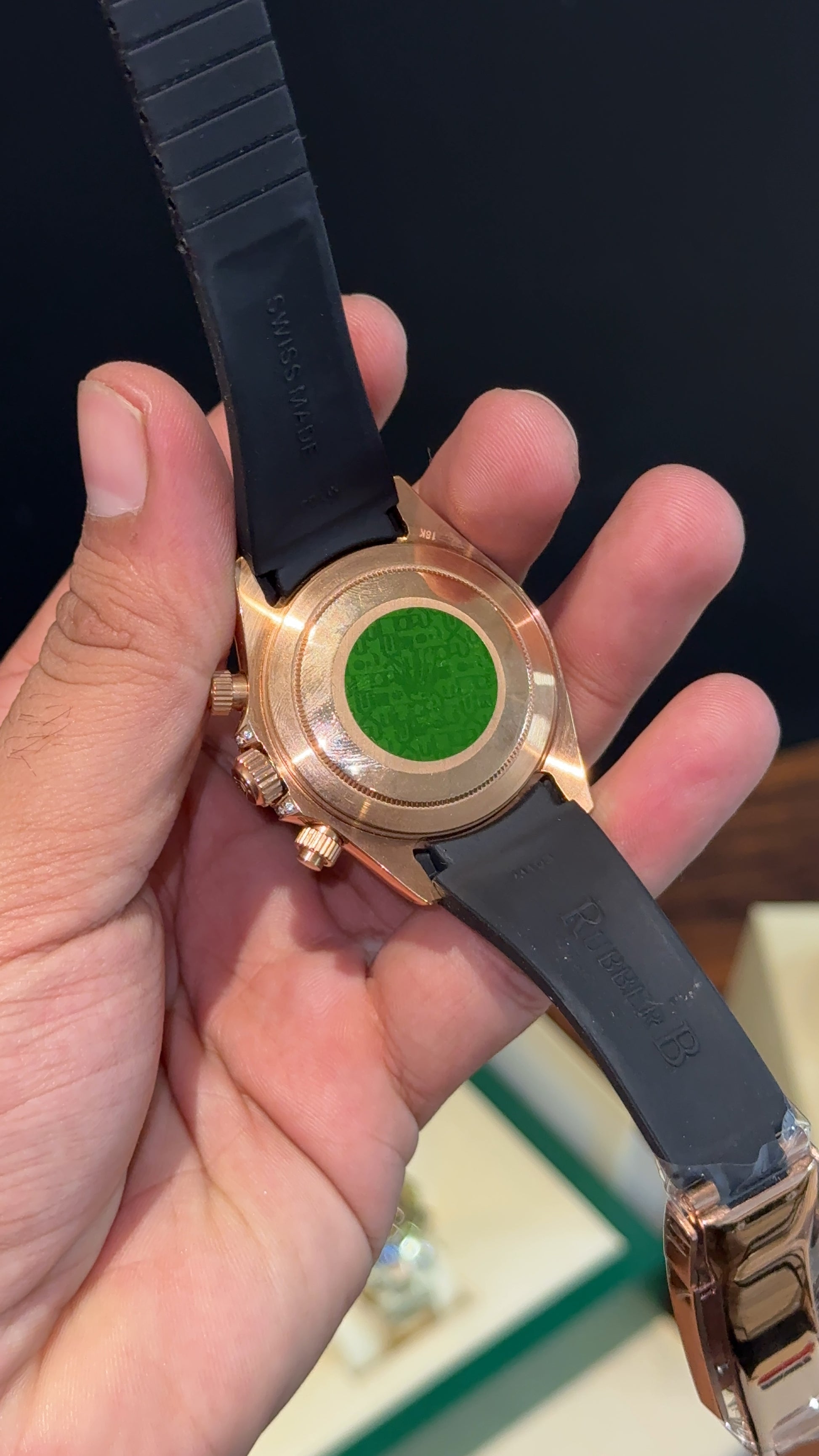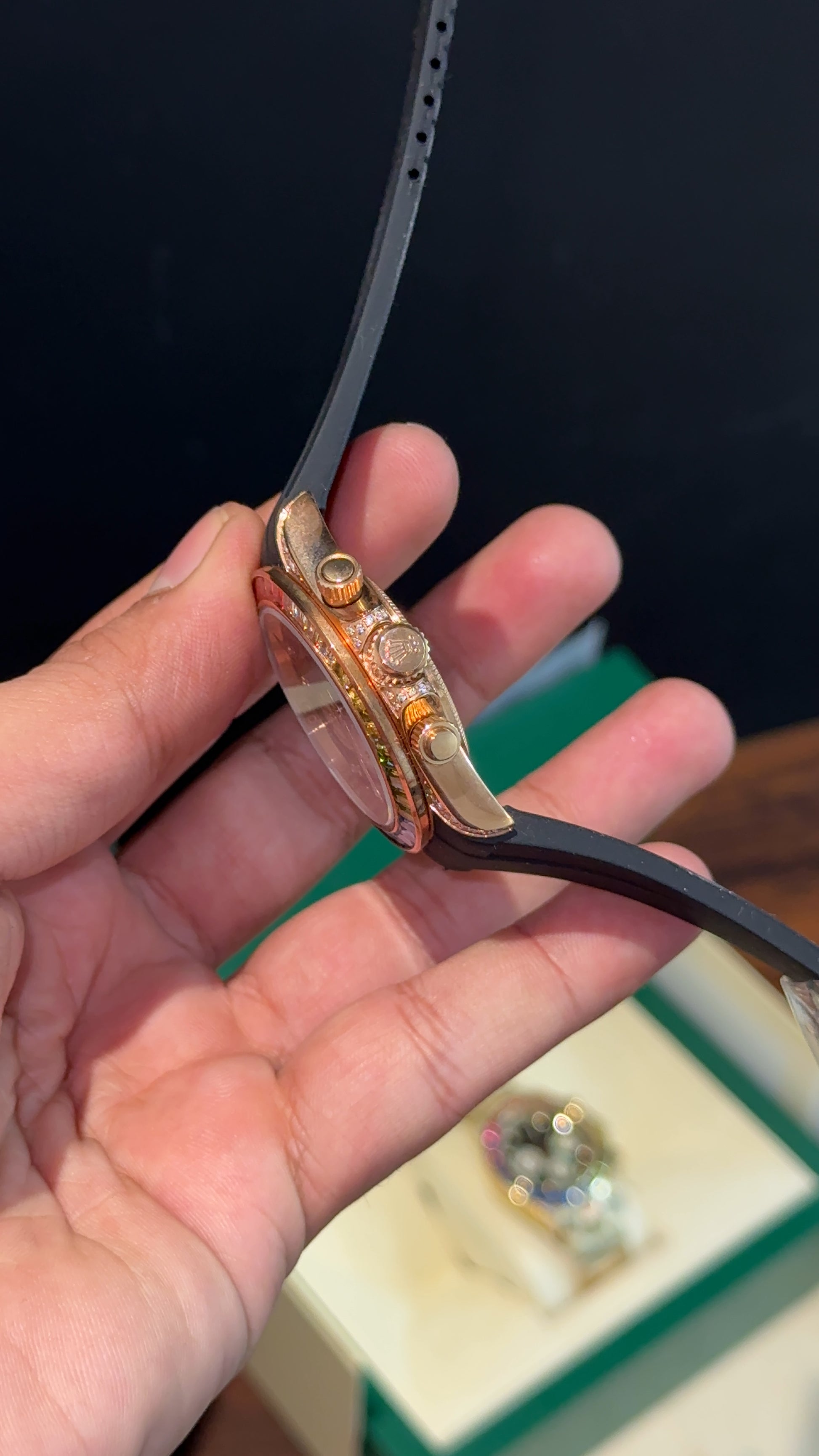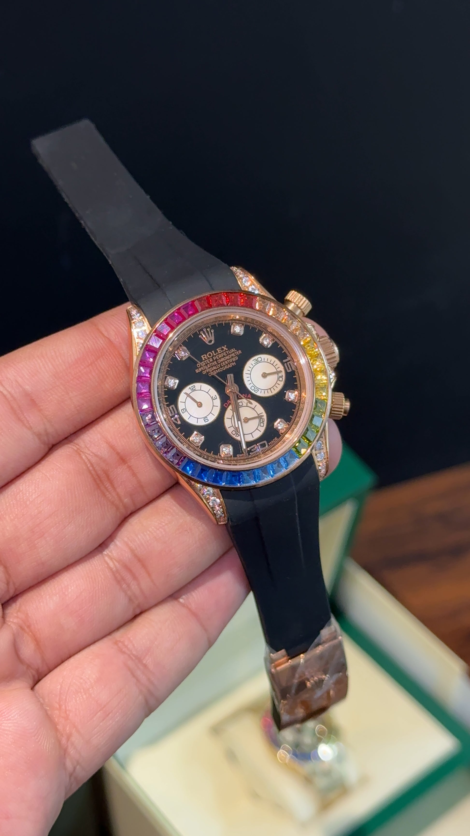 Daytona Rose | Rainbow Diamond Case | Black Pvc Strap | Diamond Digit | Chrono | Black Dial