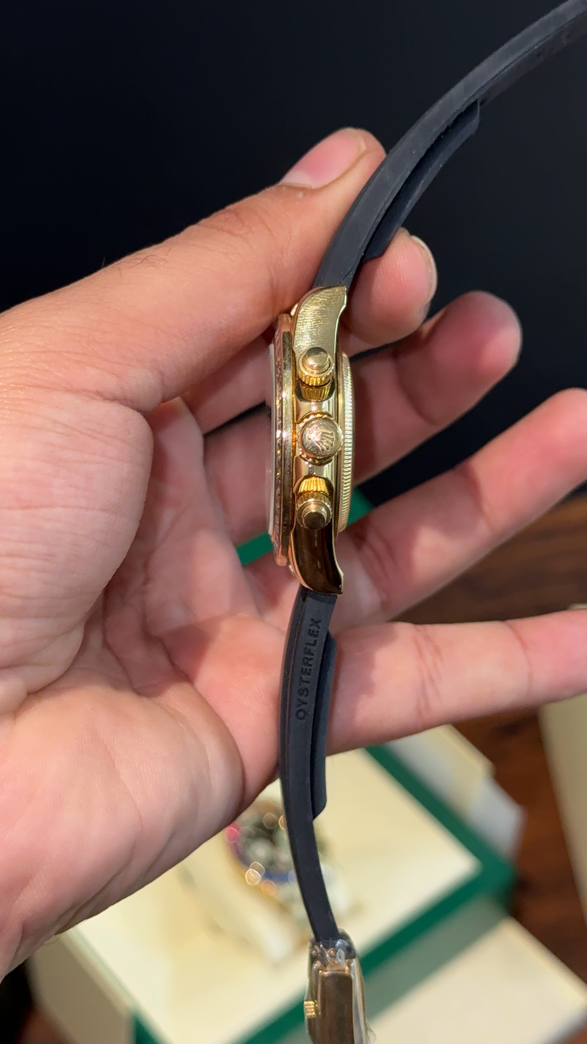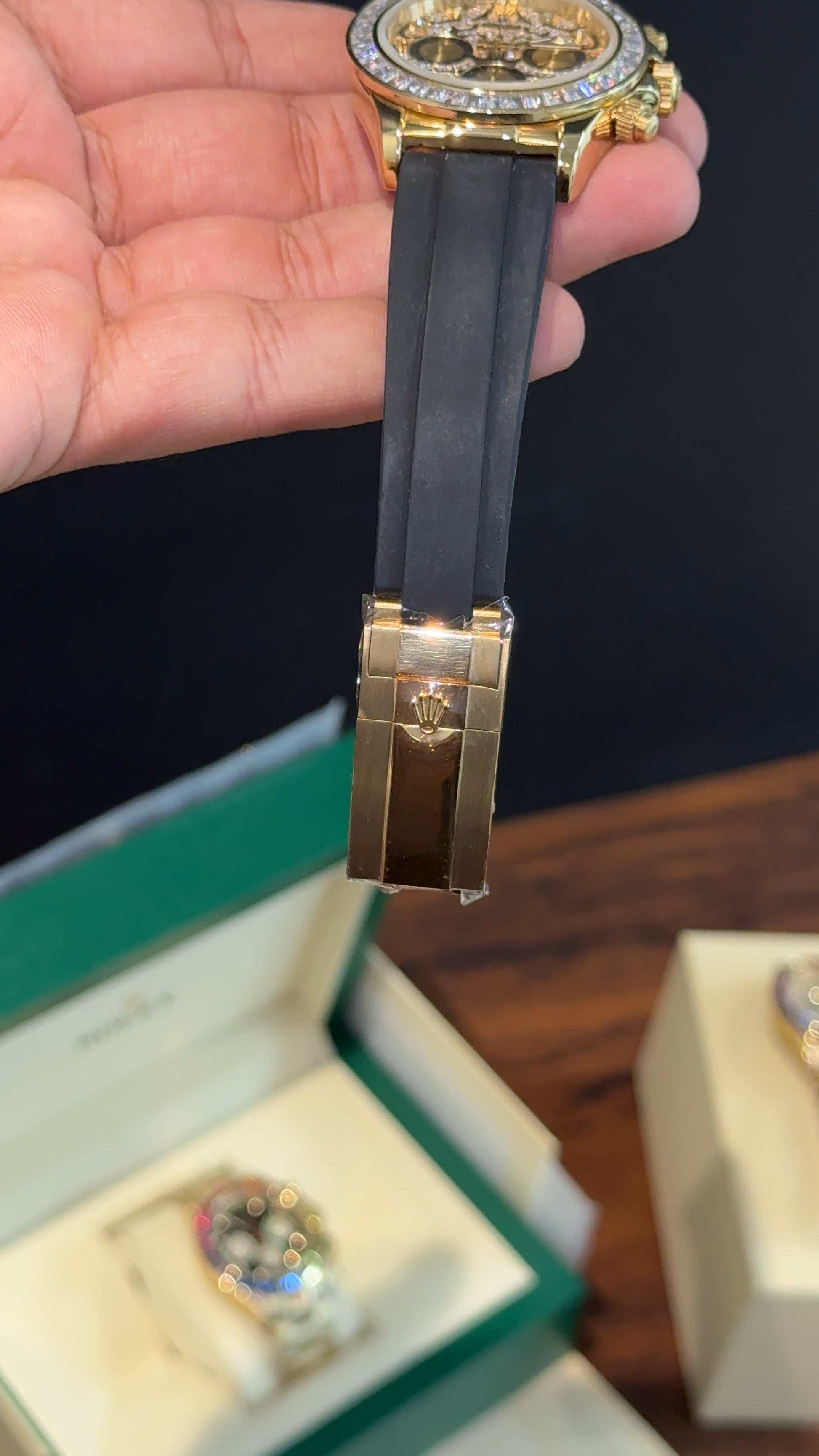 Daytona Gold | Diamond Case | Black Pvc Strap | Diamond Digit | Chrono | Gold Pearl Dial