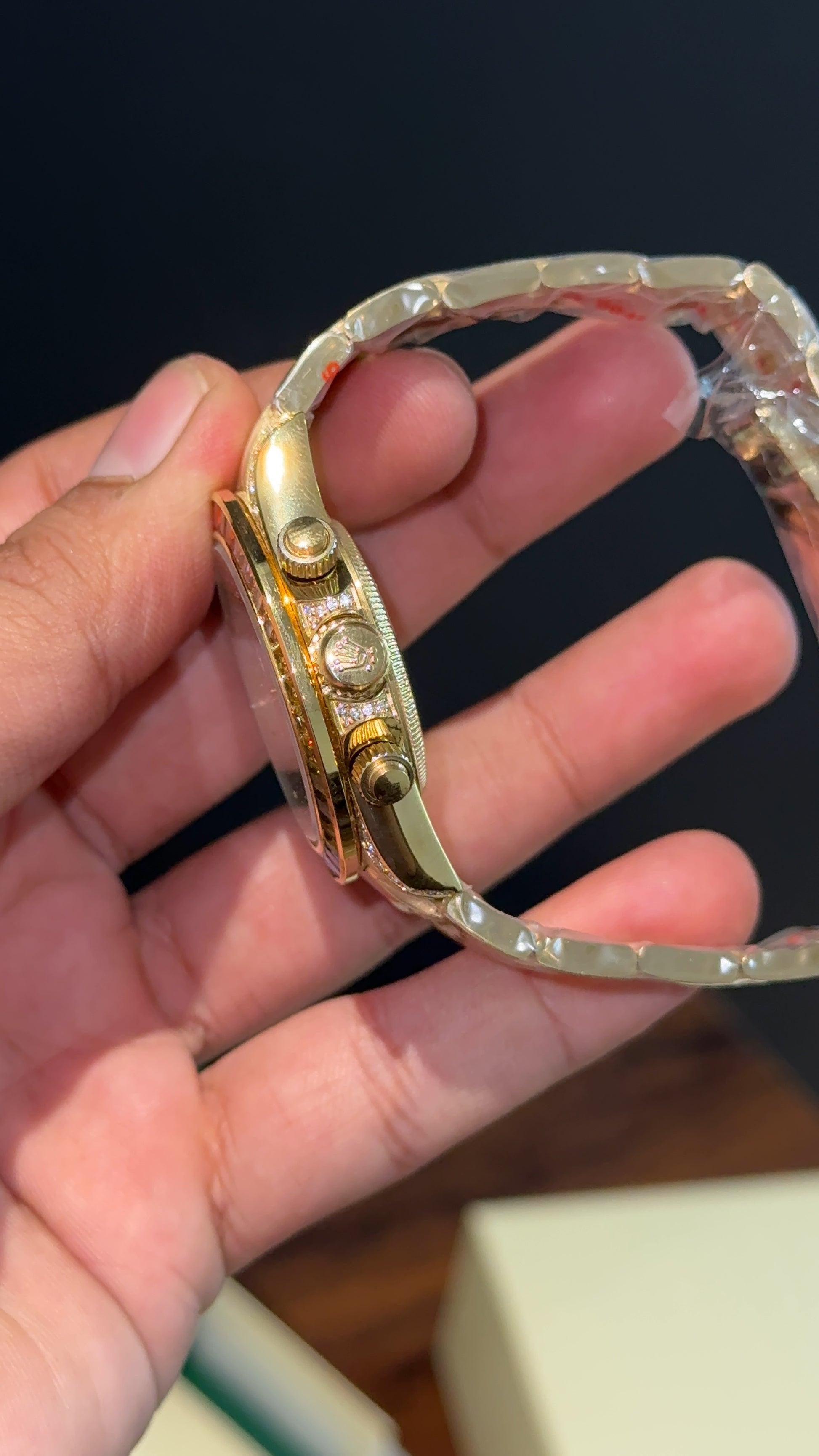 Daytona | Rainbow Diamond Case | Gold Chain | Rainbow Digit |Chrono | Gold Pearl Dial