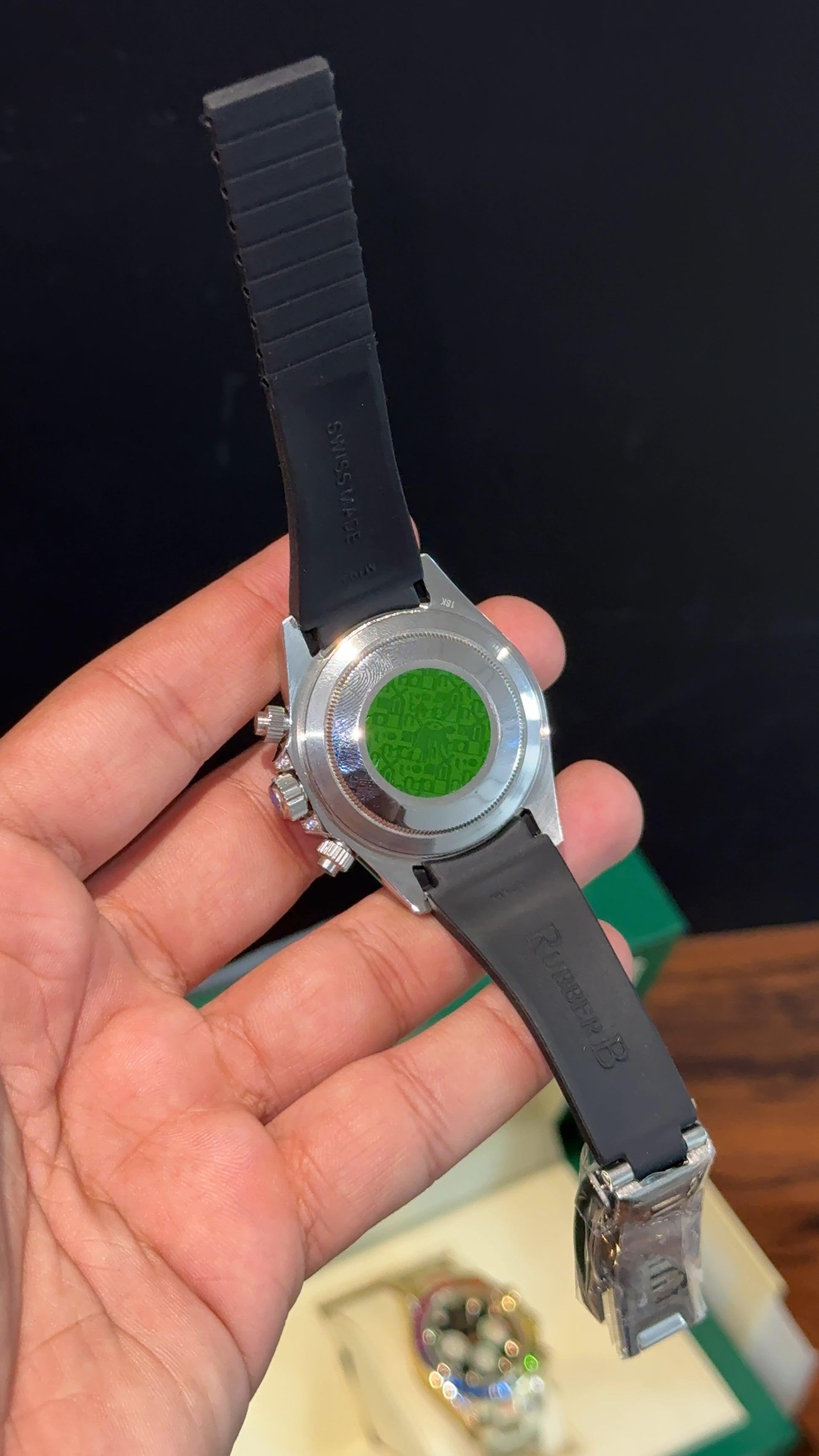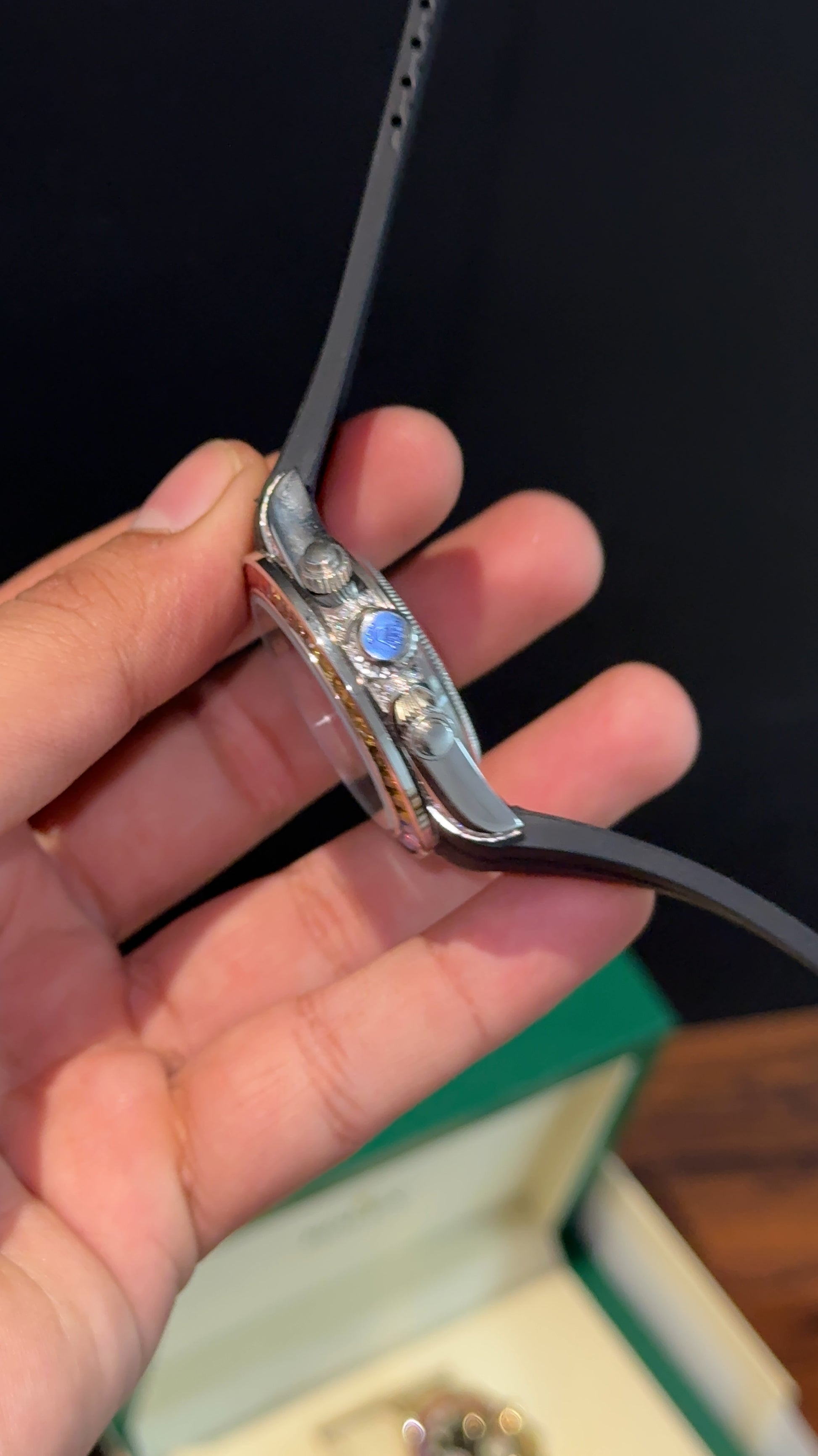 Daytona Silver | Rainbow Diamond Case | Black Pvc Strap | Rainbow Digit | Chrono | Black Dial