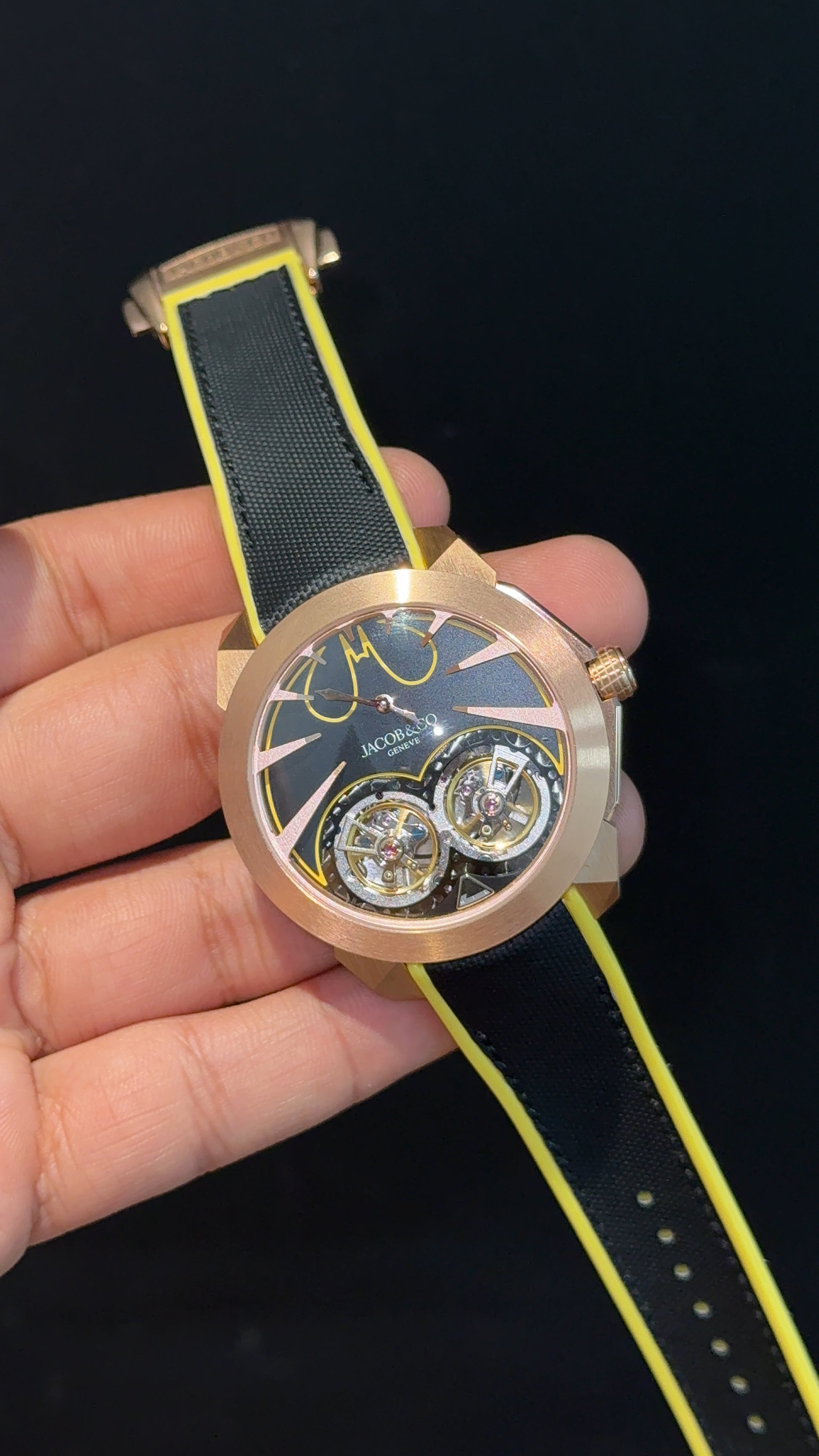 Executive Jacob And Co | Rose Case | Gotham City Edition | Black Yellow Strap | Black Dial