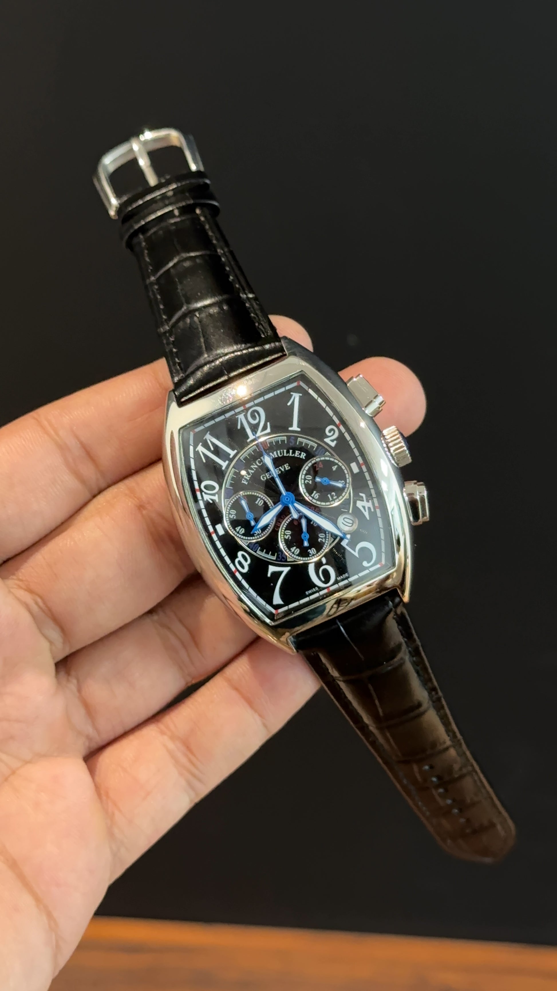 Franck muller | Silver | Black Leather Strap | Blue Chrono | Black Dial