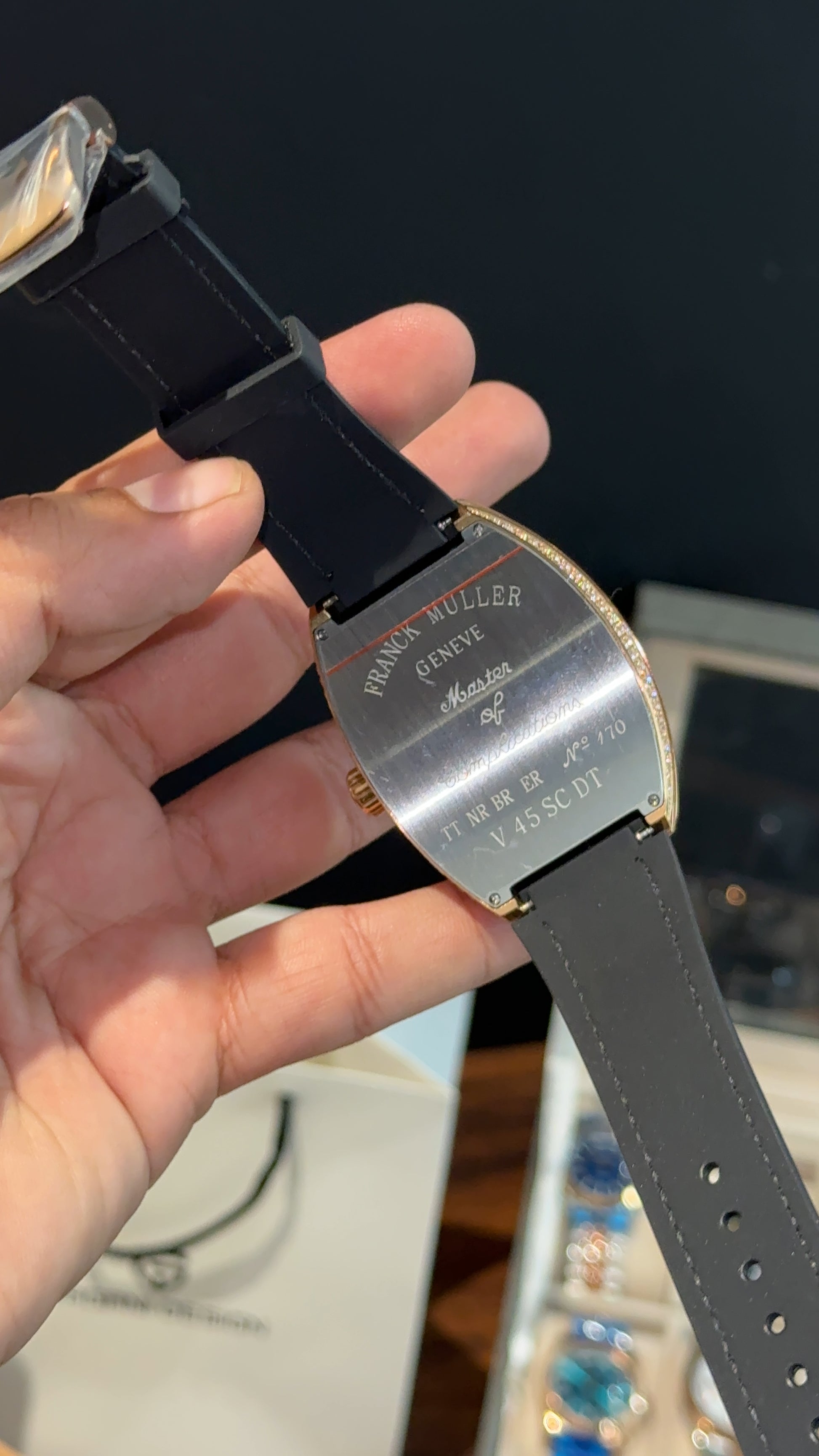 Premium Franck Muller | Curvex Skeleton | Rose Pearl Case | Black Leather Strap | Black Dial