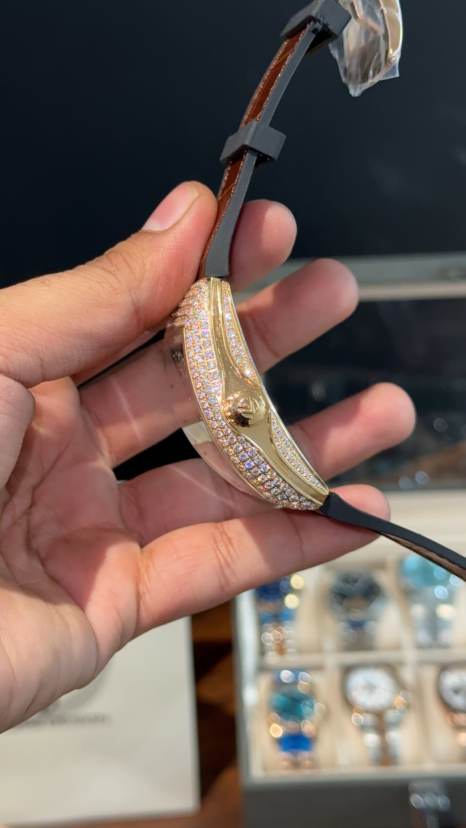 Premium Franck Muller | Curvex Skeleton | Rose Case | Brown Leather Strap | Rose Pearl Dial