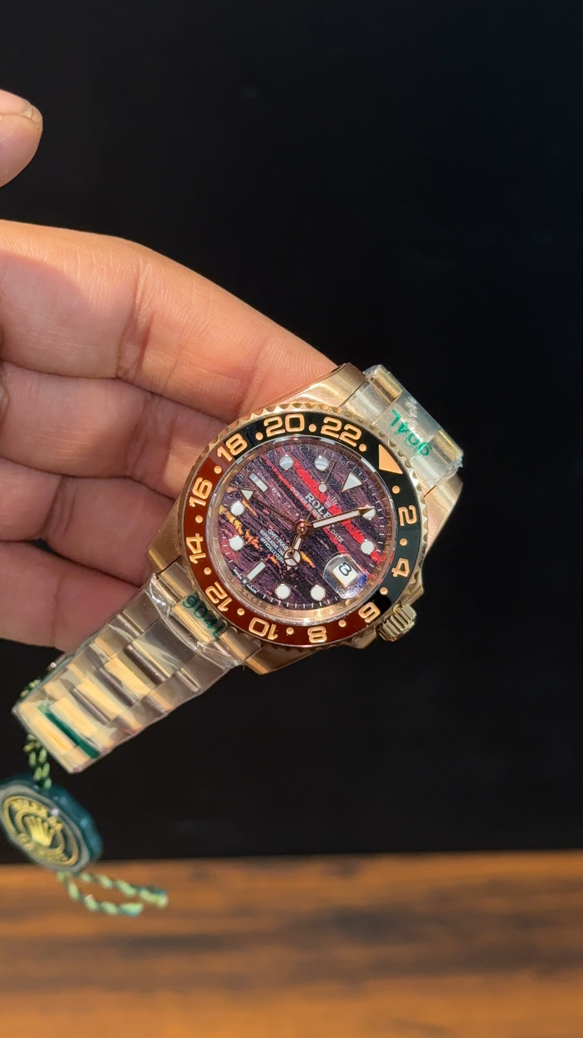 GMT Rootbear | Rose Oyester Chain | Red Landscape Dial