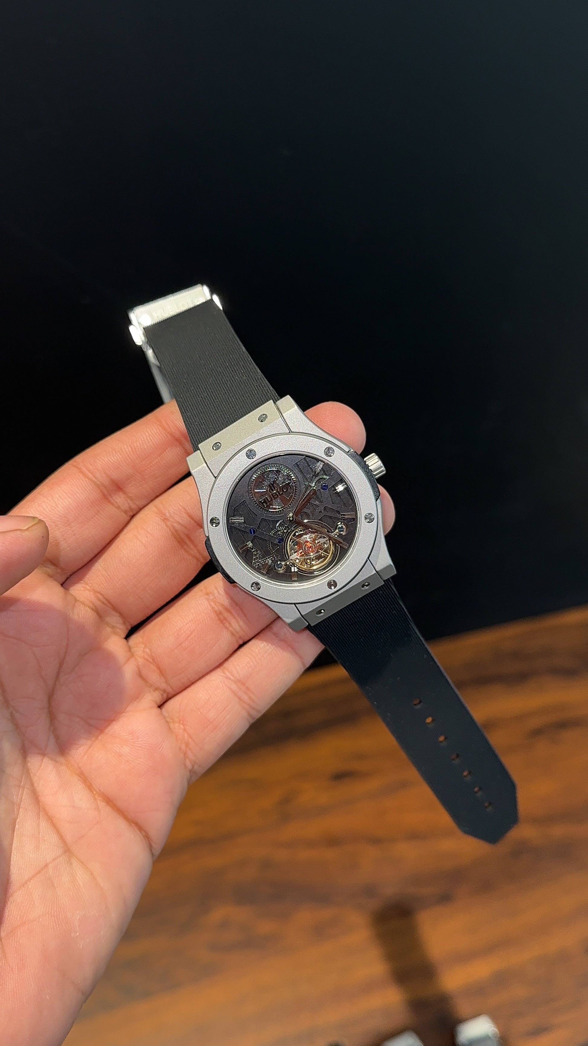 Hublot Auto | Silver Case | Pendulum | Black Strap | Black Dial