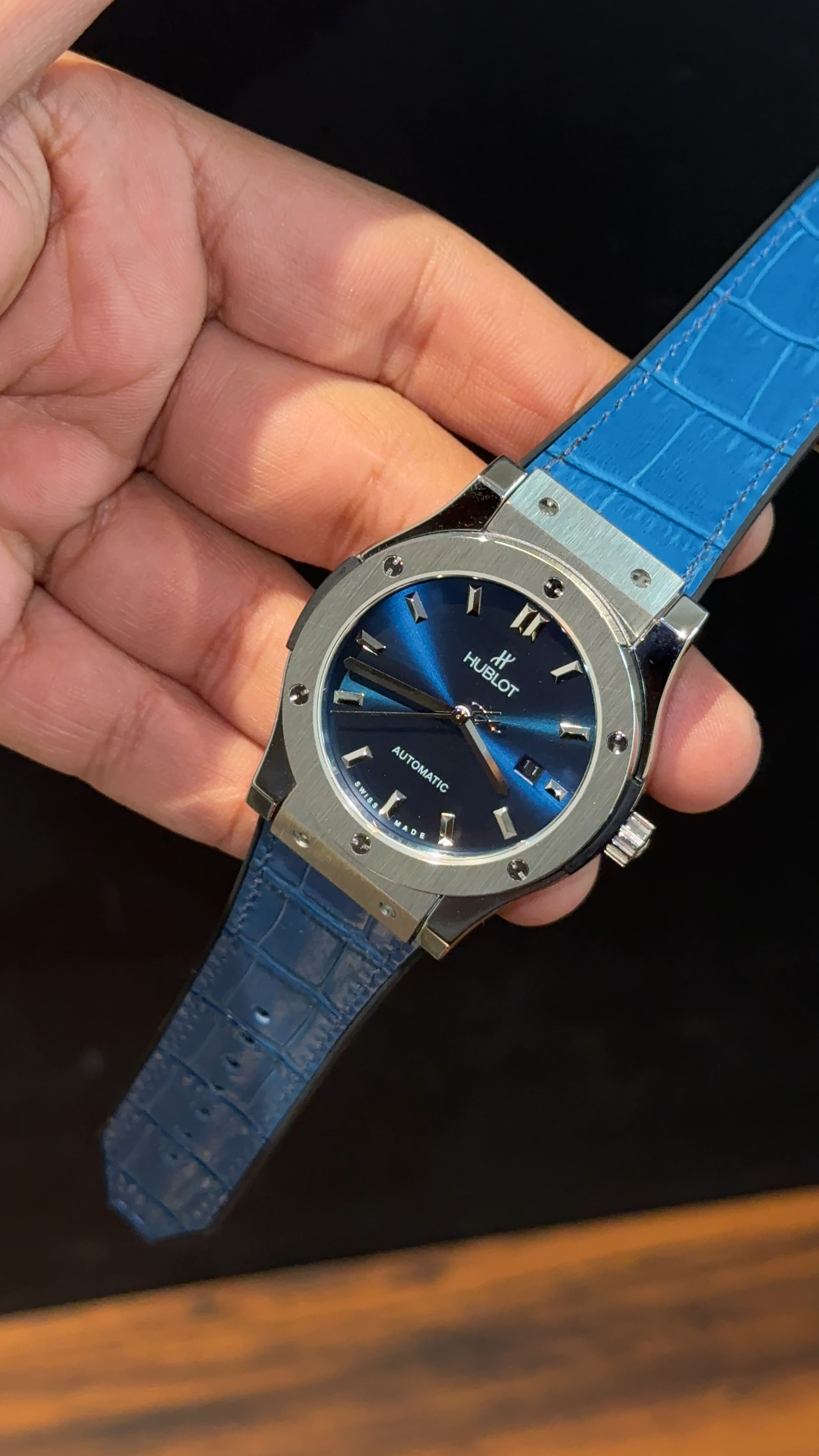 Hublot Auto | Silver Case | Blue Strap | Blueish Dial