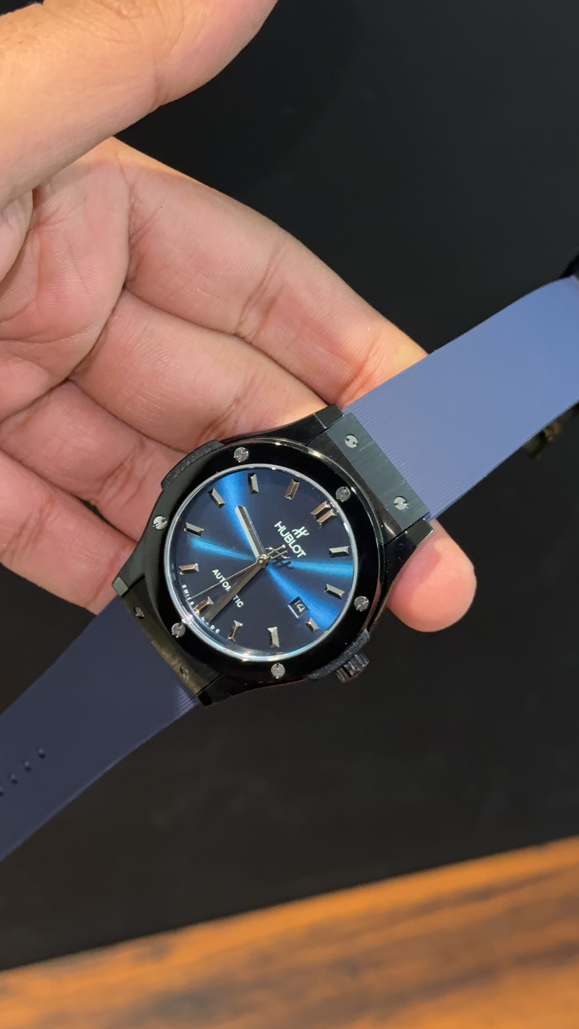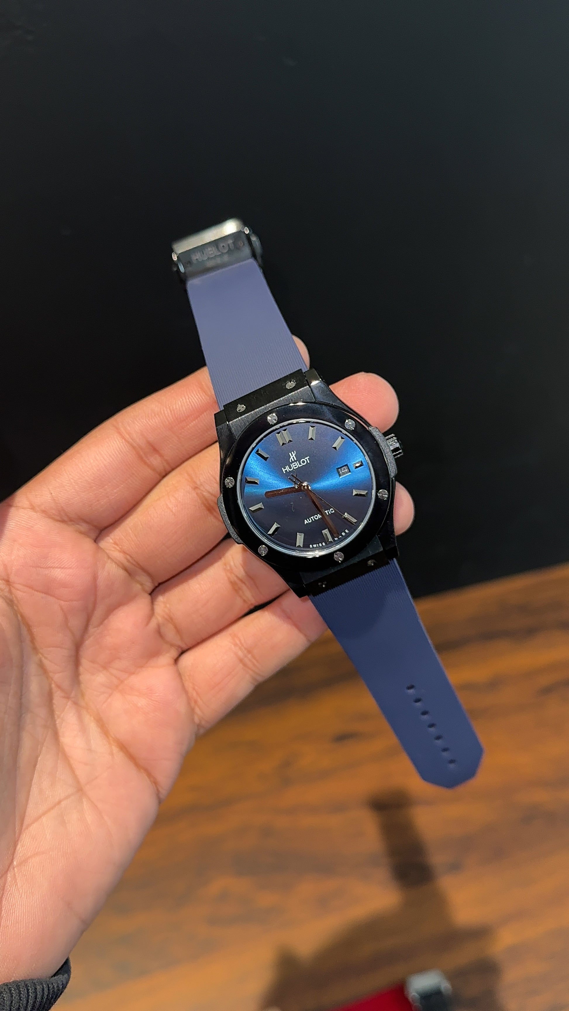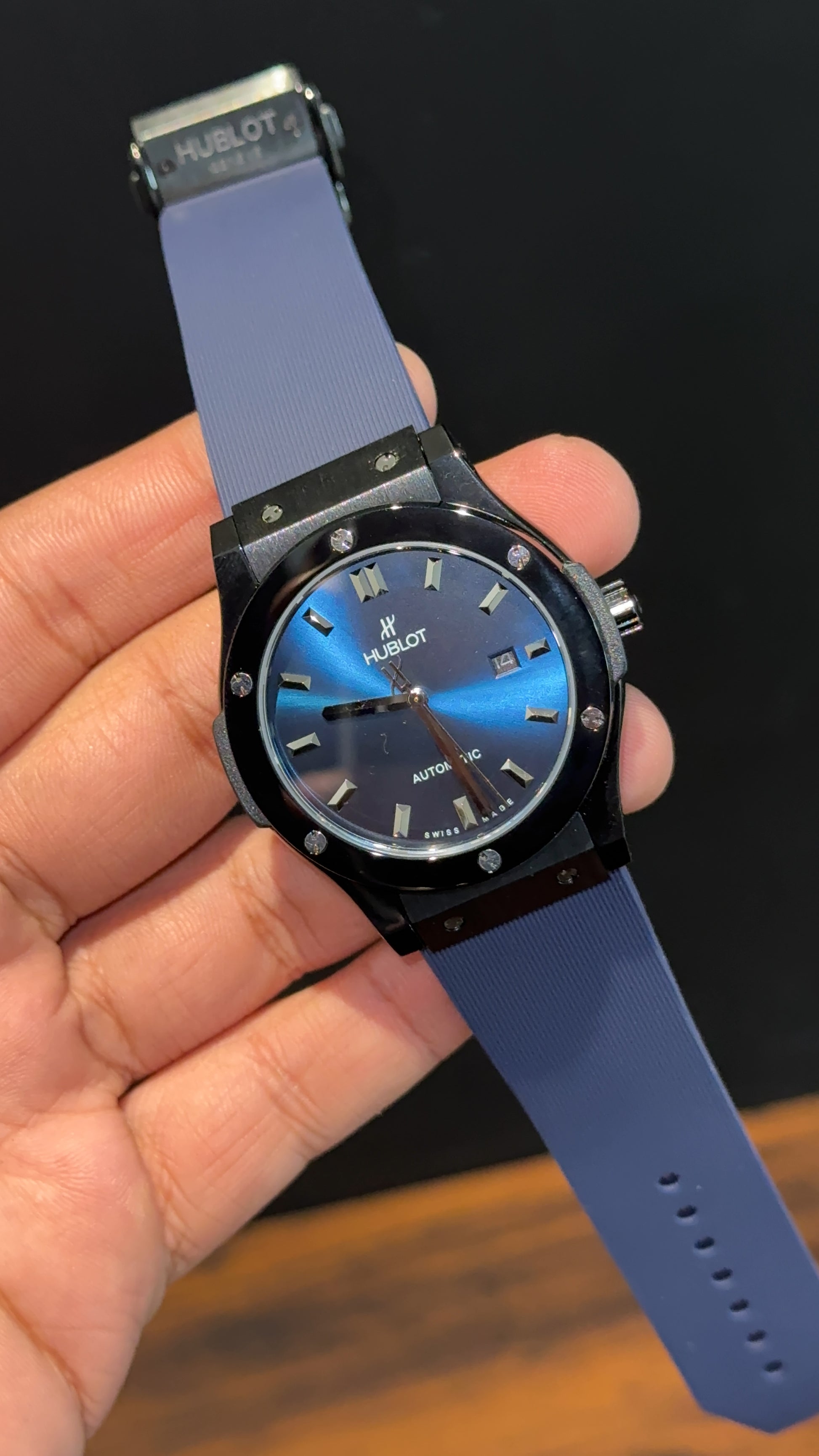 Hublot Auto | Black Case | Blue Strap | Shaddy Blueish Dial