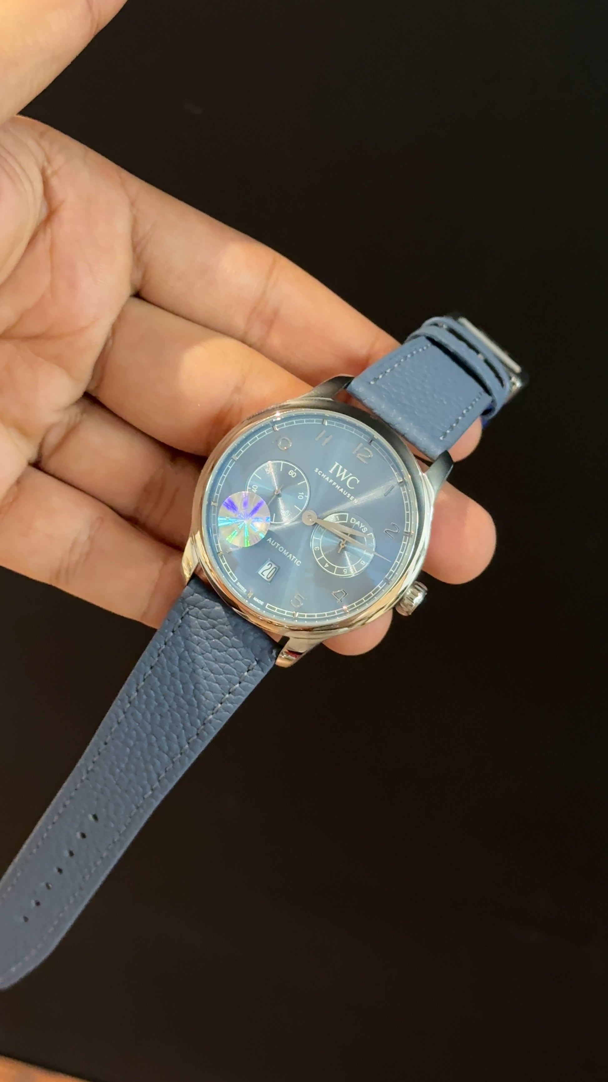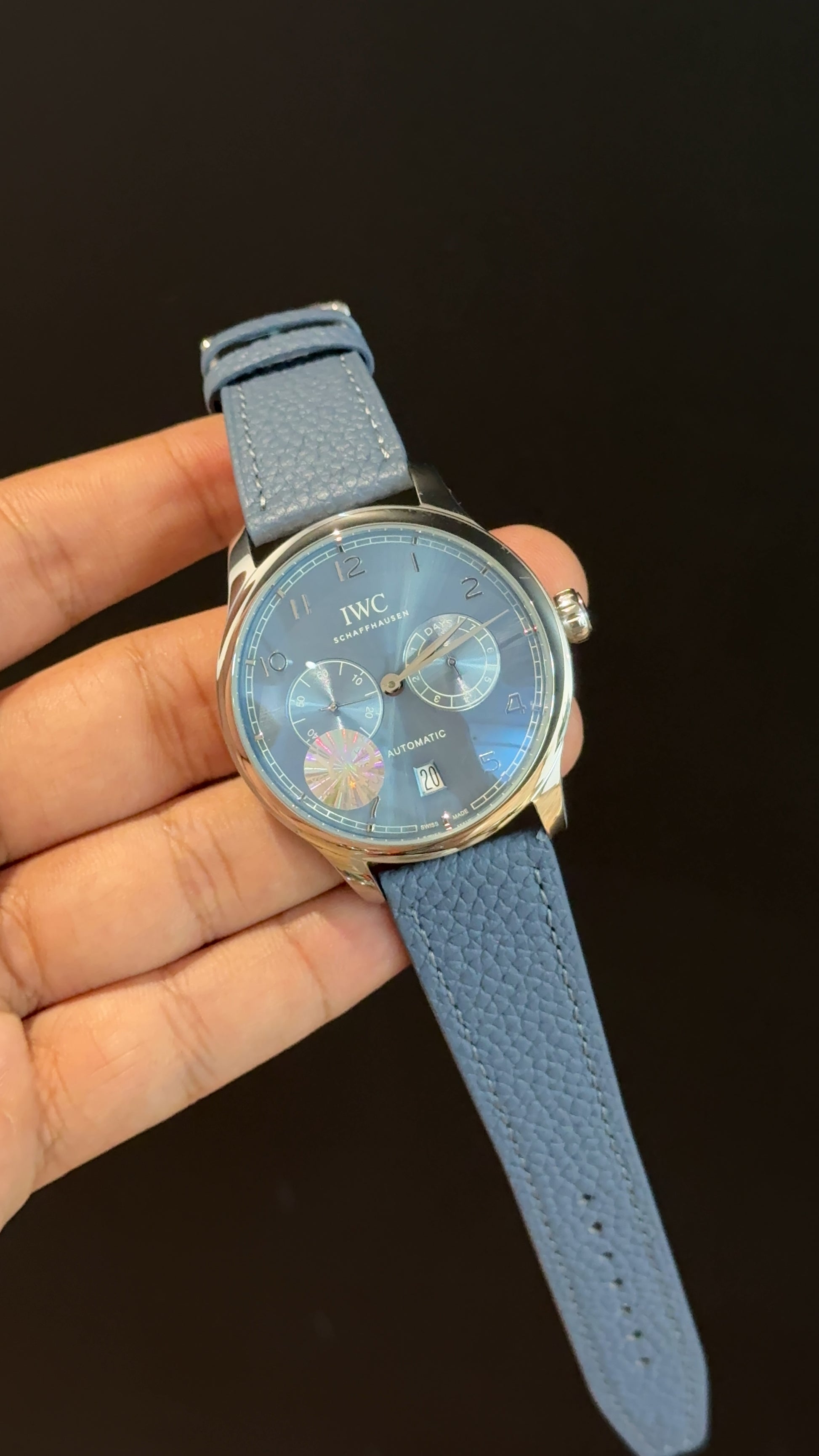 IWC | Denim Blue Strap | Silver Case | Chrono | Denim Blue Dial