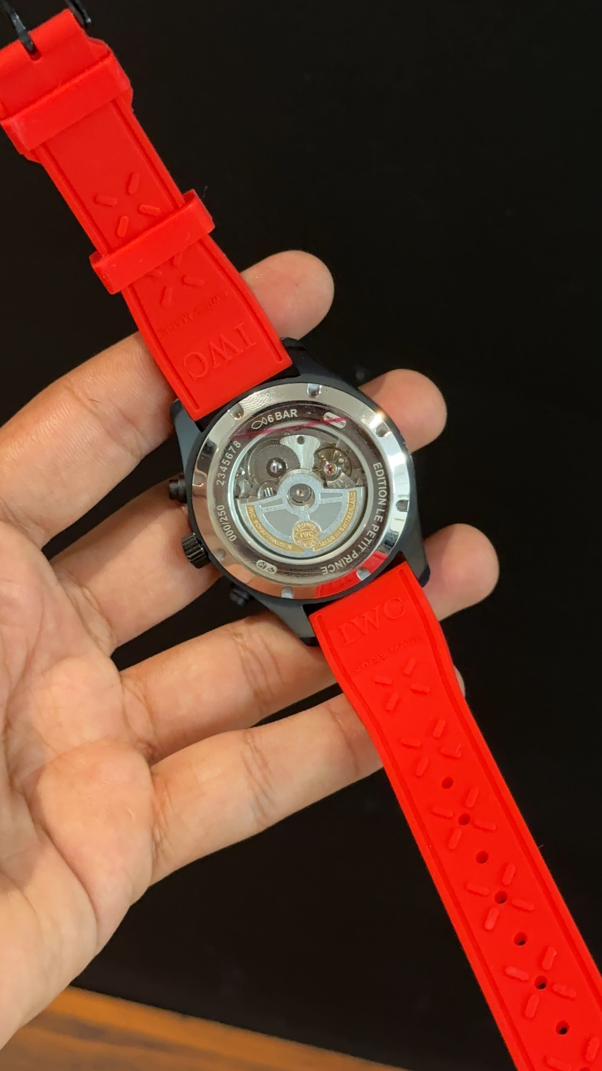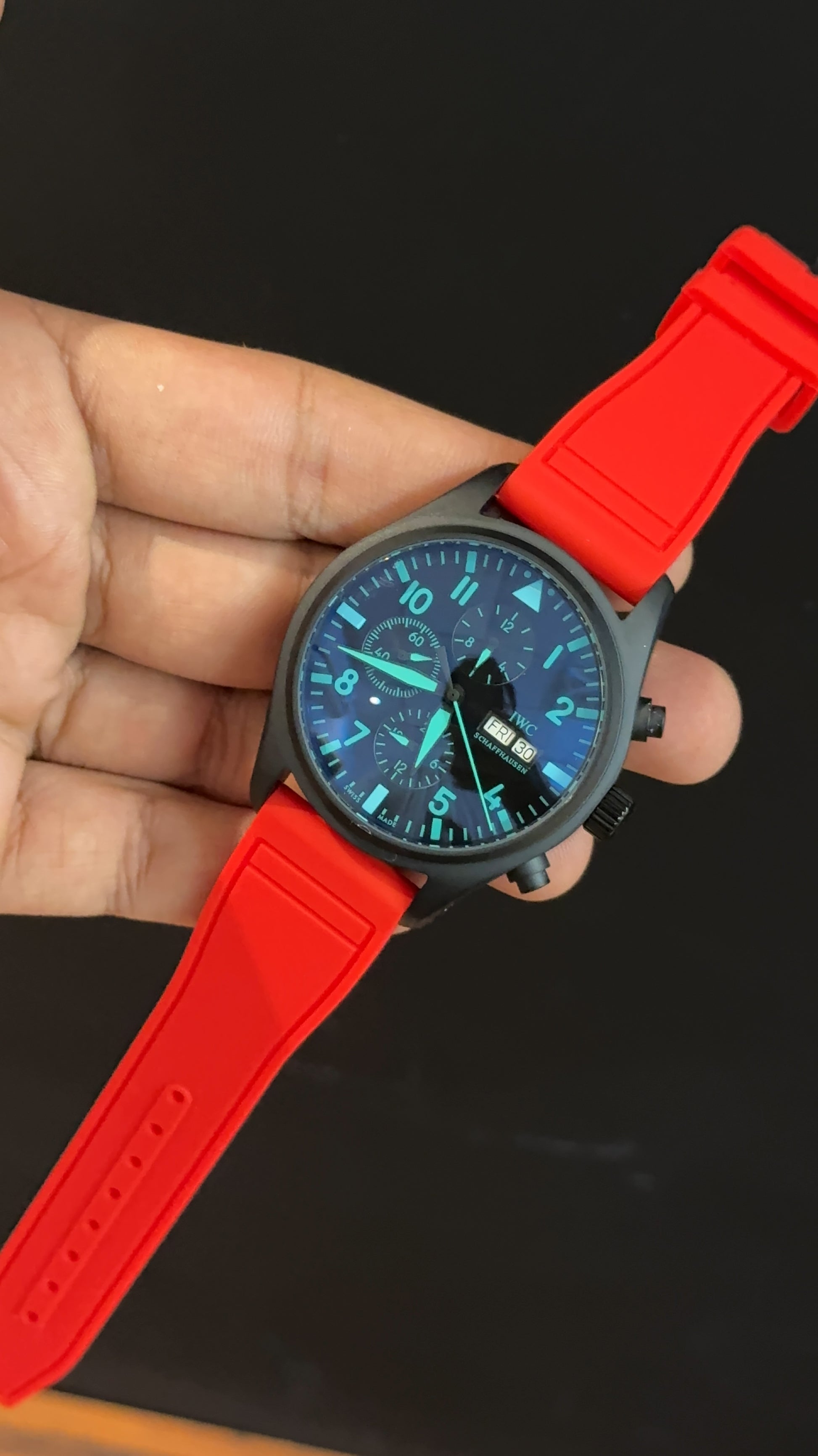 IWC | Red Rubber Strap | Black Case | Chrono | Sky Blue Digits Needle | Black Dial