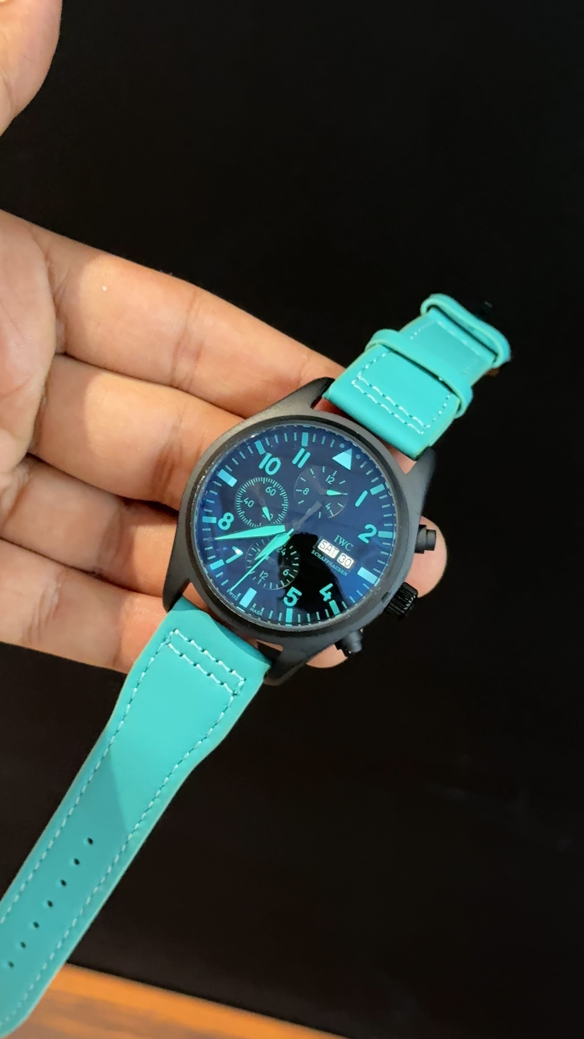 IWC | Tiffany Leather Strap | Black Case | Chrono | Tiffany Digits Needle | Black Dial