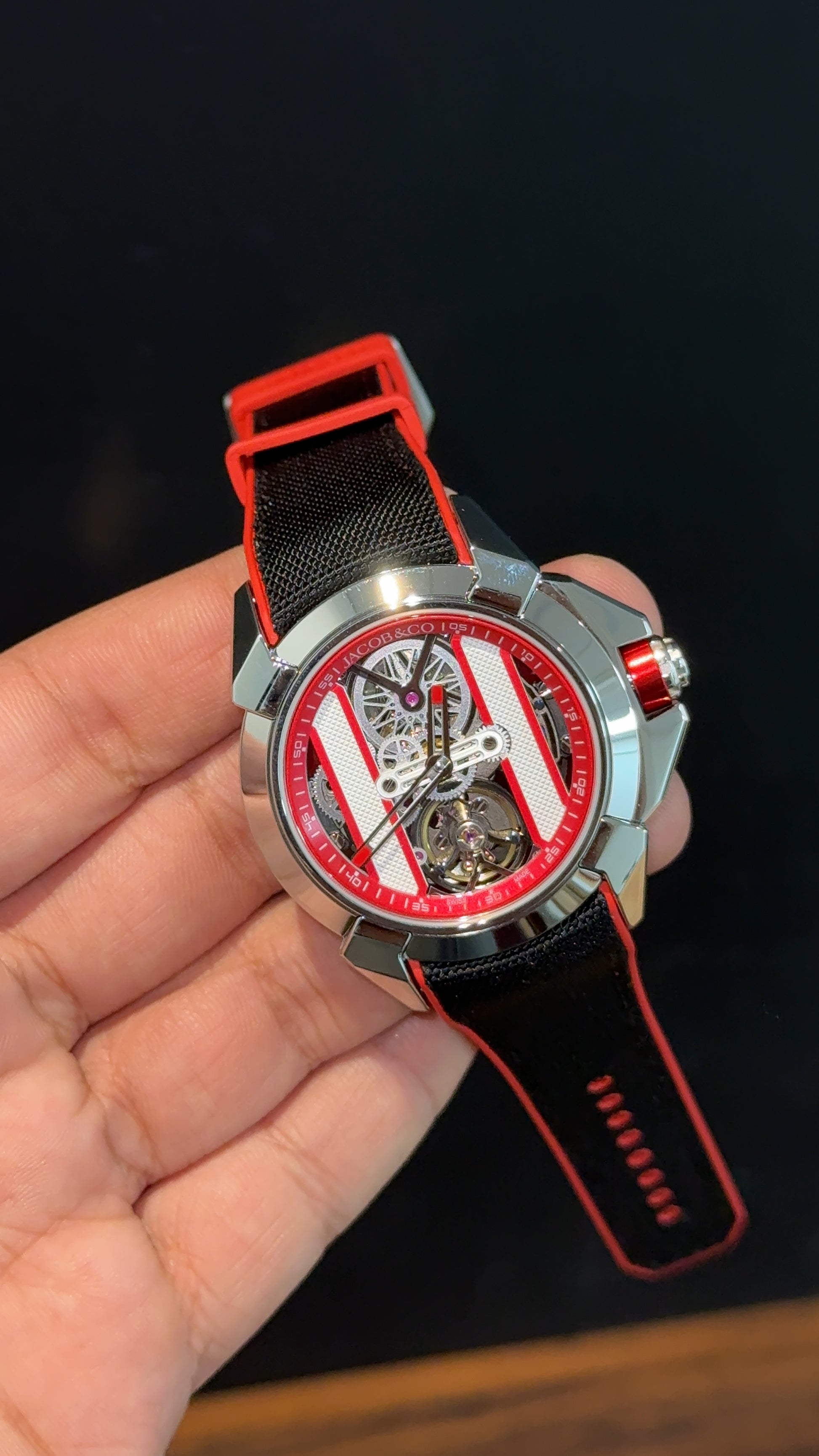 Jacob And Co | Silver Case | CR7 Edition | Red Black Strap | X Pendulum Machine | Red Dial