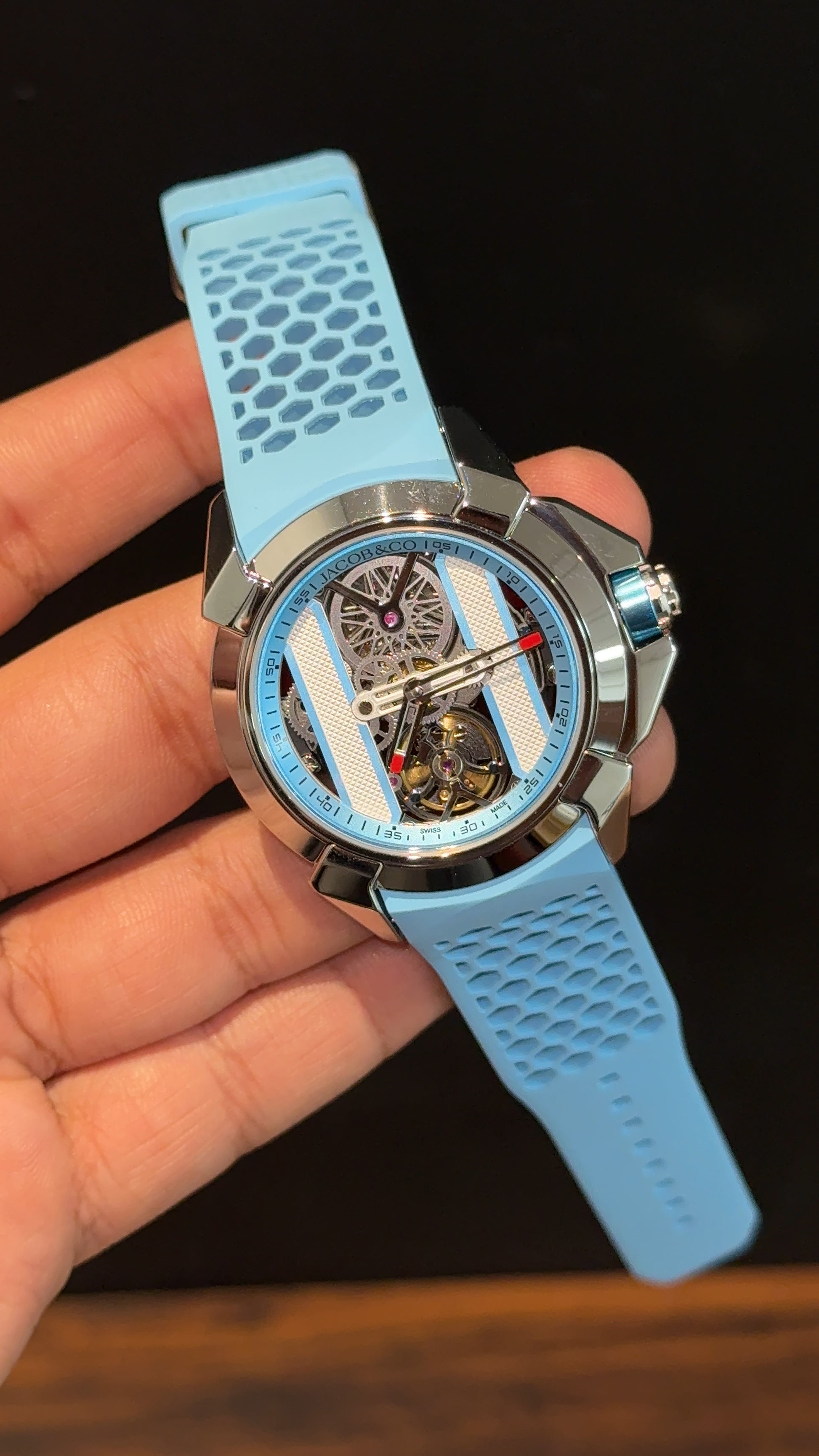 Jacob And Co | Silver Case | CR7 Edition | Sky Blue Strap | Pendulum | Sky Blue Machine Dial