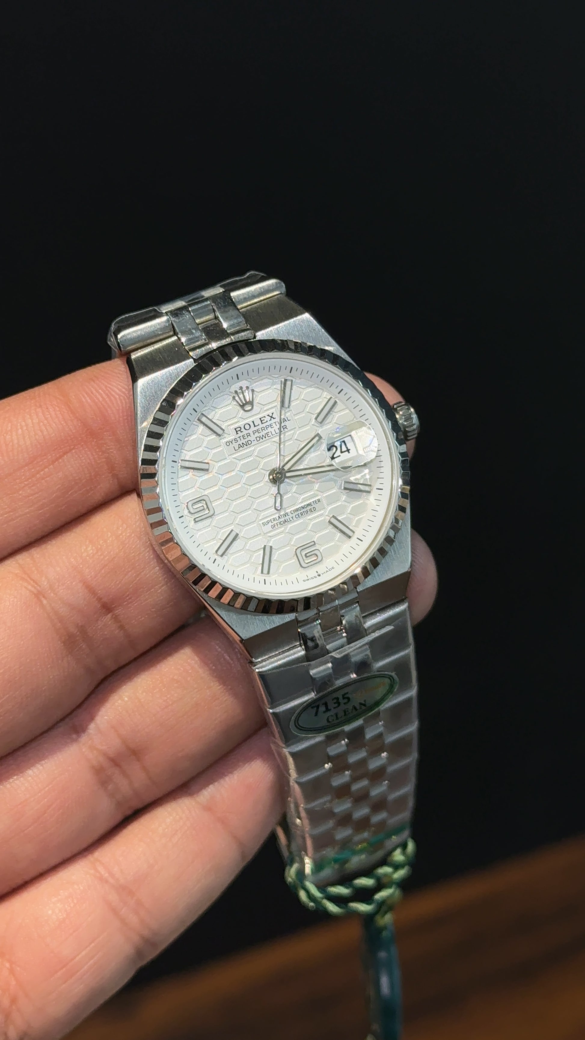 Premium Land Dweller | 36mm | Silver Chain | White Textured Dial