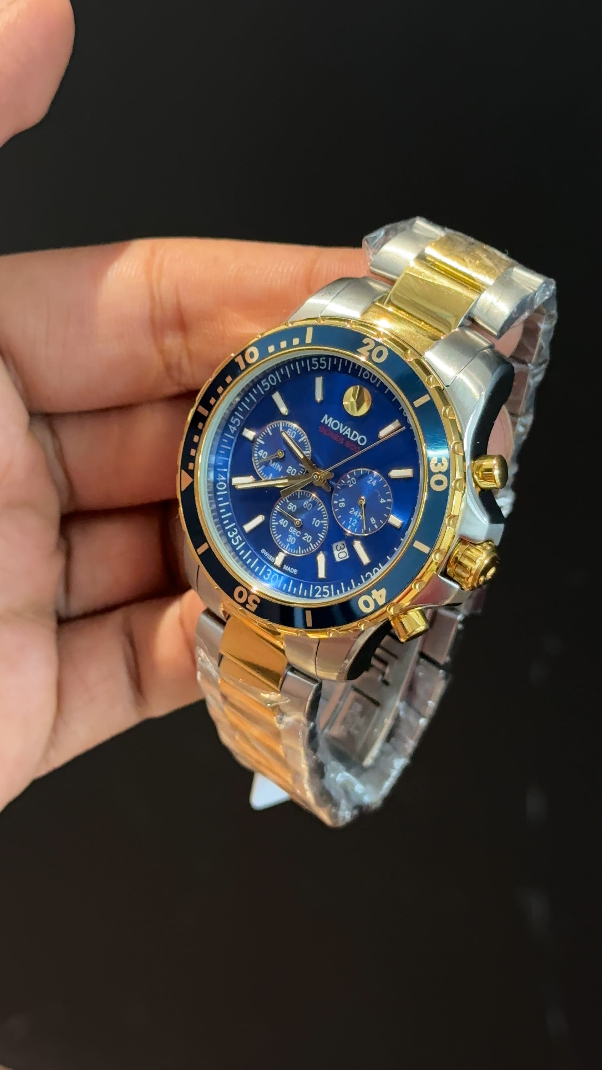 Movado | Gold Two Tone | Blue Bezel | Chrono | Blue Dial