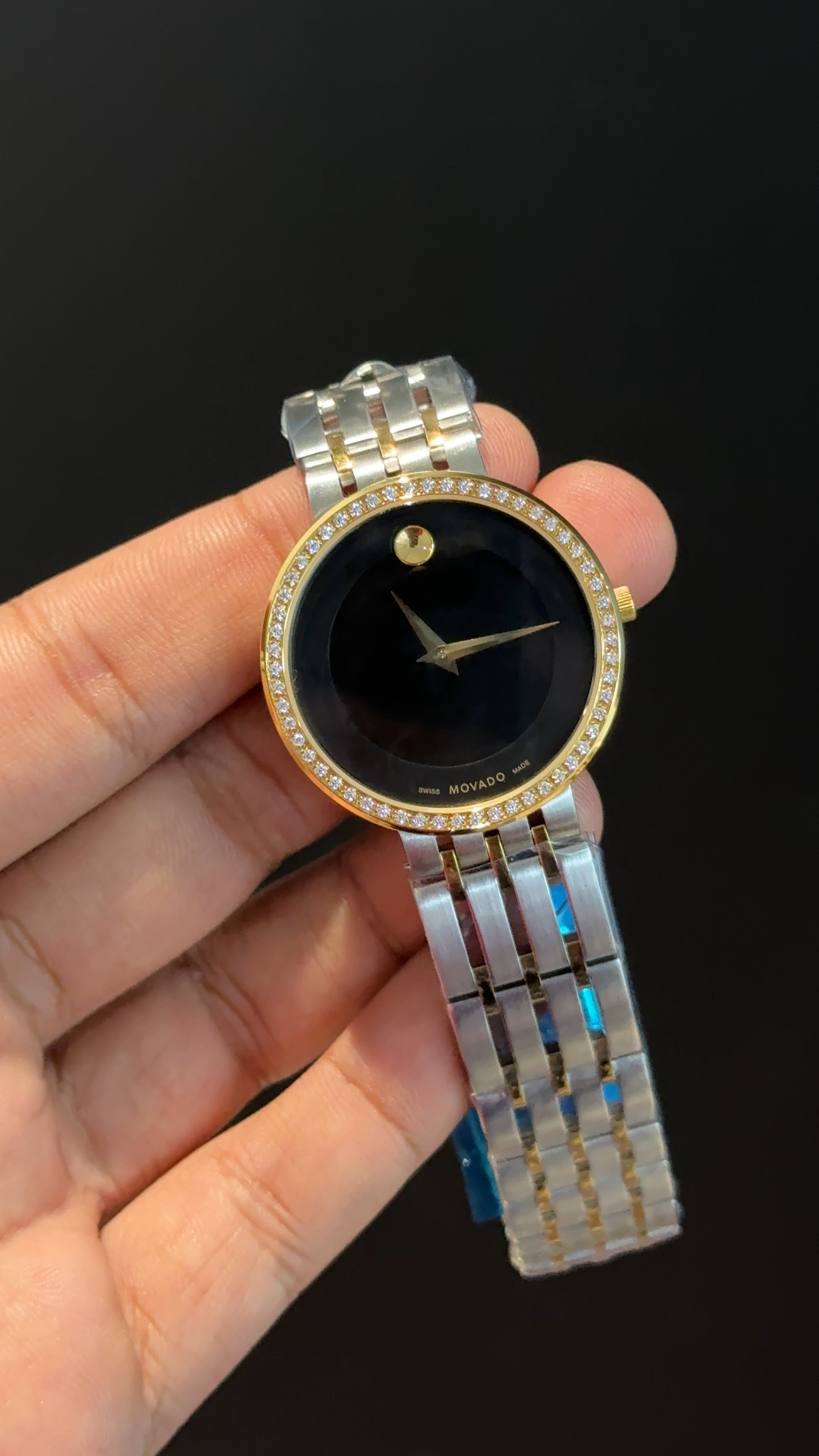 Movado | Woman | Gold Two Tone | Diamond Bezep | Black Dial