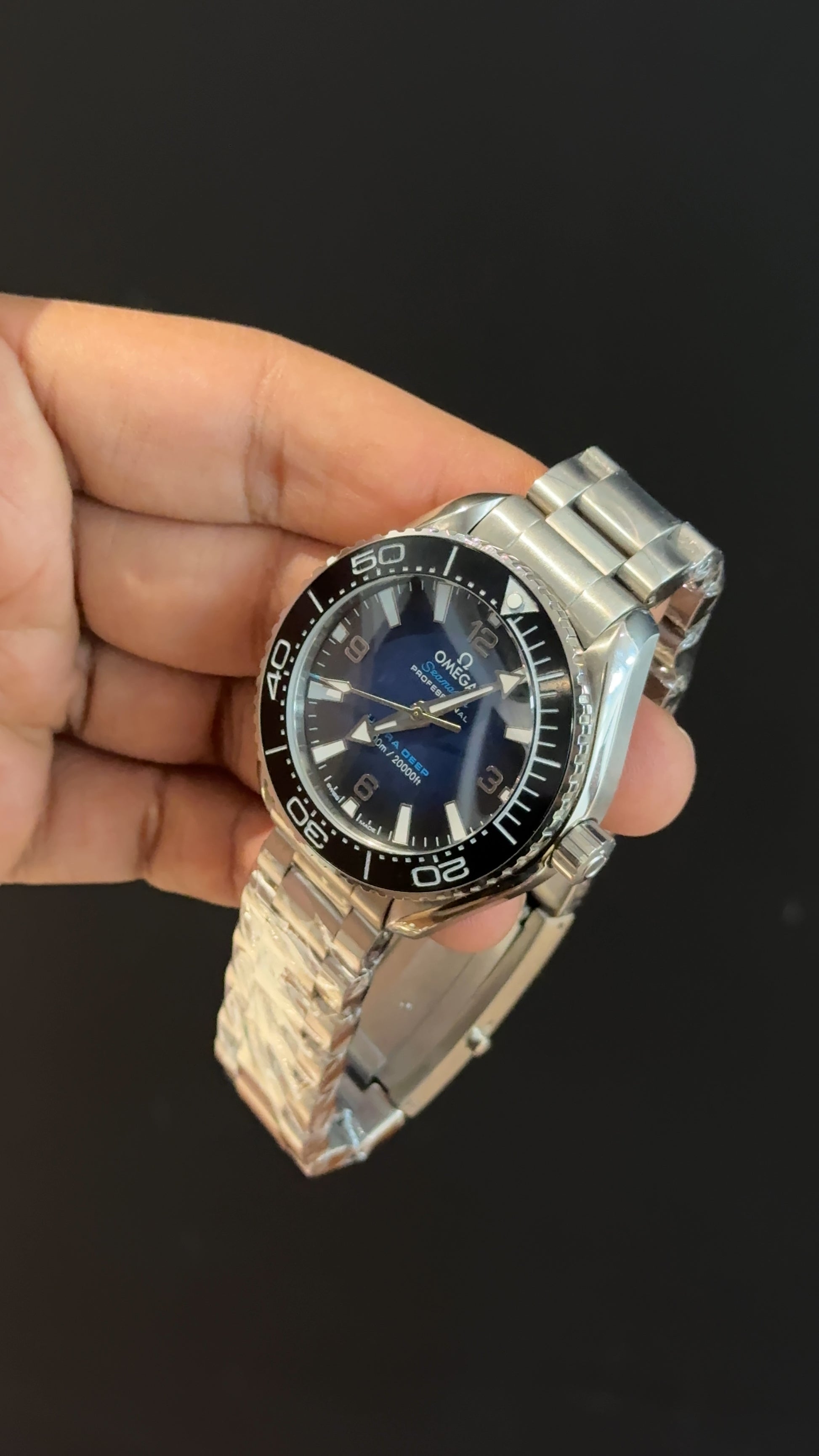 Omega Seamaster | Silver Chain | Black Bezel | Gradient Blue Dial