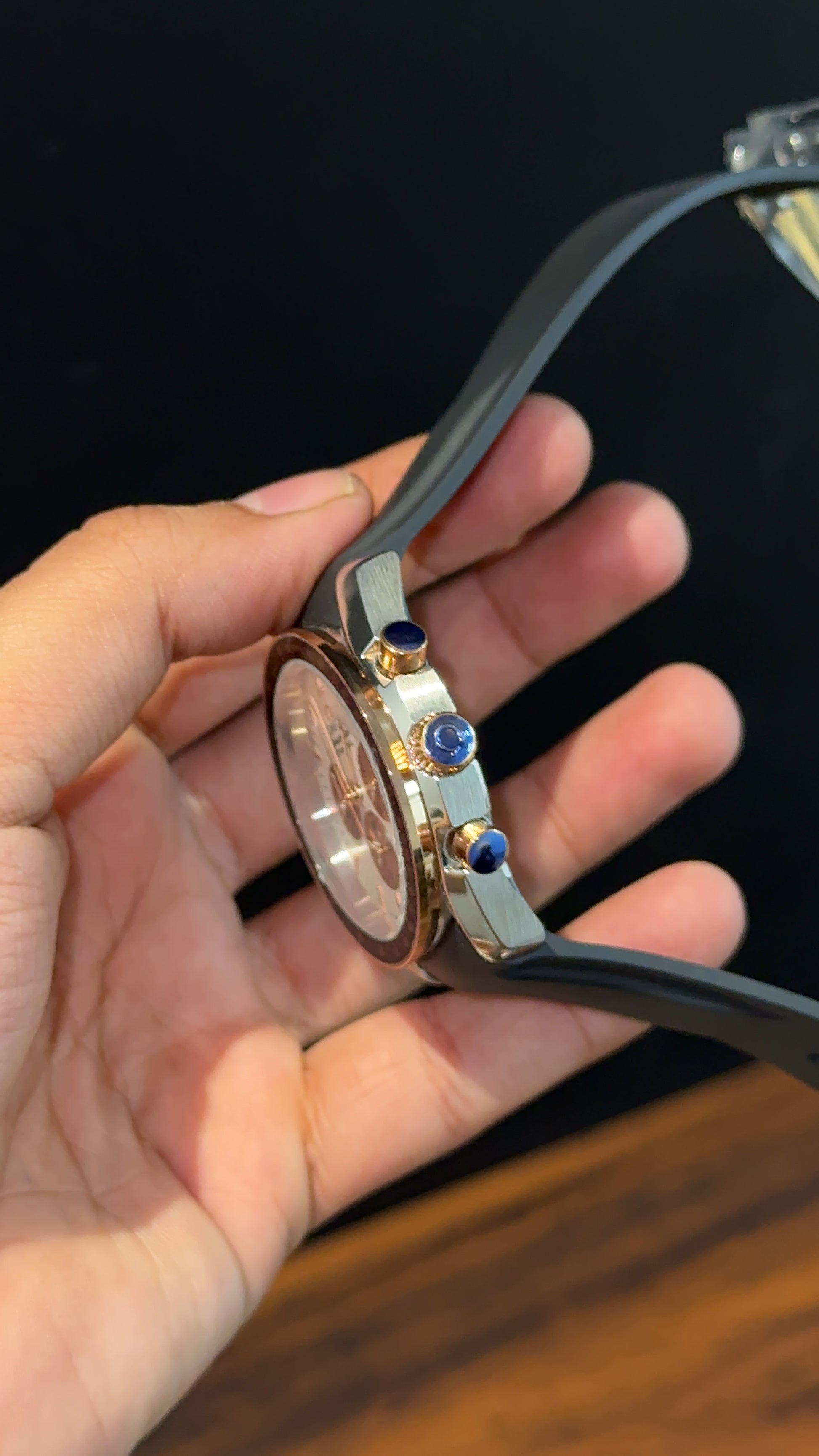 Omega Speedmaster | black Strap | Silver Rose Case | Rose Chrono | White Dial