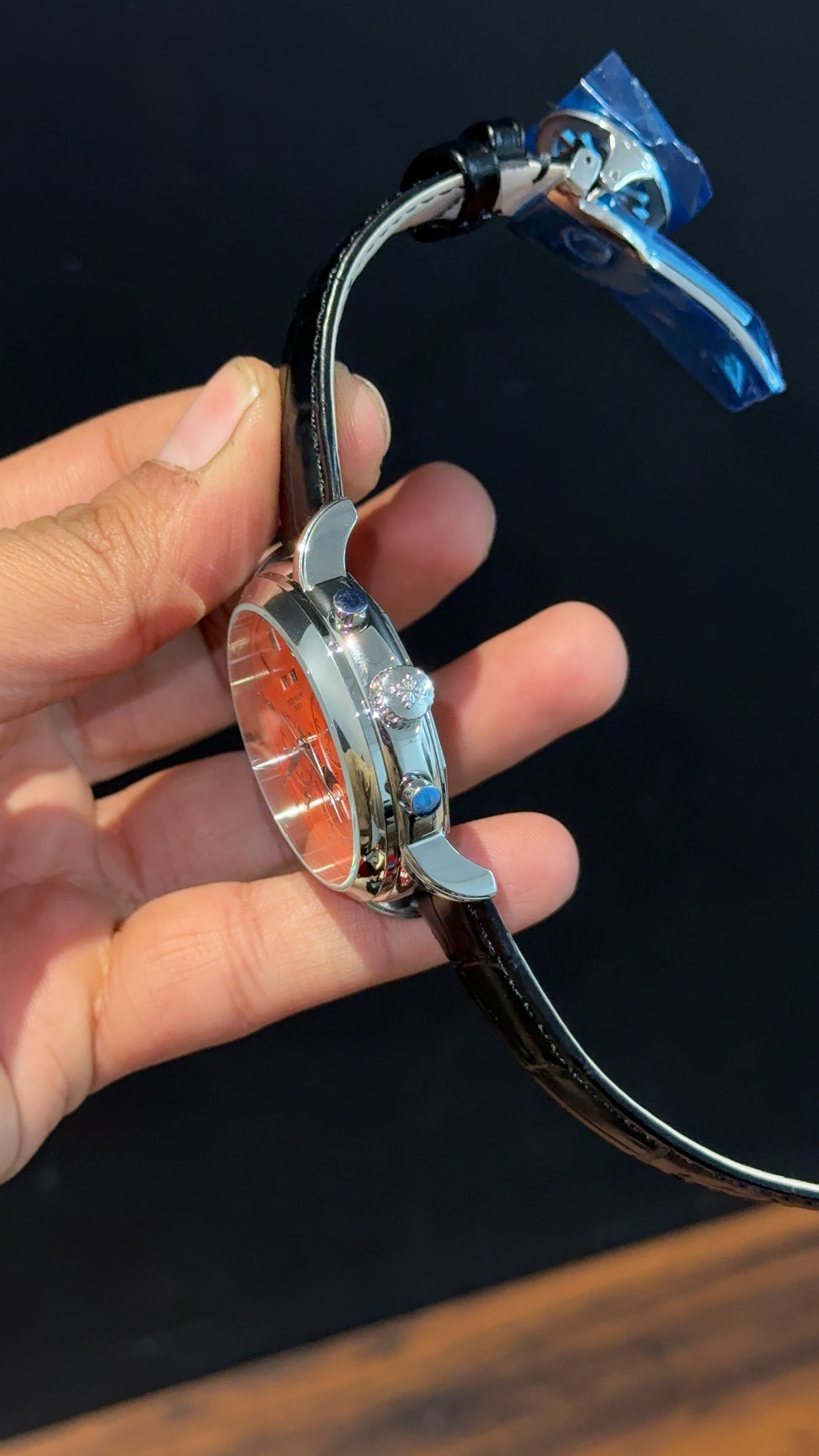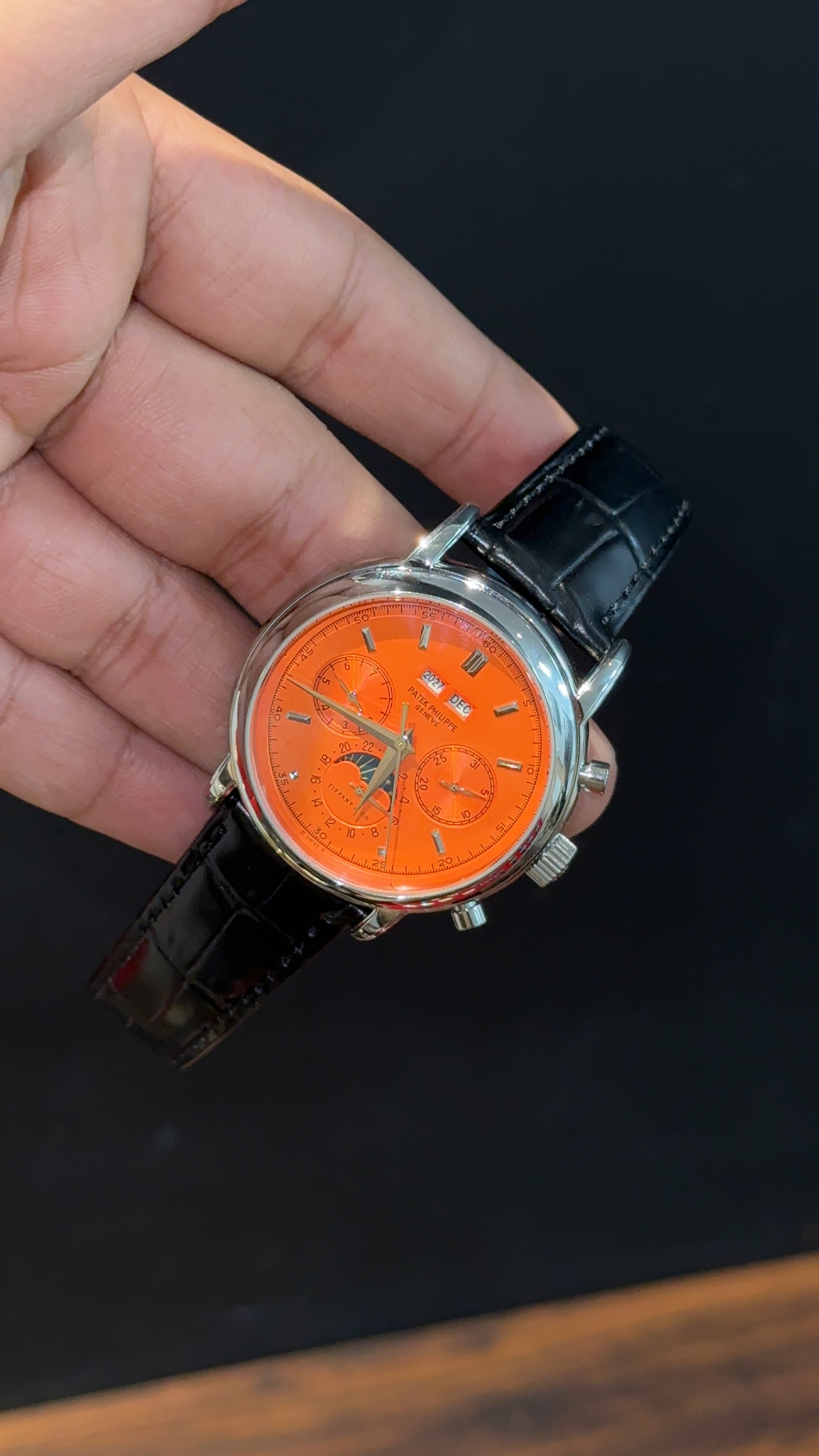 Patek Century | Auto | Silver Case | Orange Dial | Black Leather Strap
