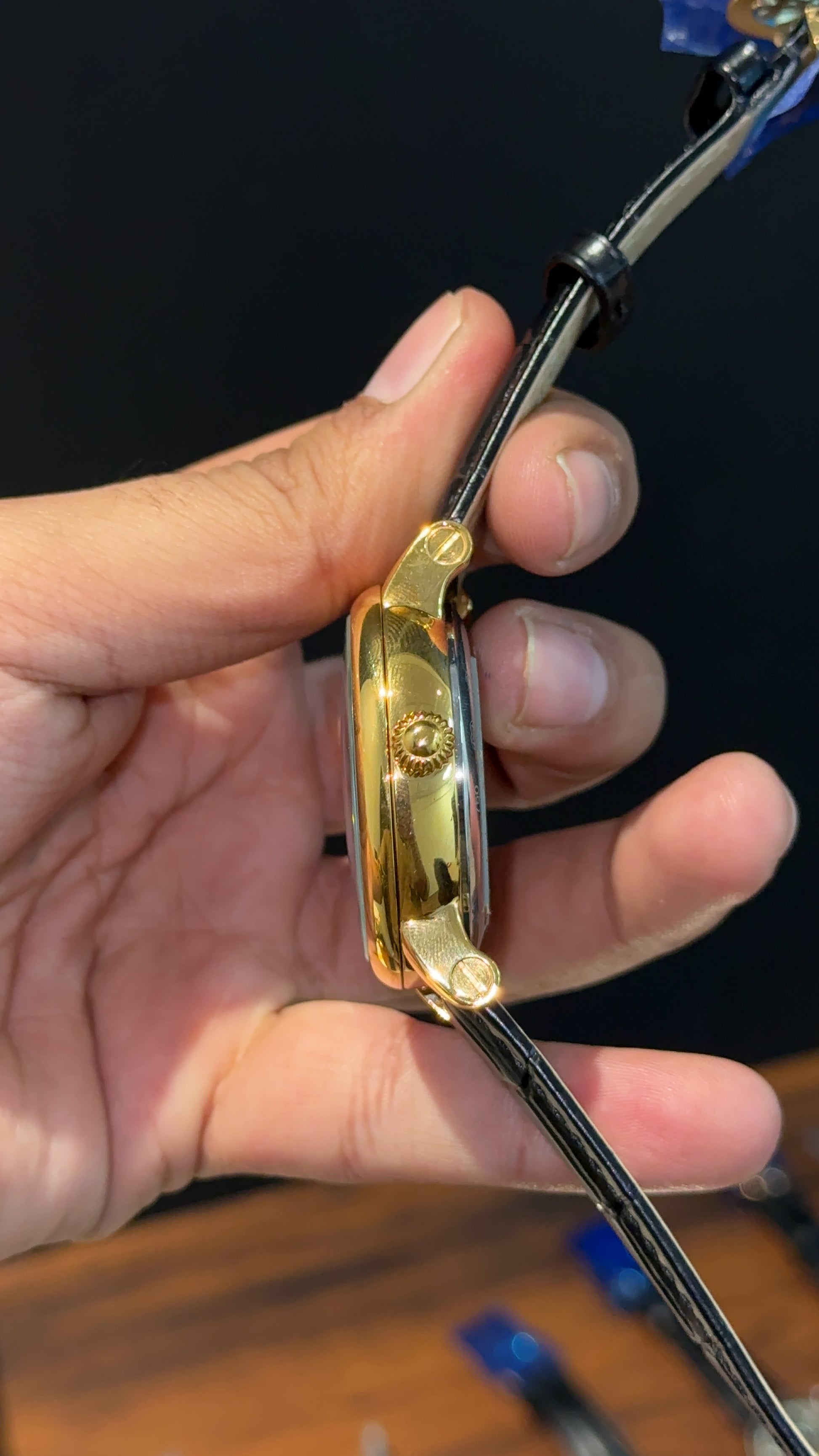 Patek Gold | Moonphase | Pendulum | Second Timer | Black Leather Strap | Grey Machine | Black Outline Dial