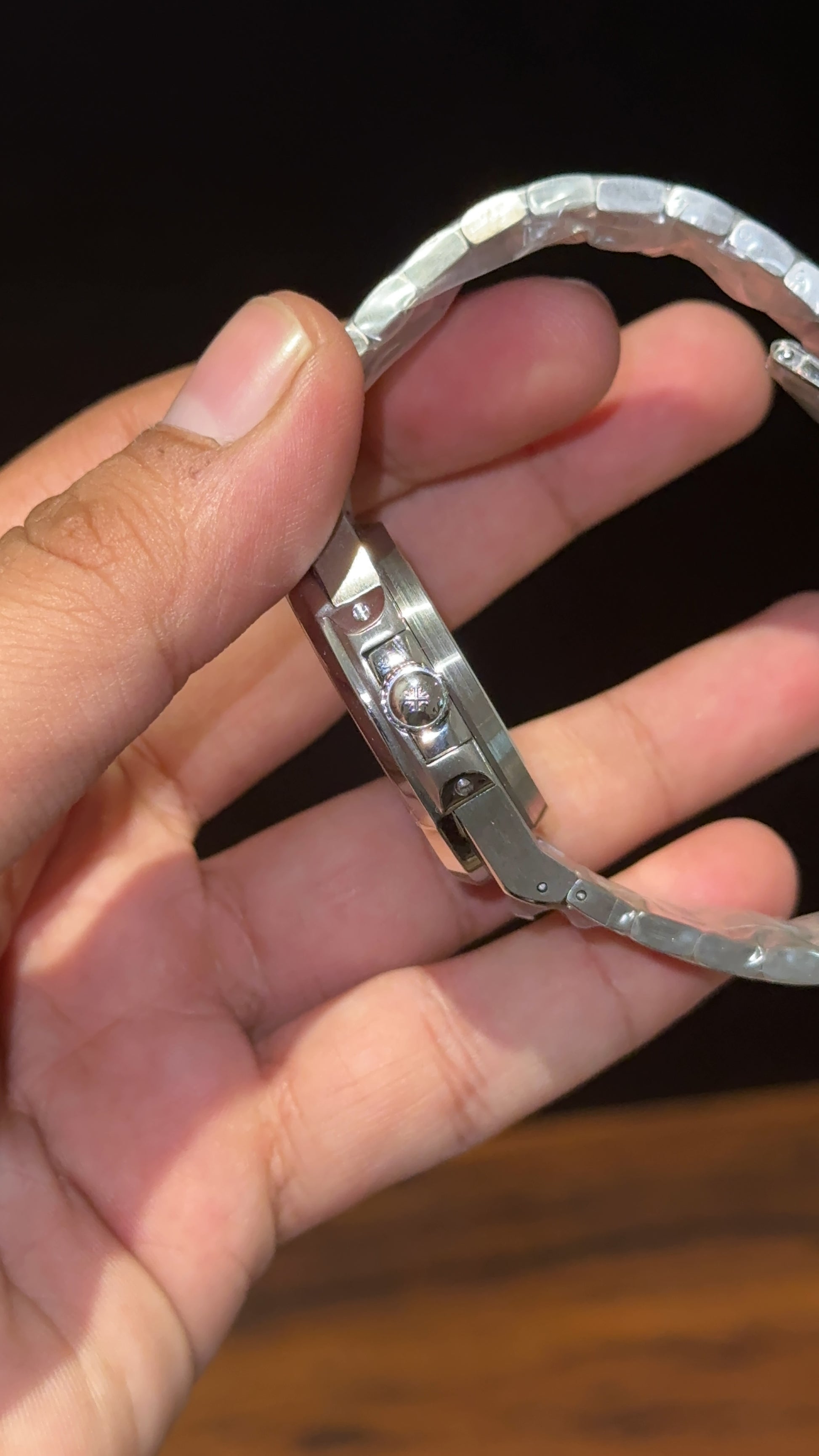 Pp Auto | Silver Chain | Blue Diamond Bezel | Blue Digits | Black Dial