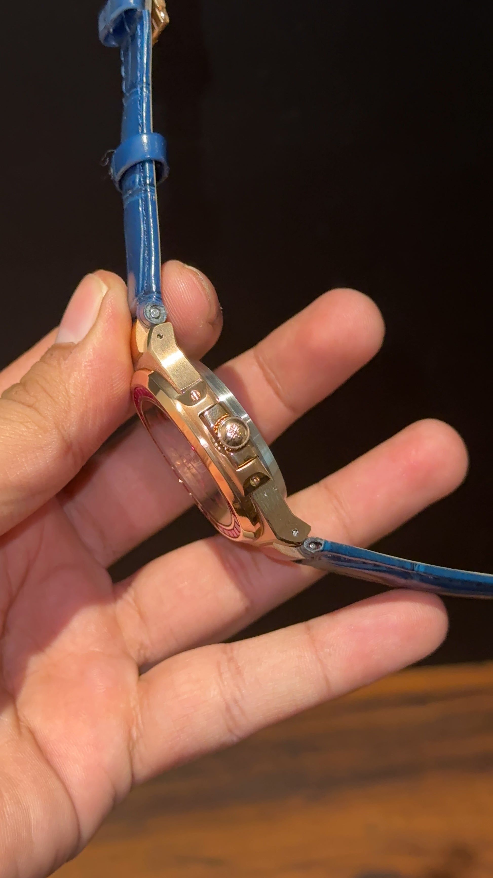 Pp Rose | Auto | Pink Diamond Bezel | Blue Leather Strap | Blue Dial | Pink Digits