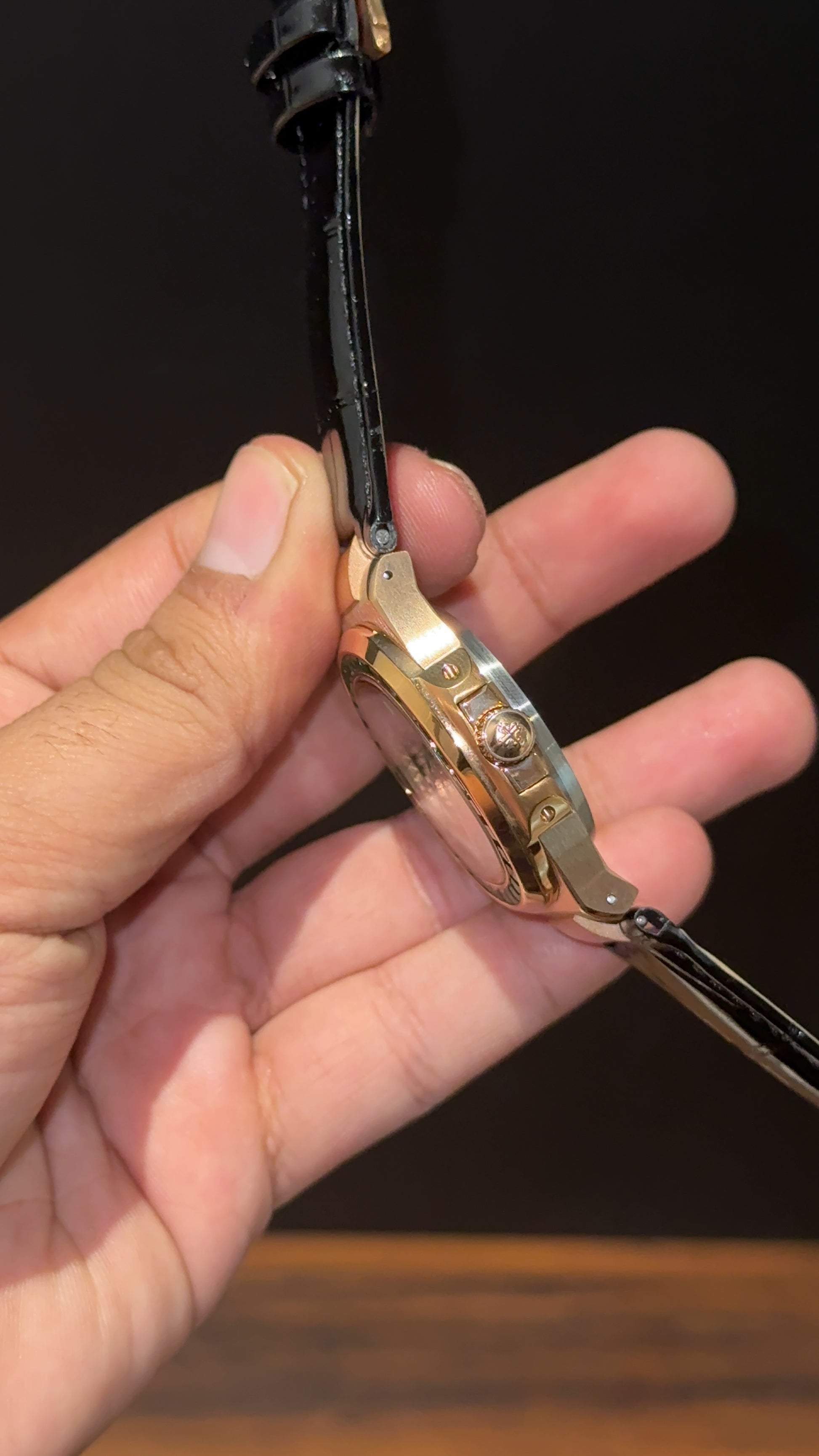Pp Rose | Auto | Green Diamond Bezel | Black Leather Strap | Black Dial | Green Digits
