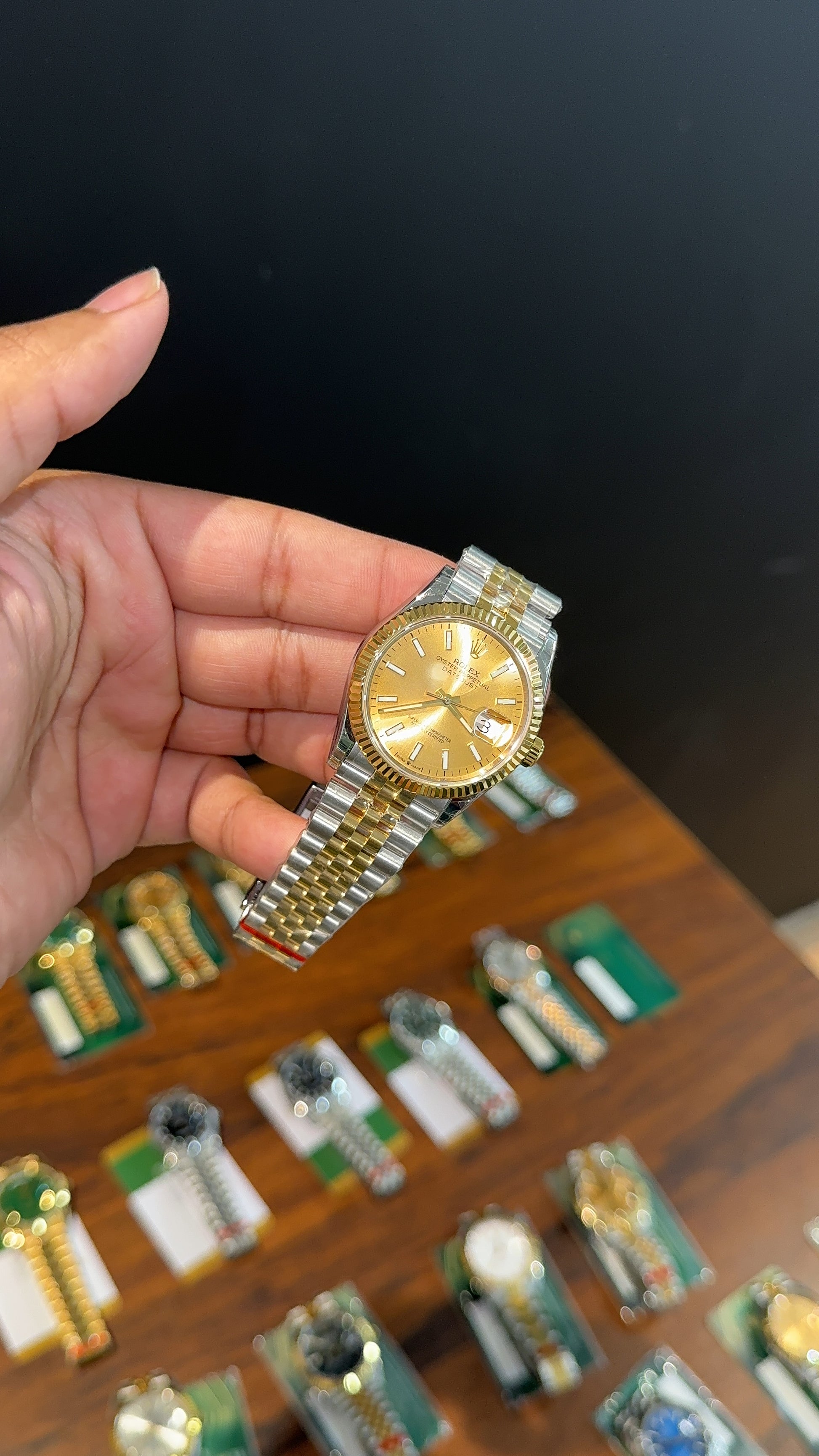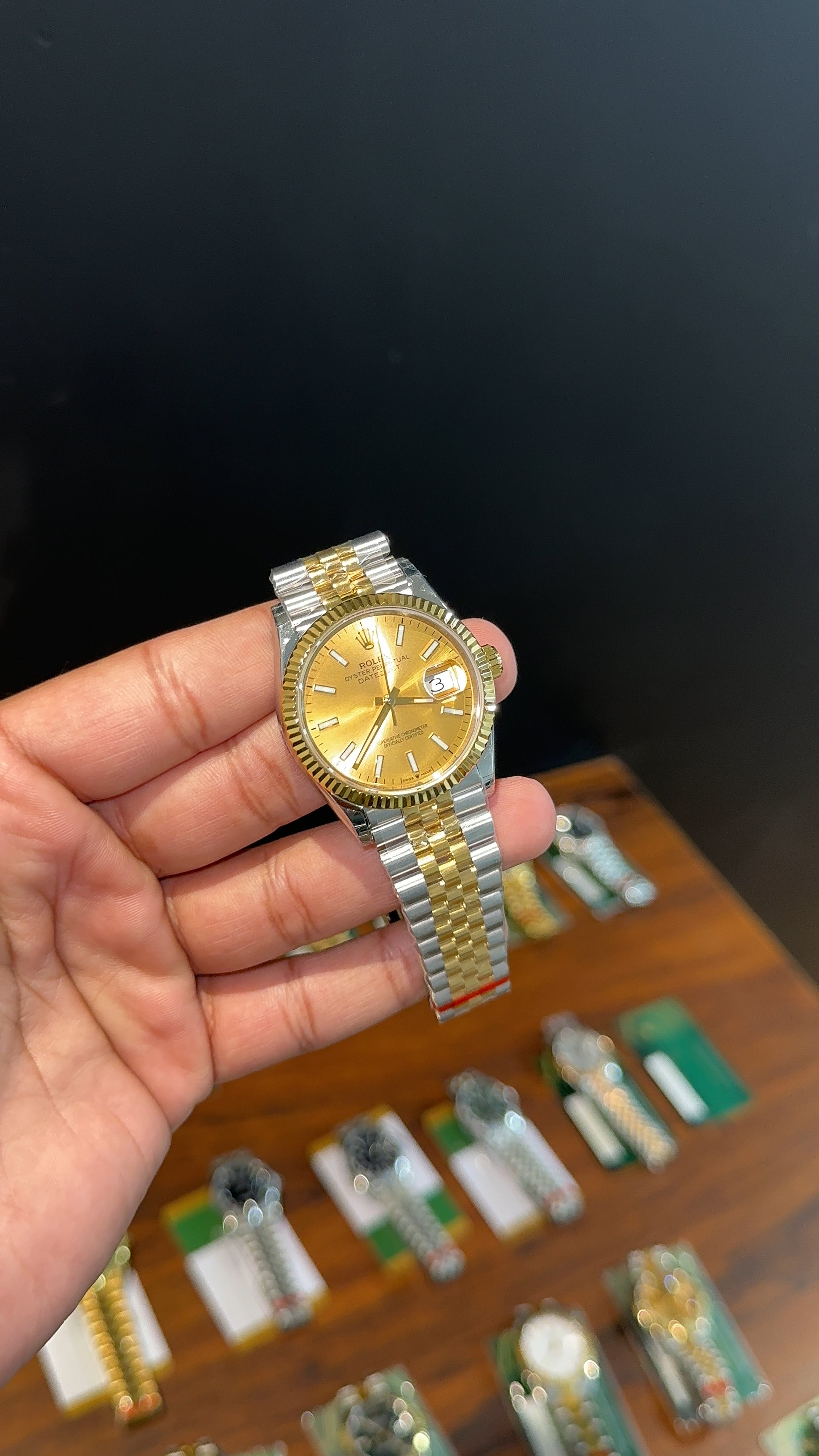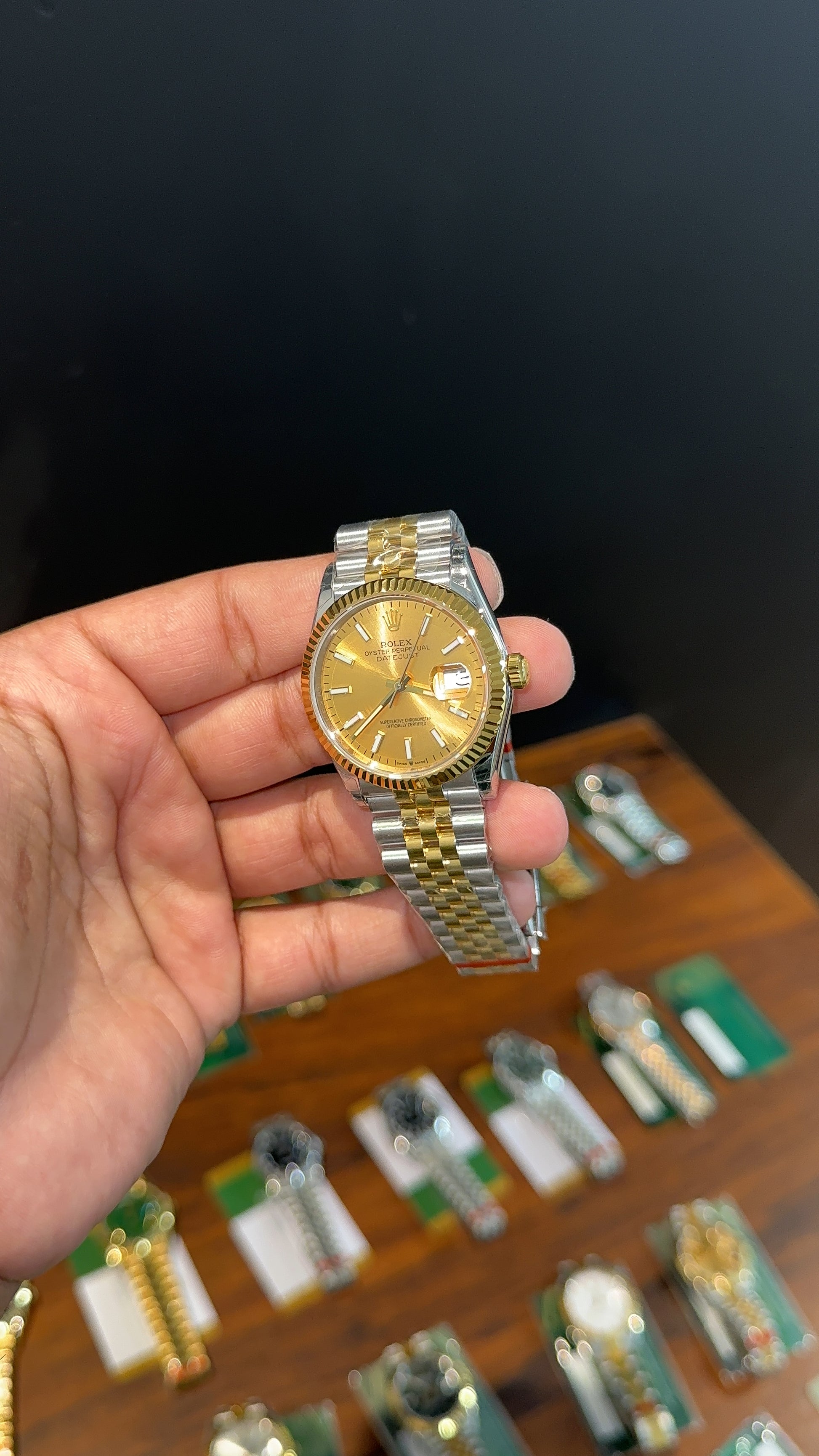 Premium Datejust | 36mm | Gold Two Tone Chain | Gold Dial