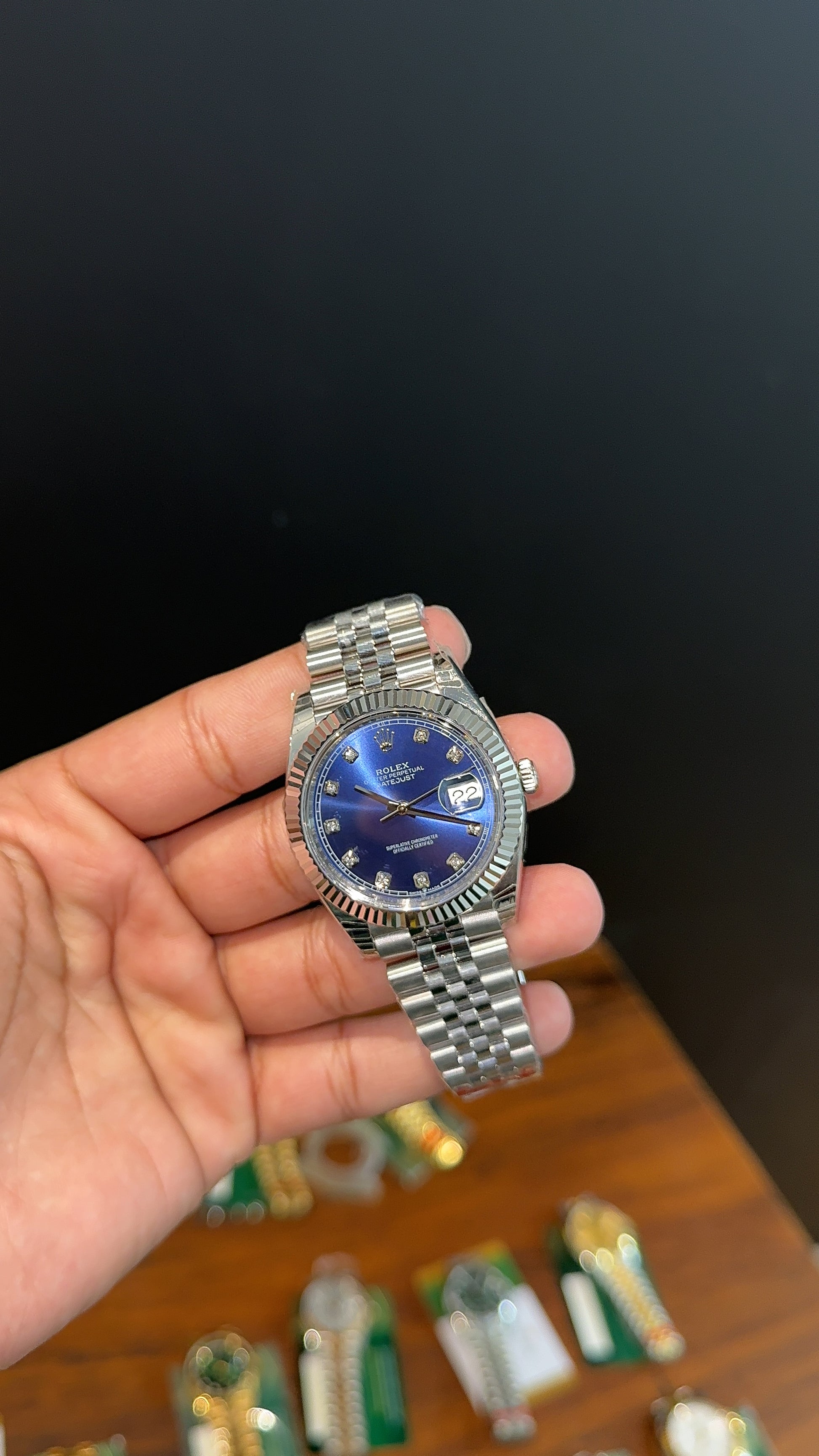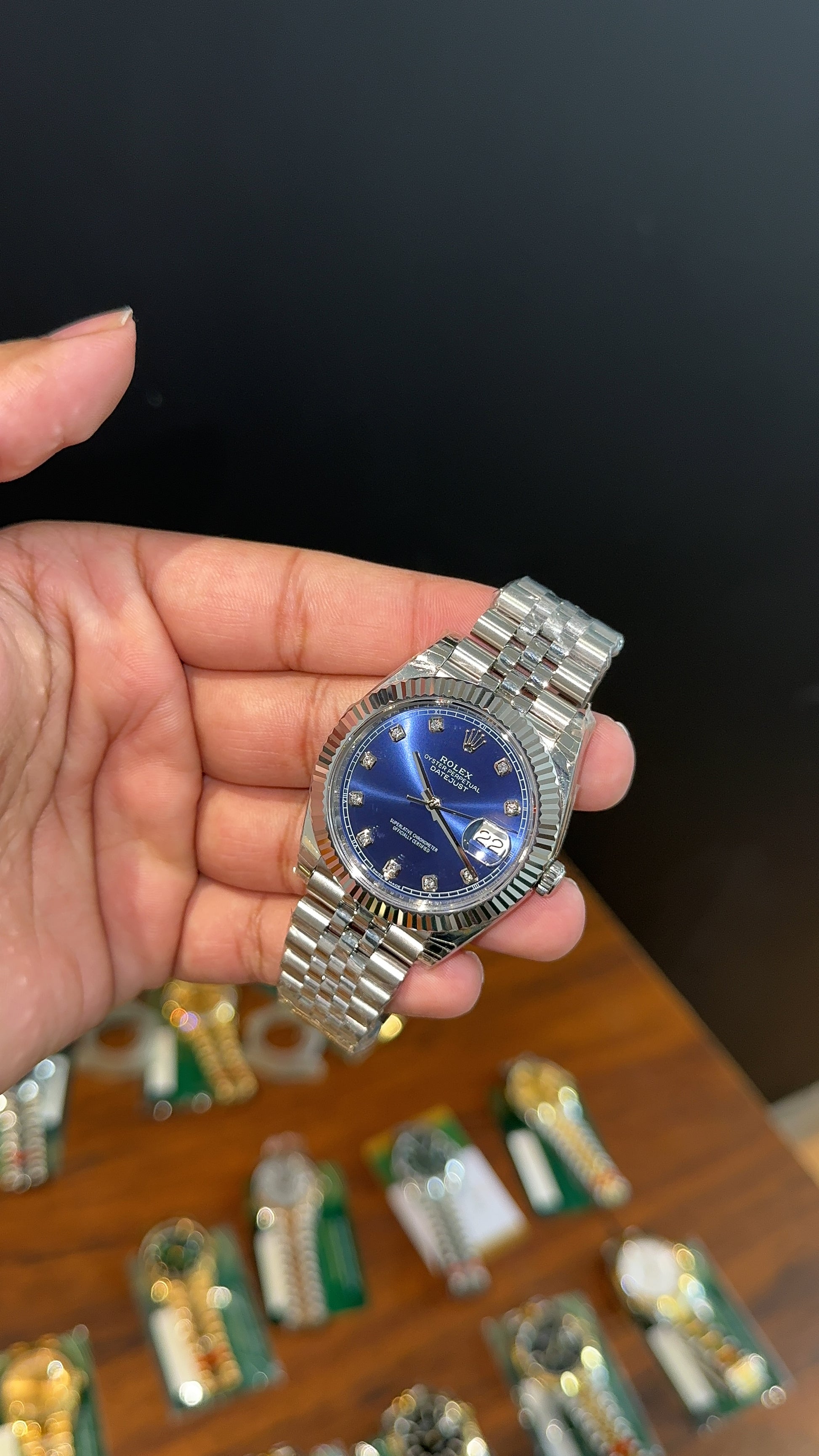 Premium Datejust | 40mm | Silver Chain | Blue Diamond Dial