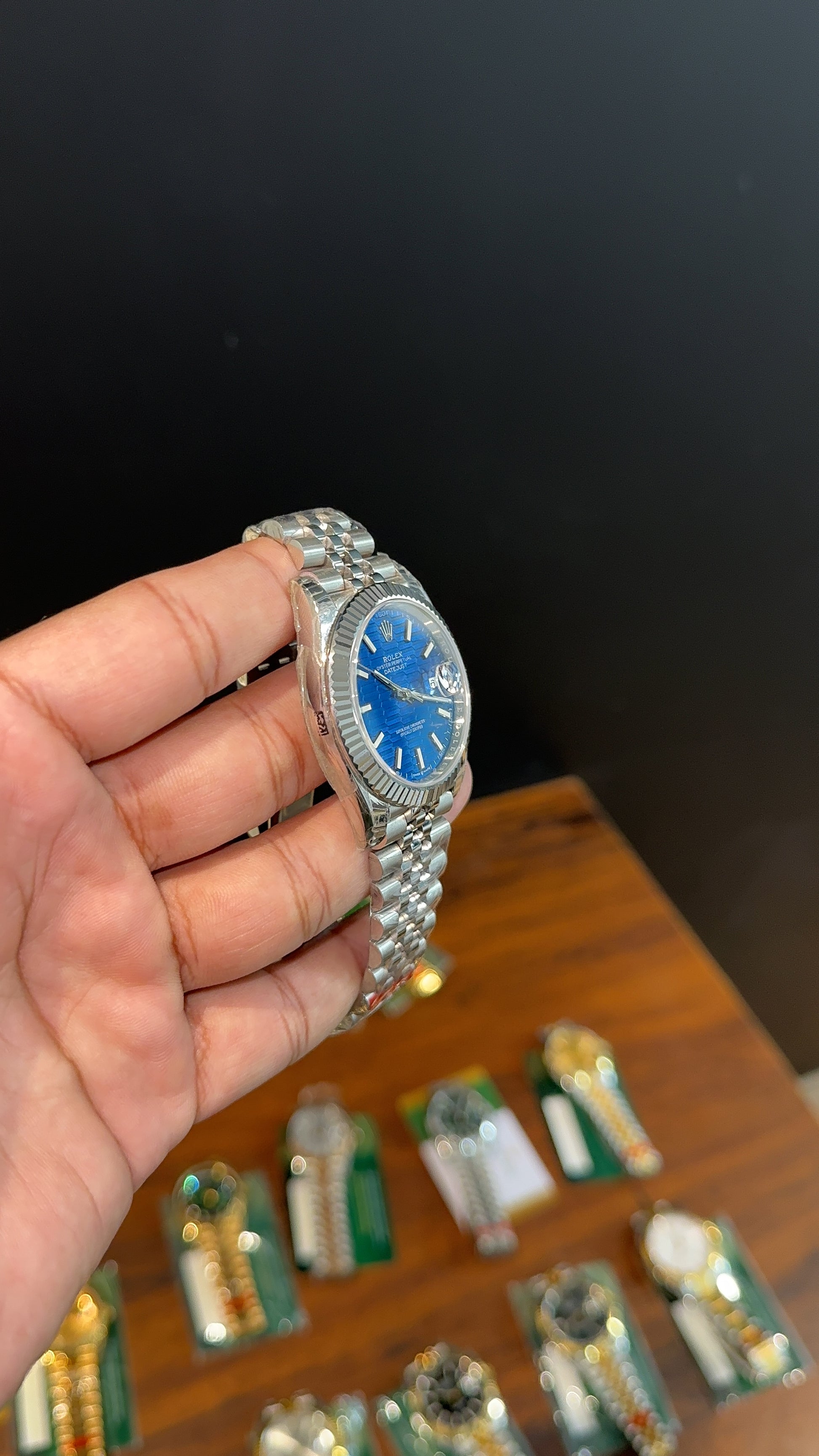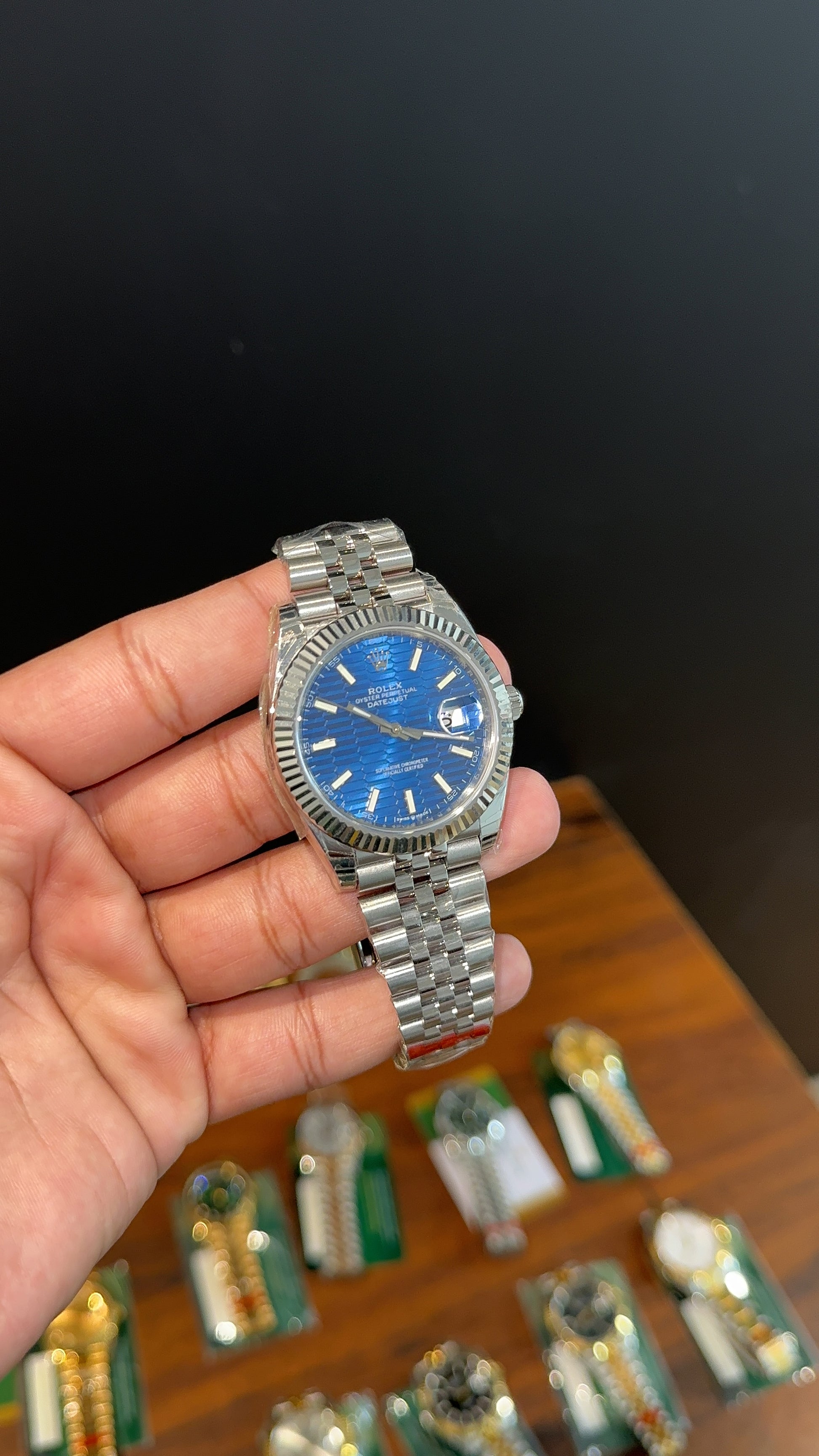Premium Datejust | 40mm | Silver Chain | Blue Textured Dial