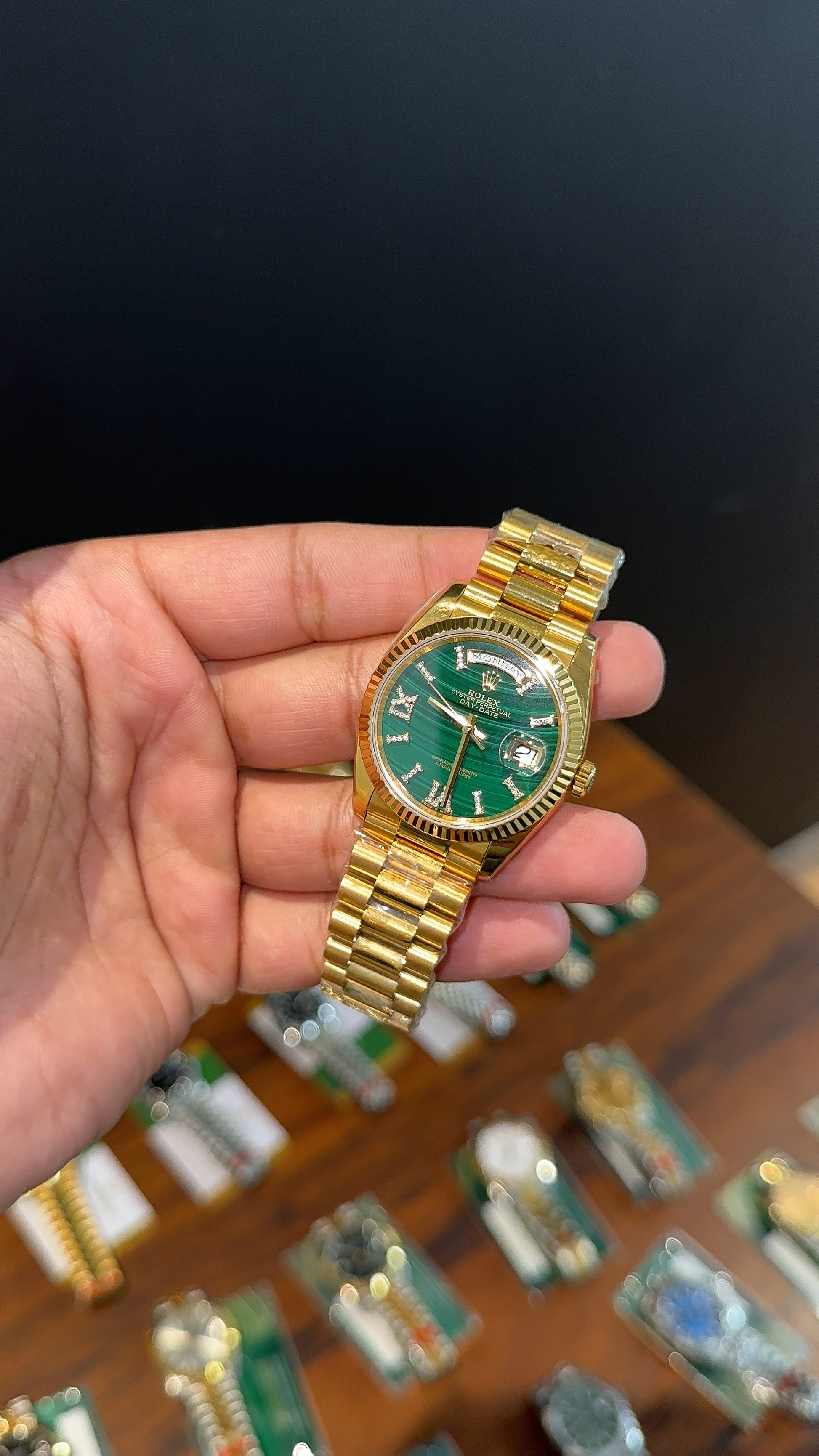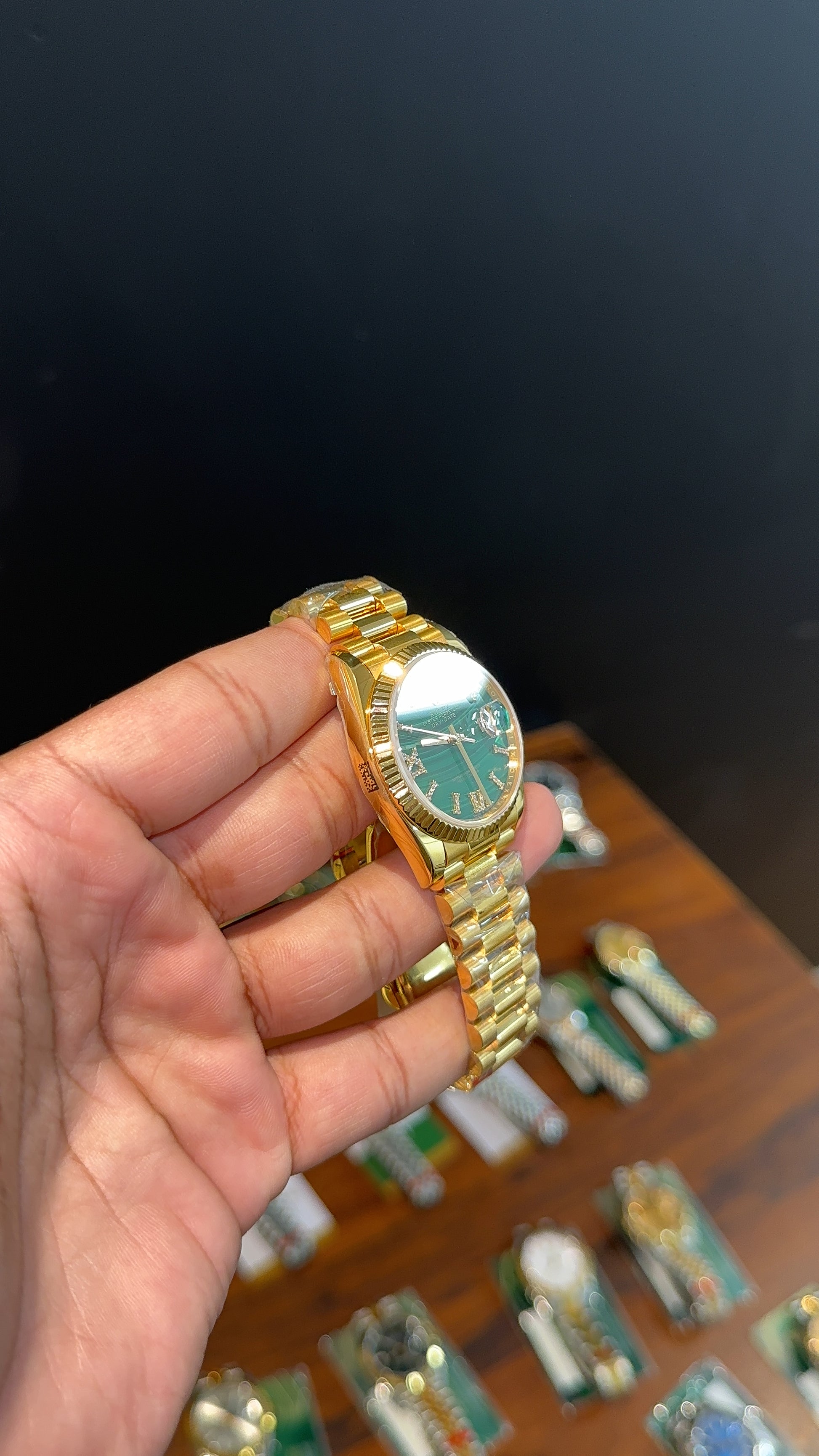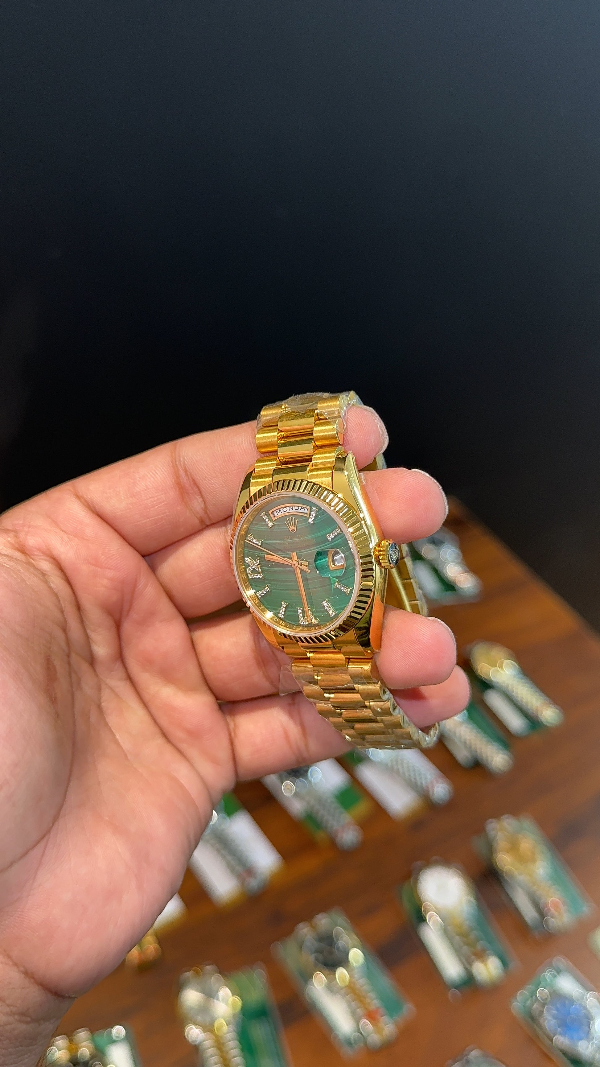 Premium Daydate | 36mm | Gold Chain | Platinum Green Diamond Roman Dial