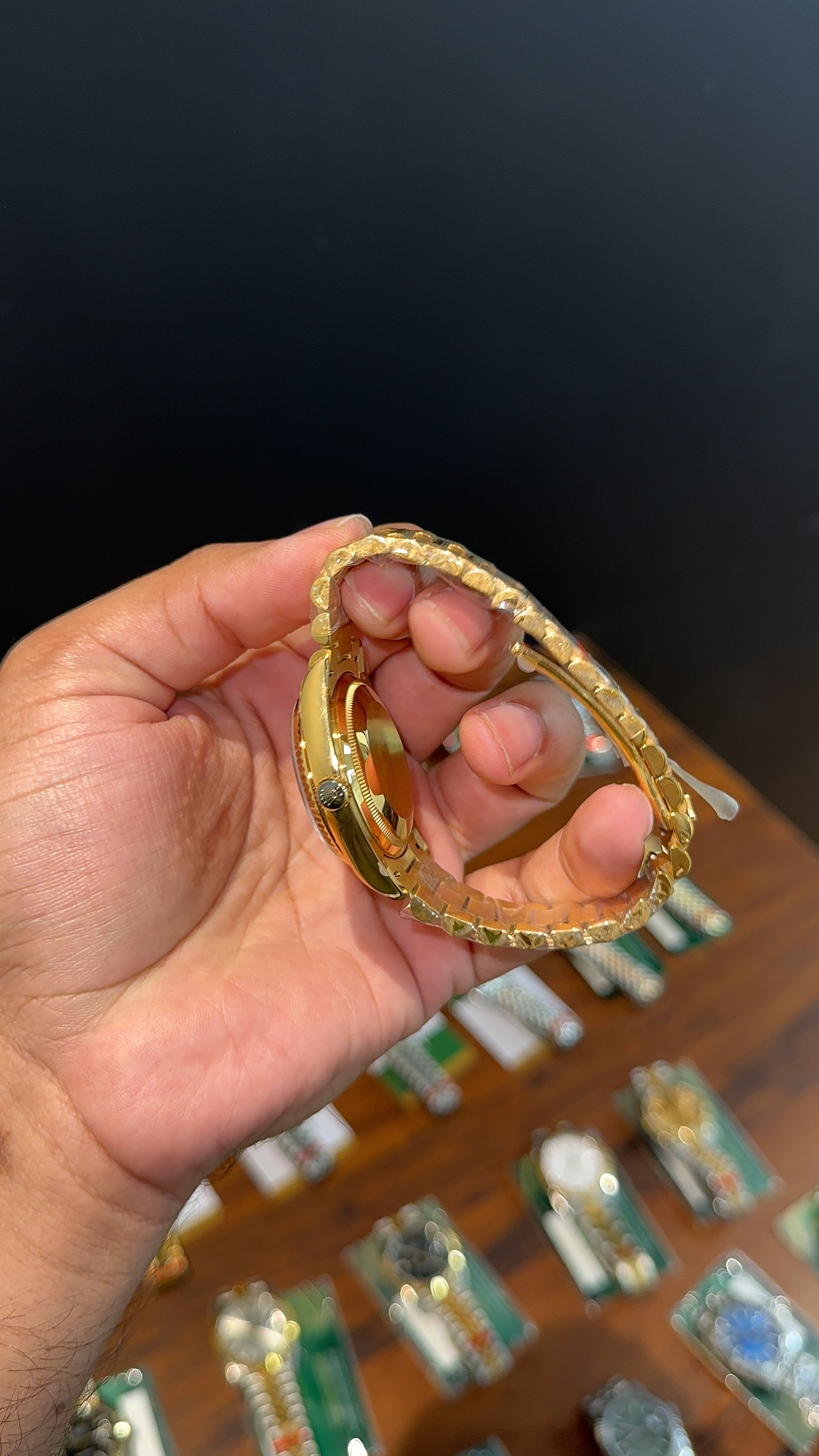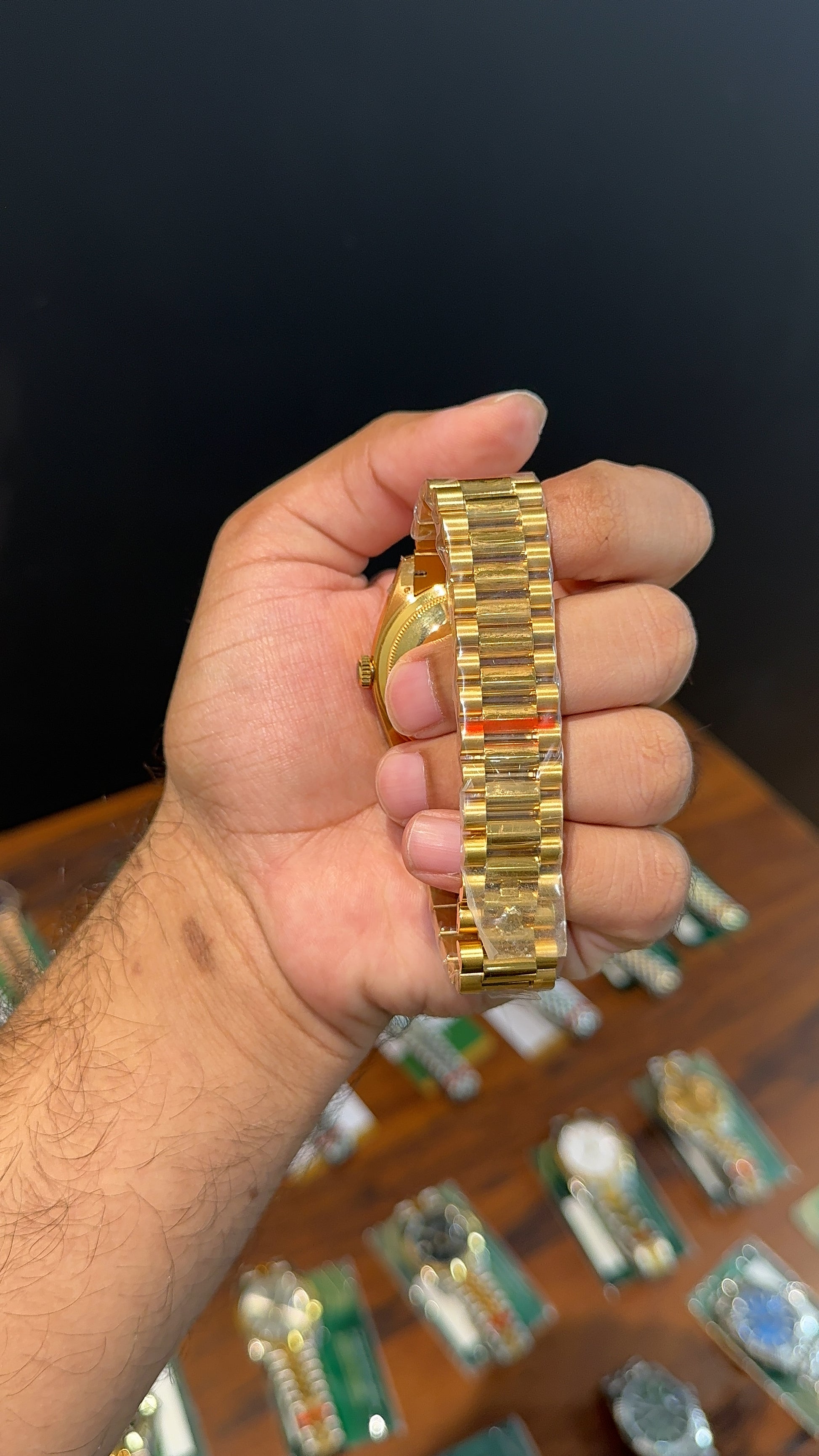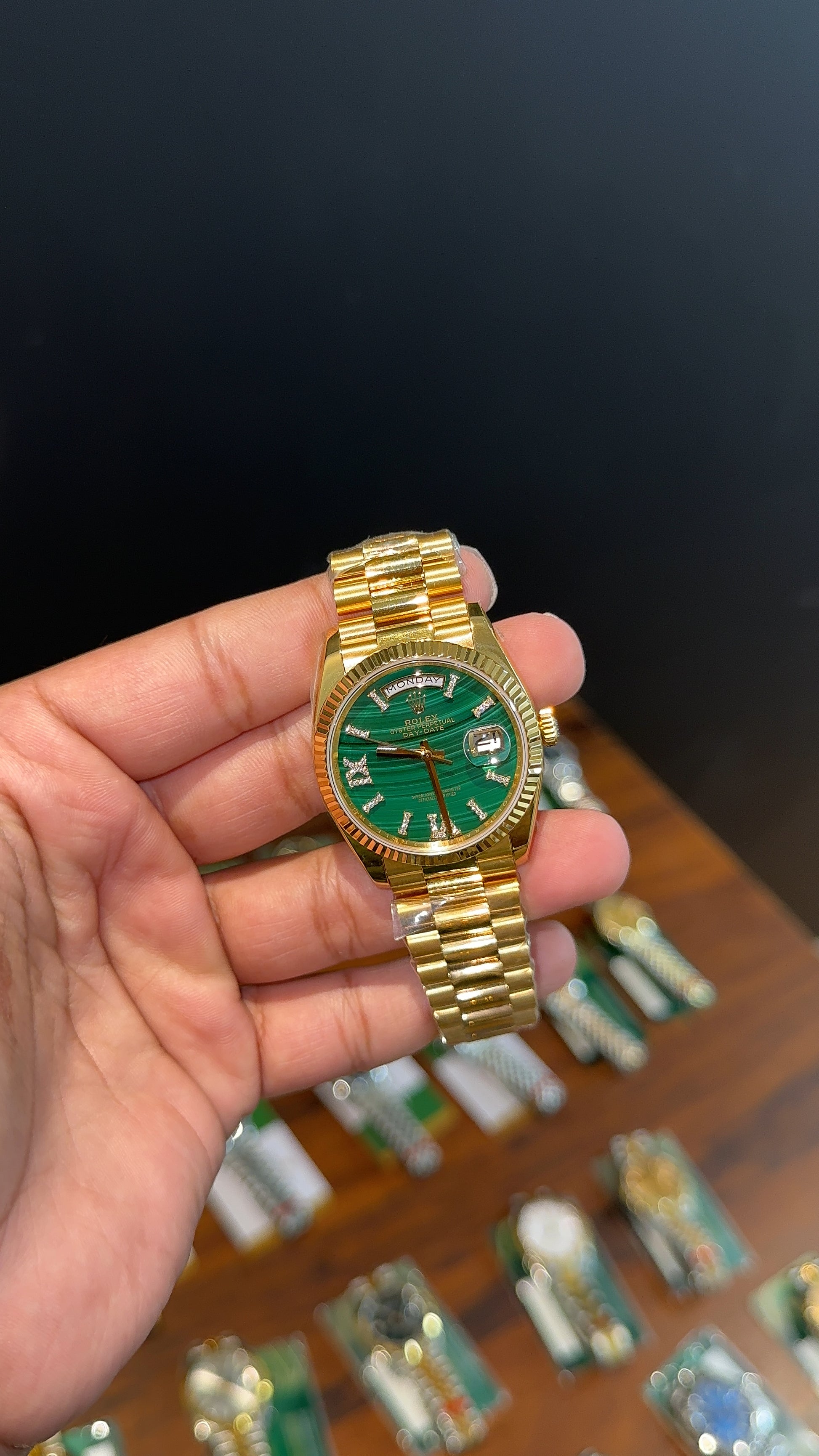 Premium Daydate | 36mm | Gold Chain | Platinum Green Diamond Roman Dial