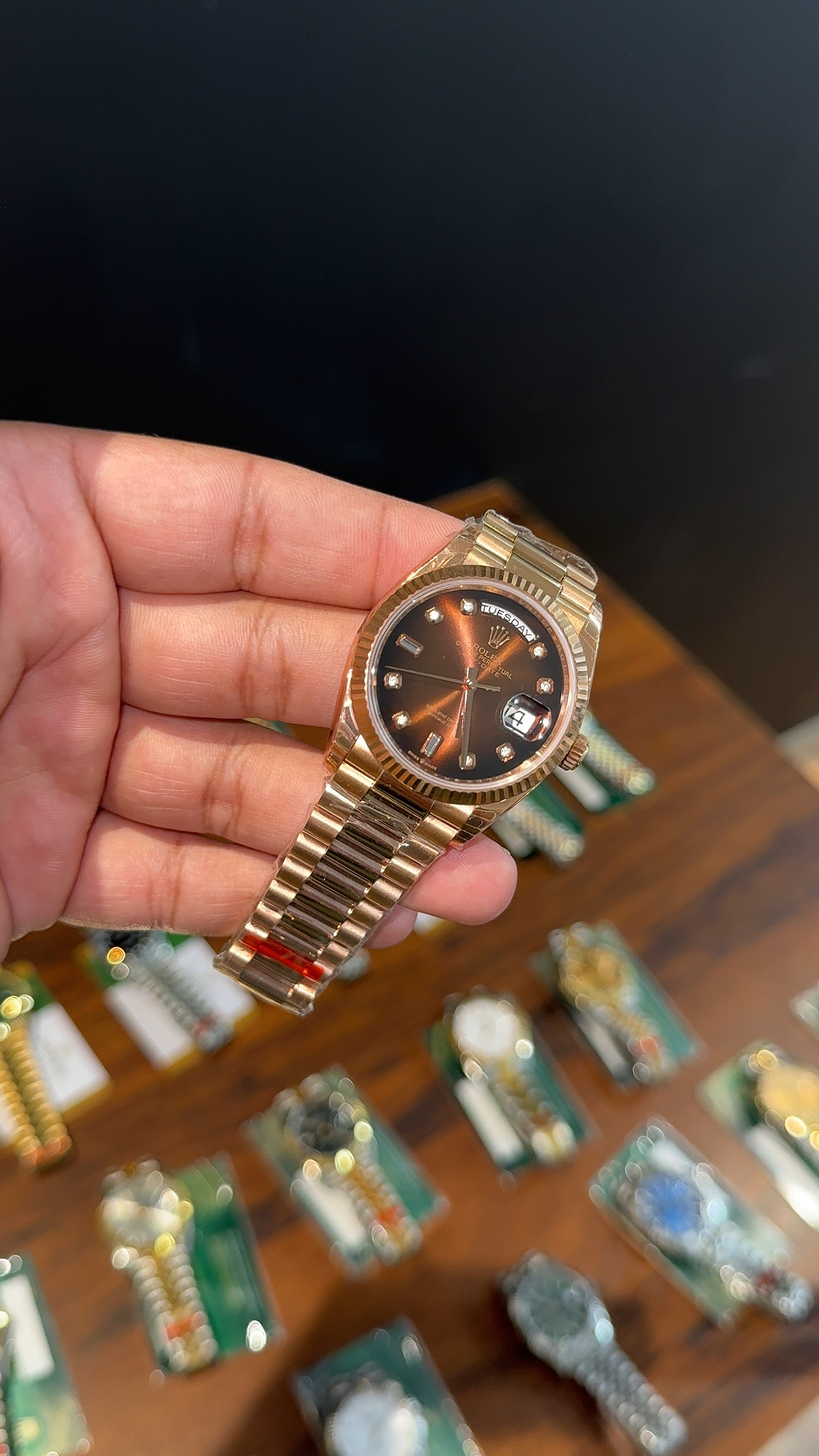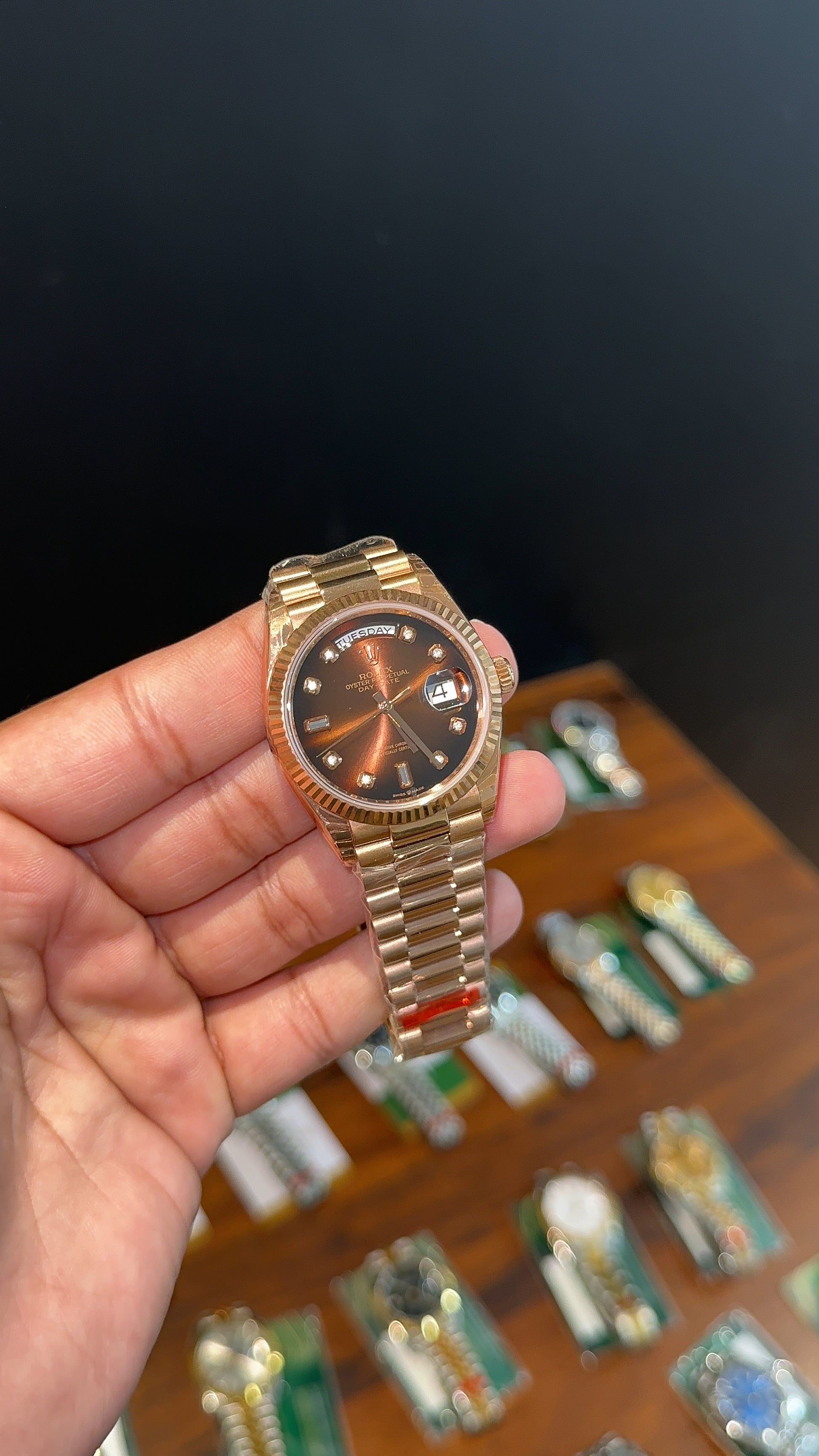 Premium Daydate | 36mm | Rose Chain | Gradient Choco Diamond Dial